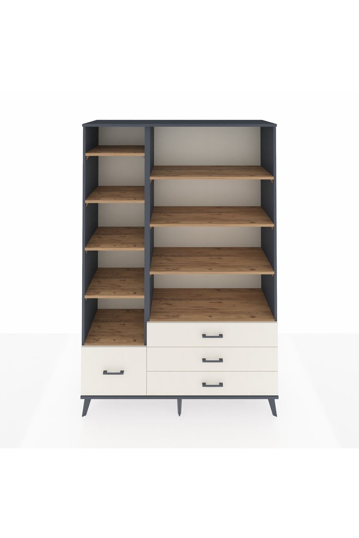Hyperion Dolap 9 Raflı 4 Çekmeceli 132x44x195 Antrasit-Çam/Aytaşı