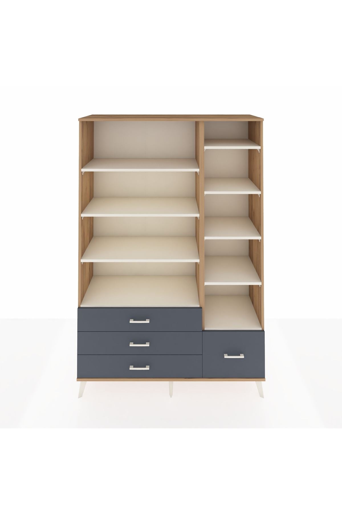 Hyperion Dolap 9 Raflı 4 Çekmeceli 132x44x195 Çam-Aytaşı/Antrasit