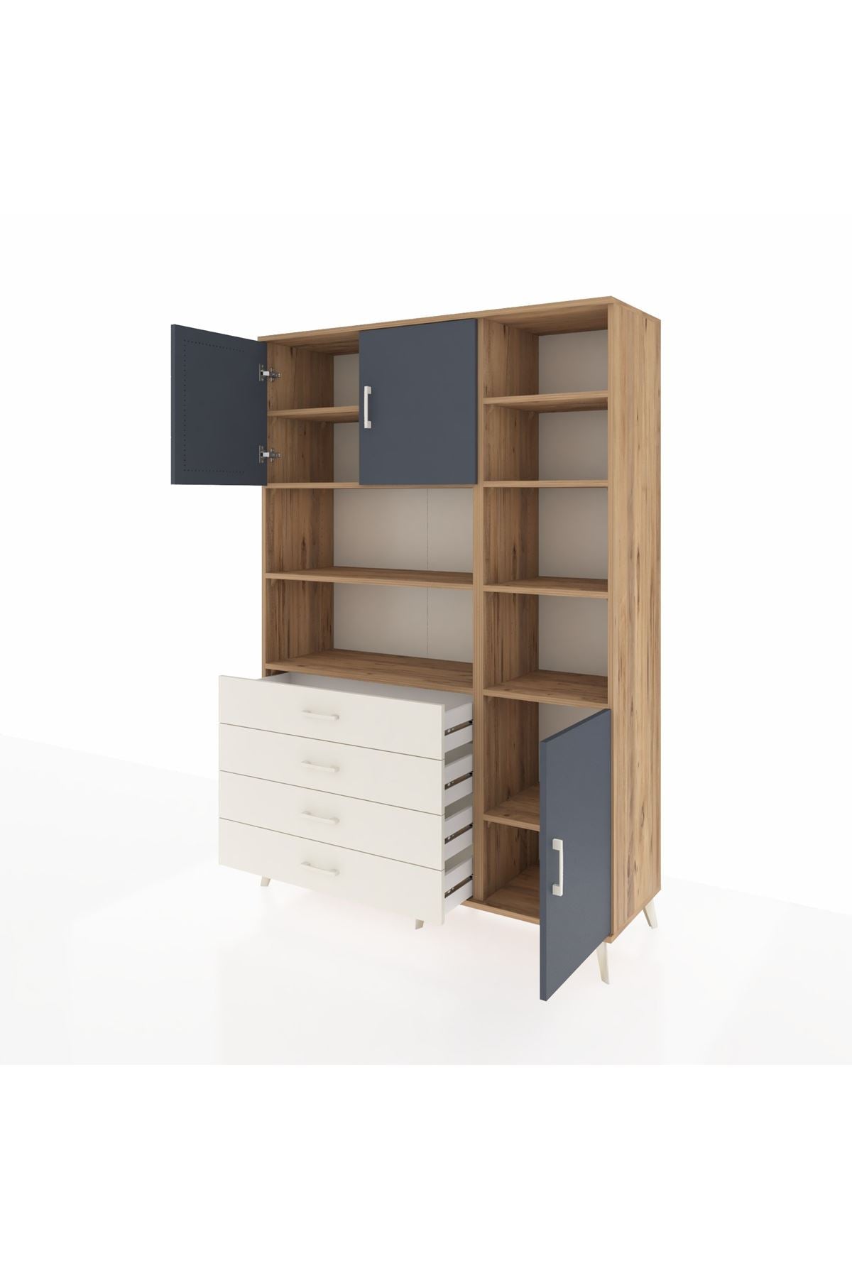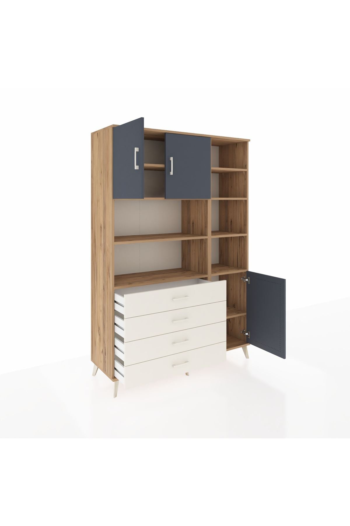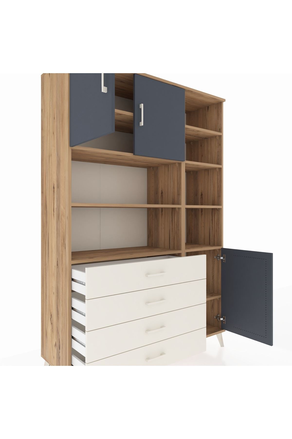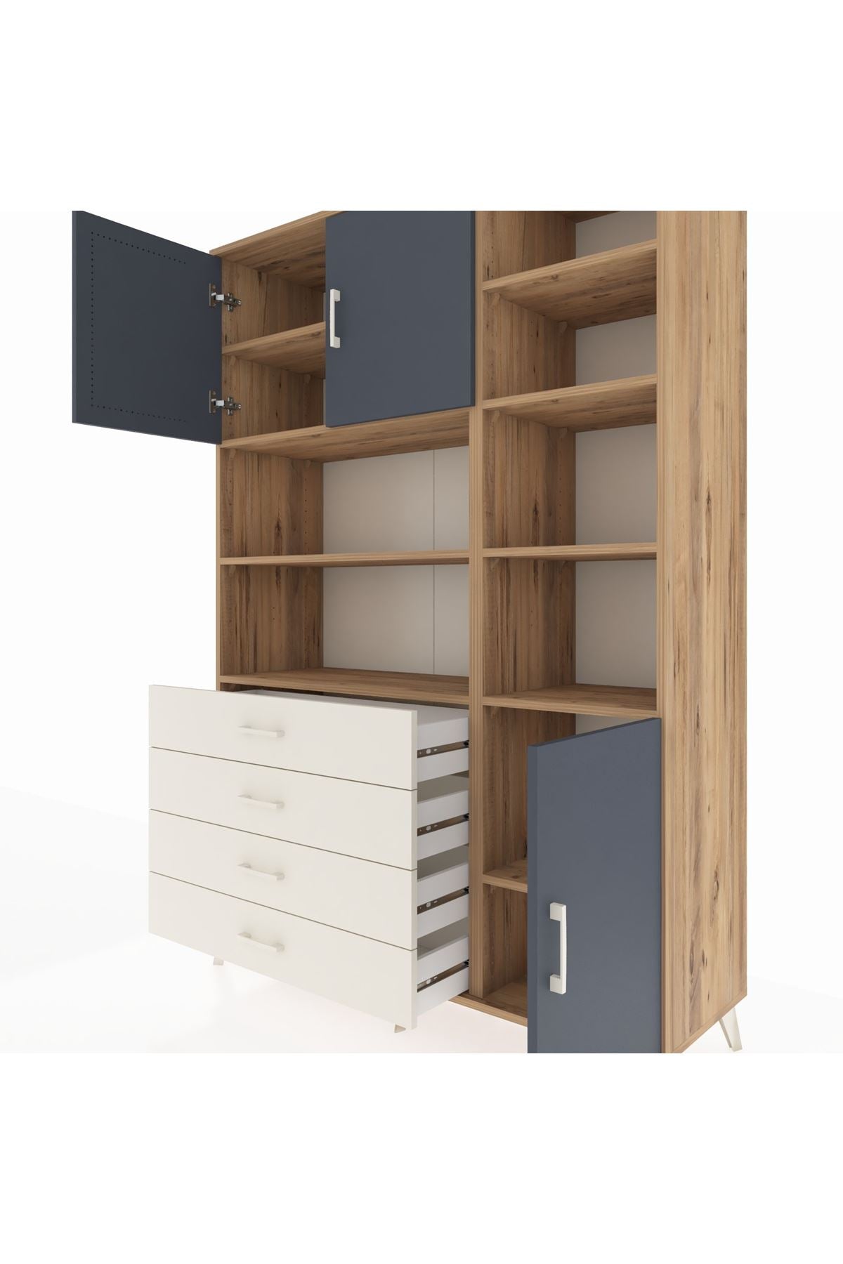 Hyperion Dolap 9 Raflı 4 Çekmeceli 3 Kapaklı 132x44x195 Çam-Antrasit/Aytaşı