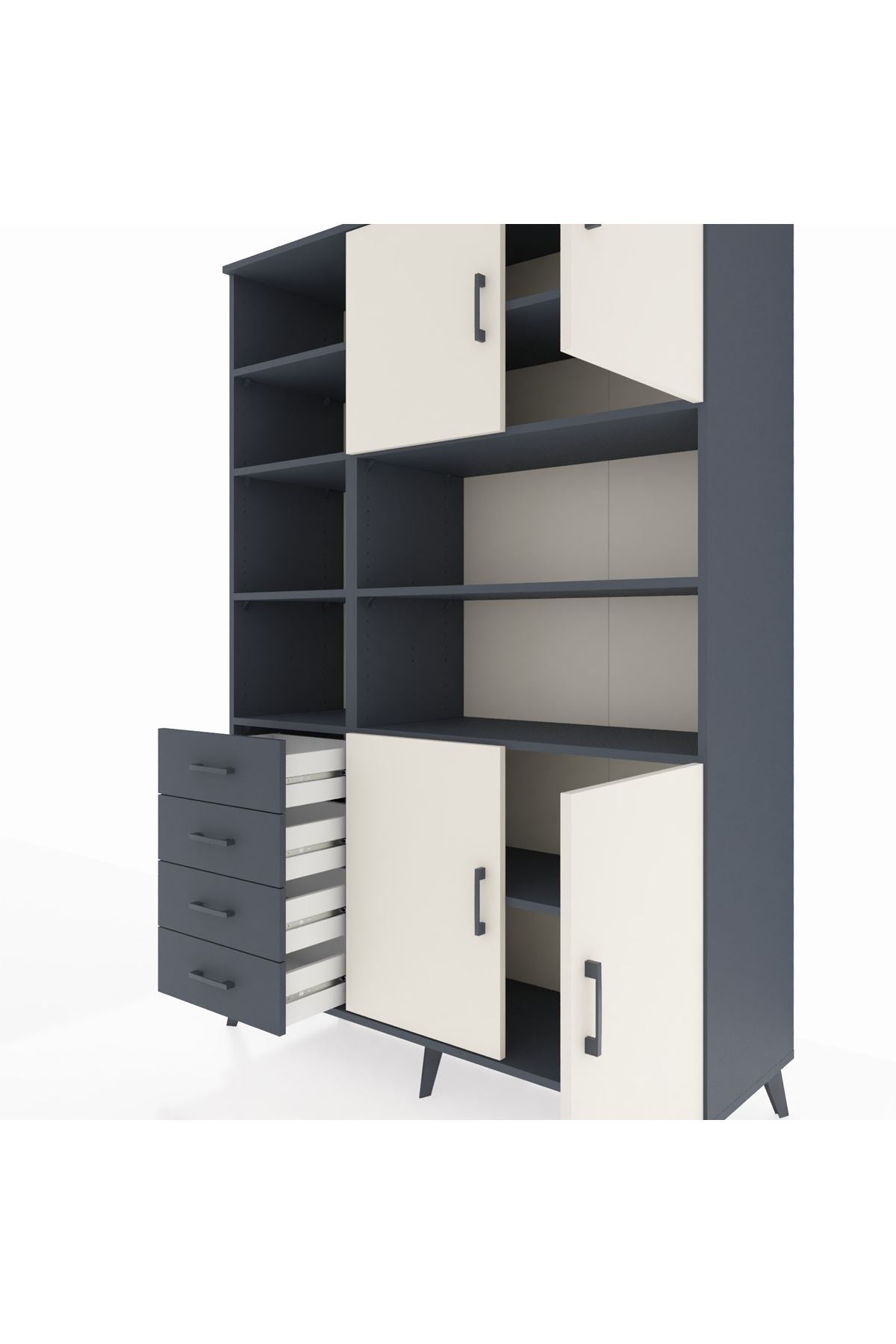 Hyperion Dolap 9 Raflı 4 Çekmeceli 4 Kapaklı 132x44x195 Antrasit-Aytaşı/Antrasit