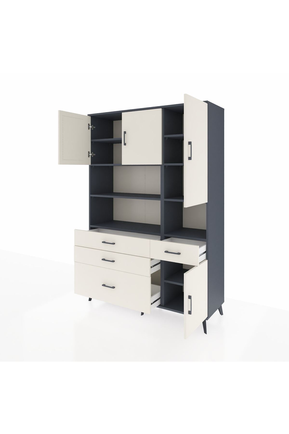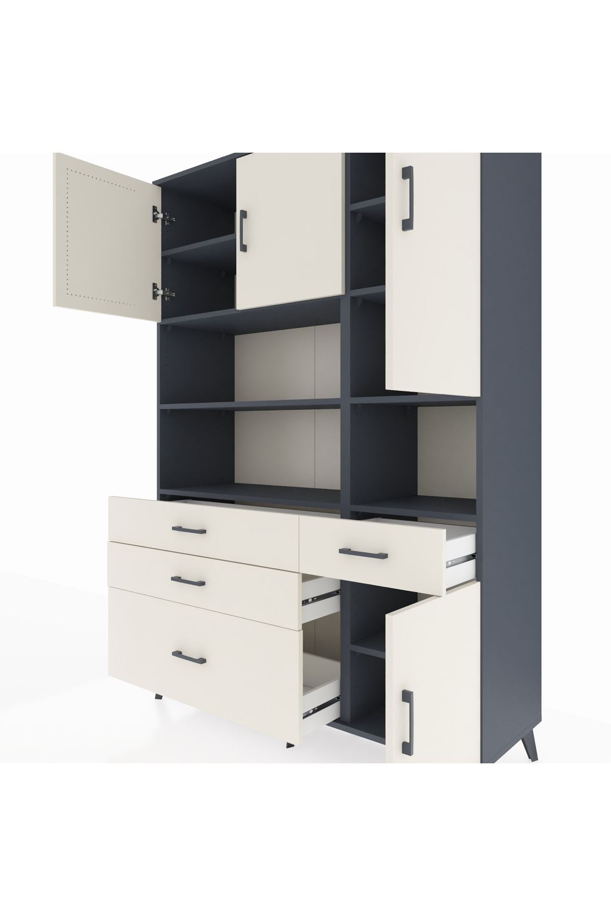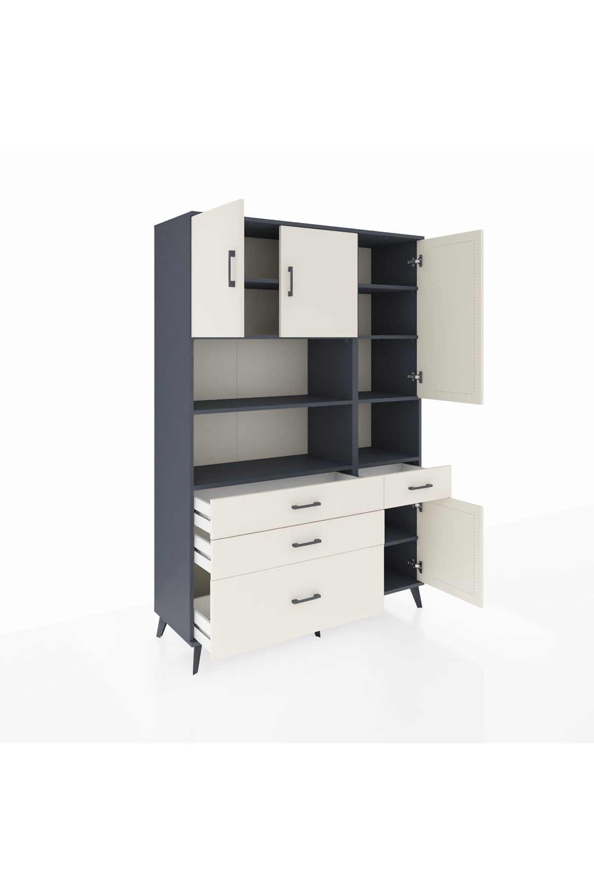Hyperion Dolap 9 Raflı 4 Çekmeceli 4 Kapaklı 132x44x195 Antrasit-Aytaşı/Aytaşı