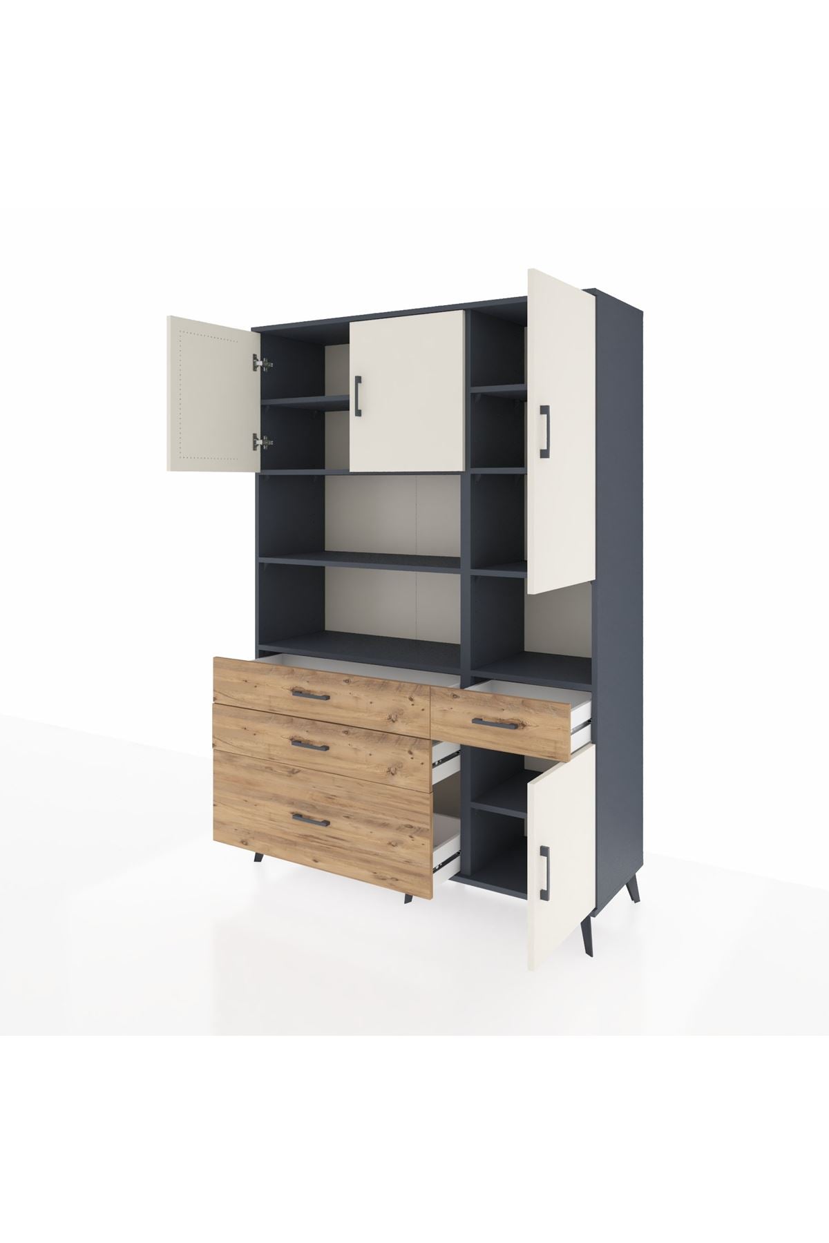 Hyperion Dolap 9 Raflı 4 Çekmeceli 4 Kapaklı 132x44x195 Antrasit-Aytaşı/Çam