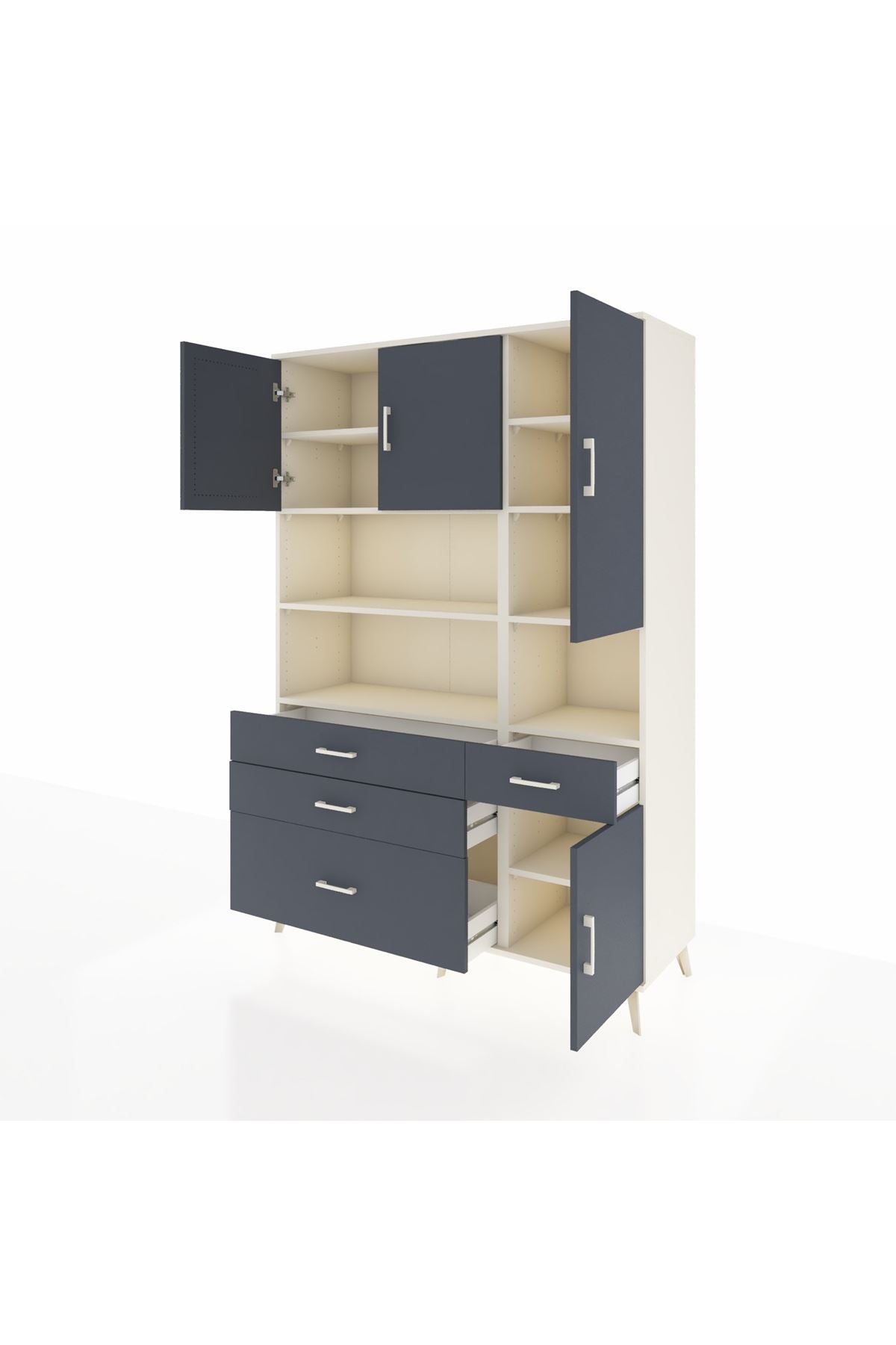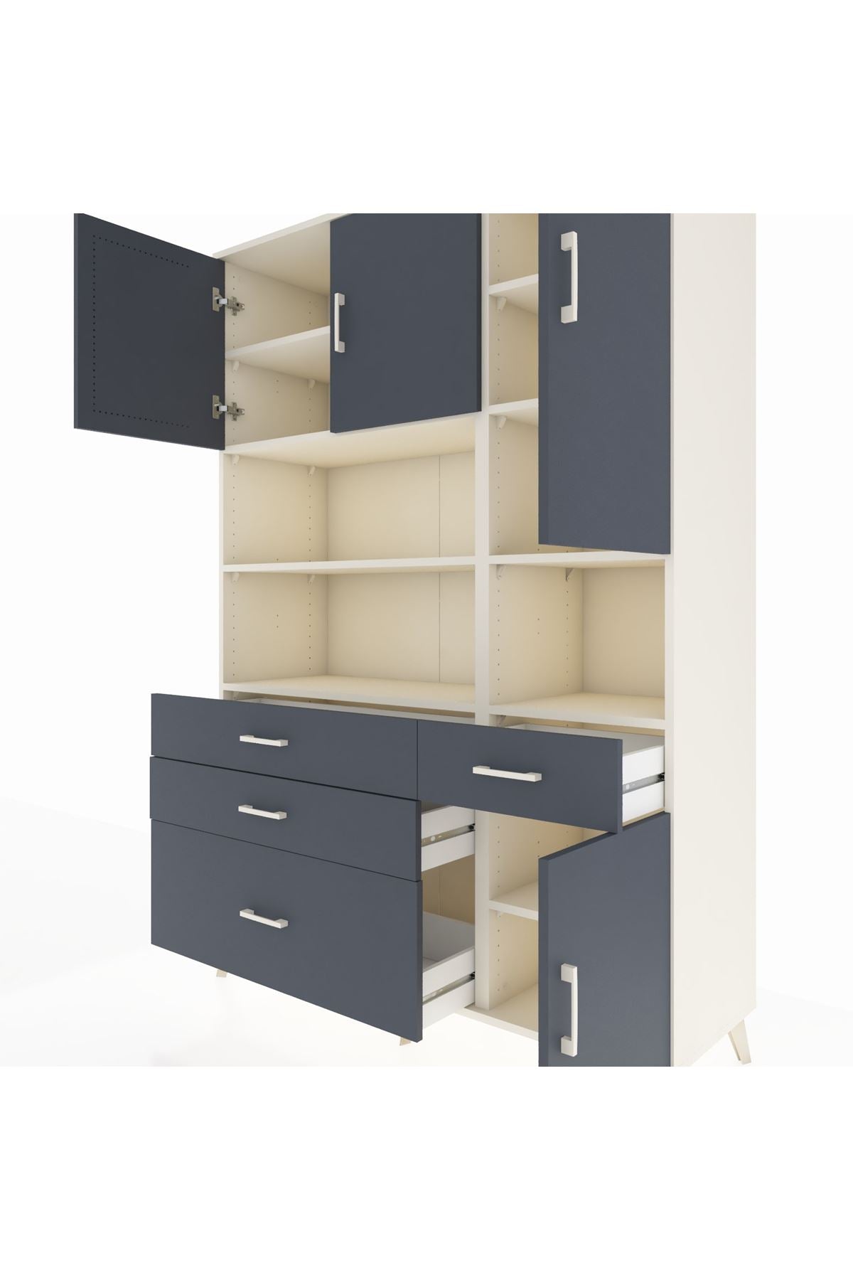 Hyperion Dolap 9 Raflı 4 Çekmeceli 4 Kapaklı 132x44x195 Aytaşı-Antrasit/Antrasit
