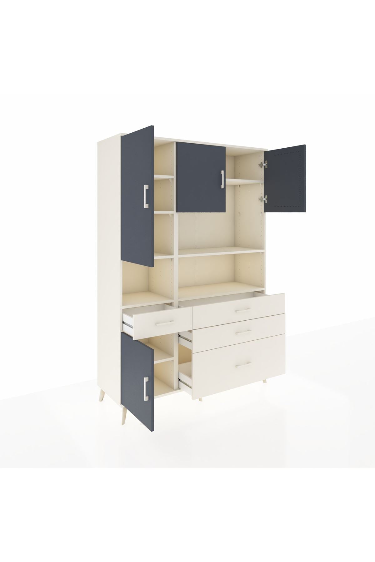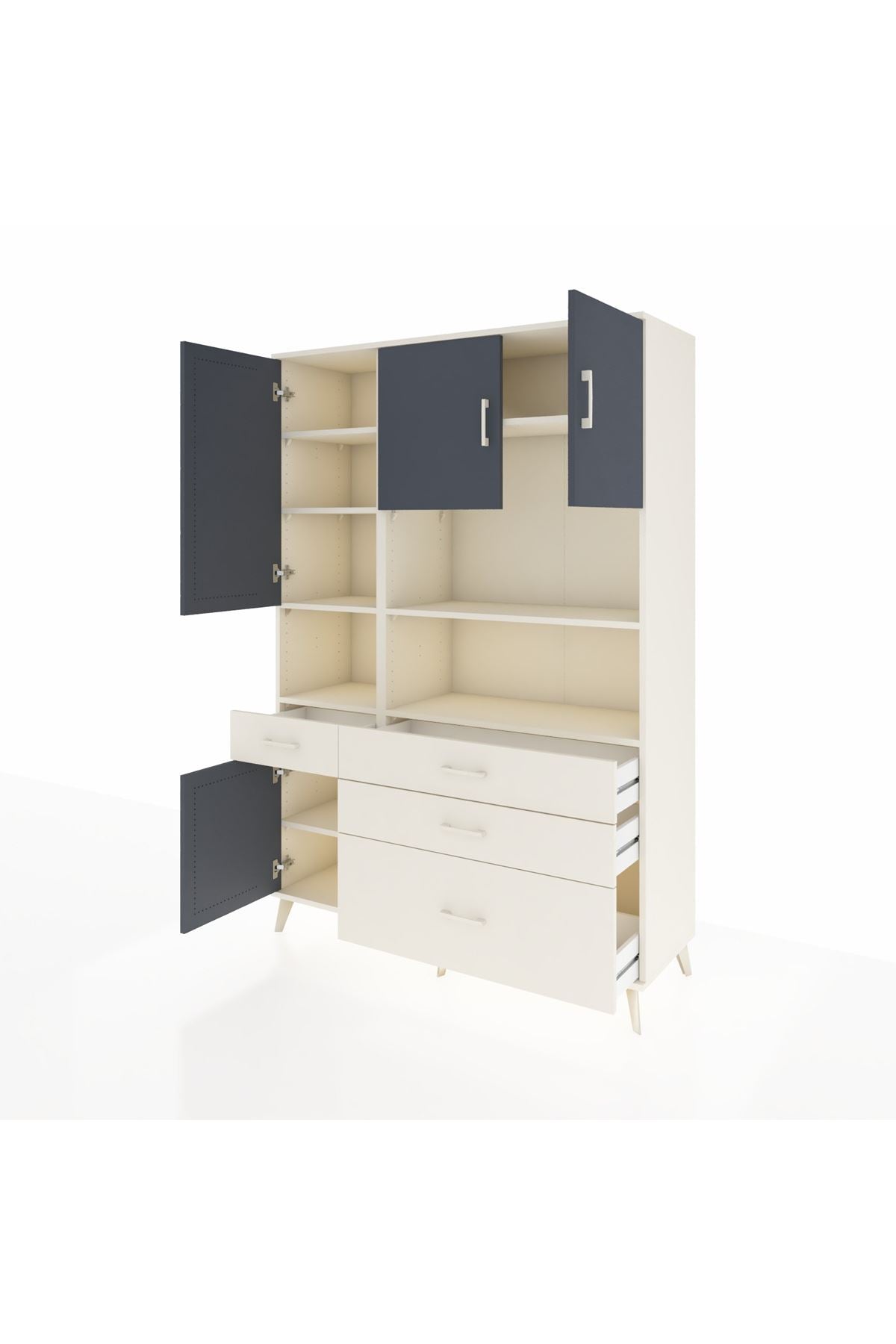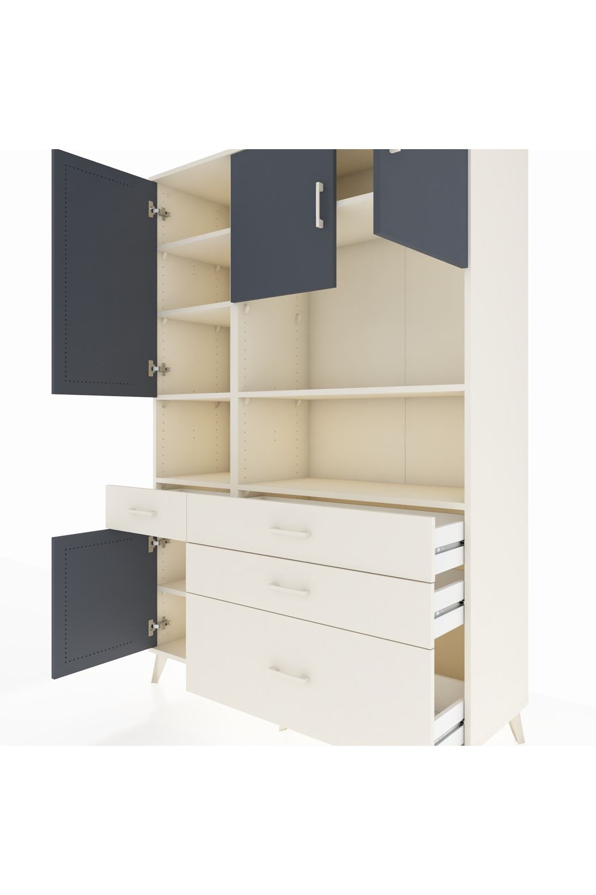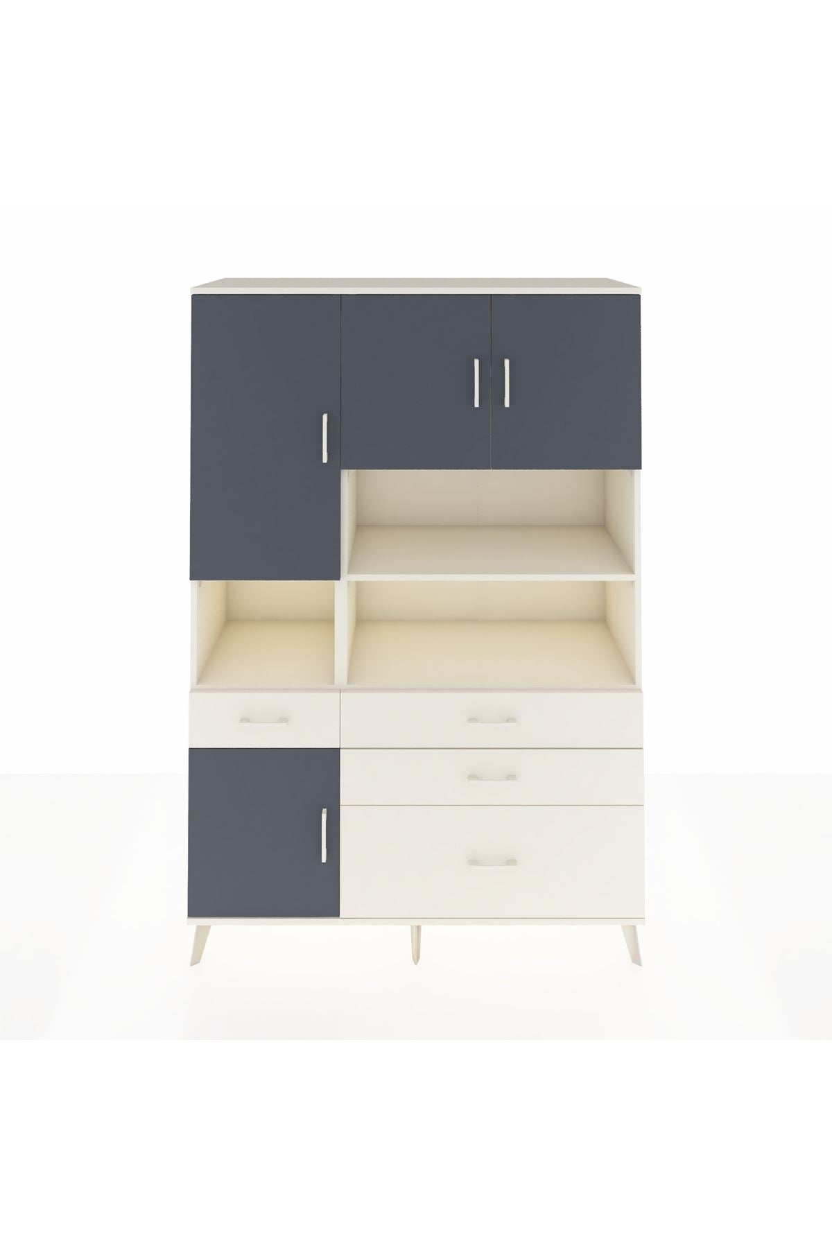 Hyperion Dolap 9 Raflı 4 Çekmeceli 4 Kapaklı 132x44x195 Aytaşı-Antrasit/Aytaşı