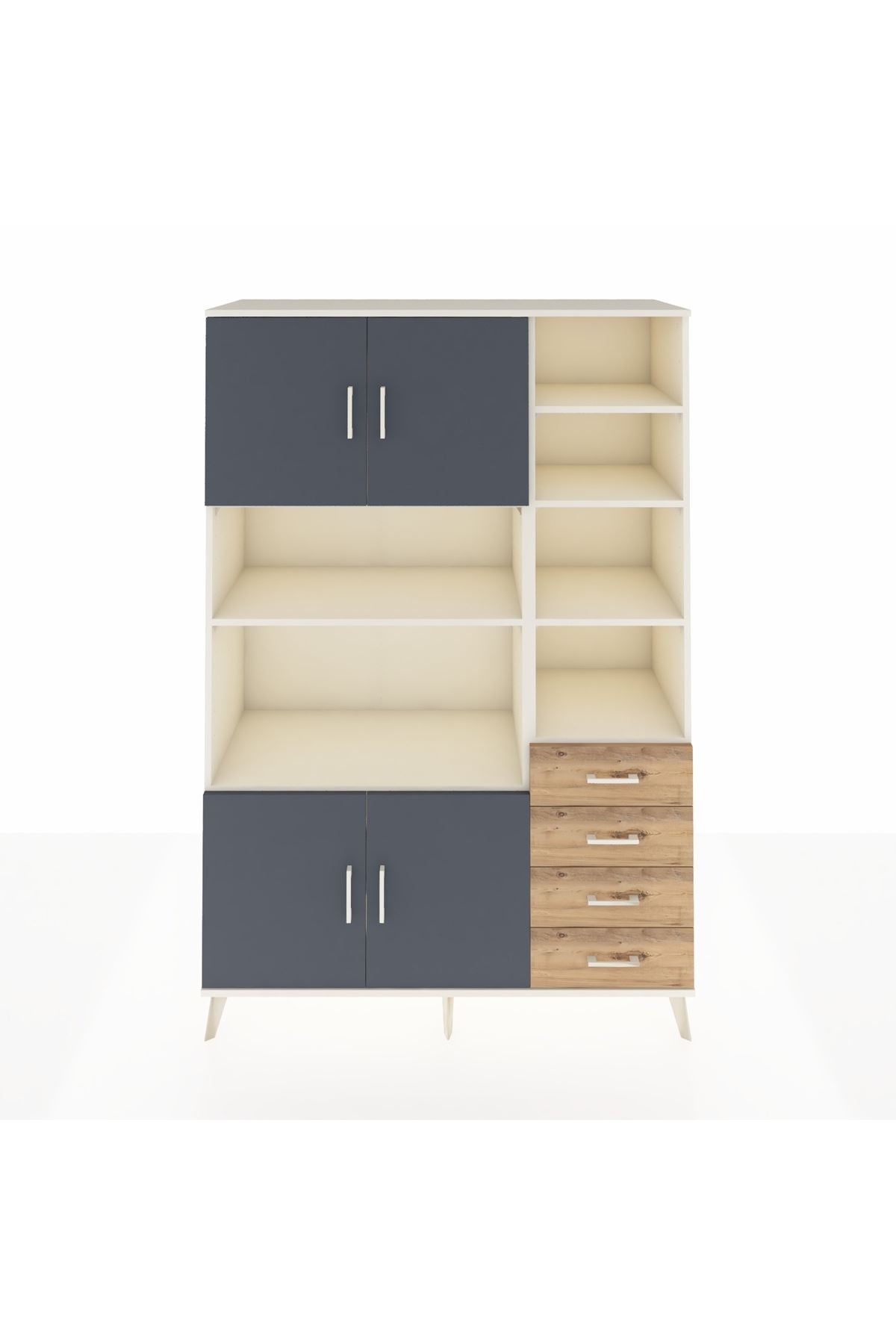 Hyperion Dolap 9 Raflı 4 Çekmeceli 4 Kapaklı 132x44x195 Aytaşı-Antrasit/Çam