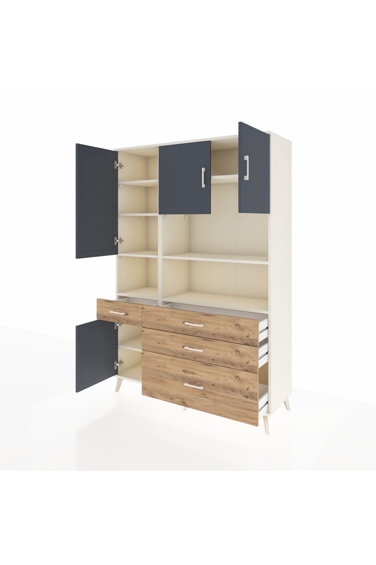 Hyperion Dolap 9 Raflı 4 Çekmeceli 4 Kapaklı 132x44x195 Aytaşı-Antrasit/Çam