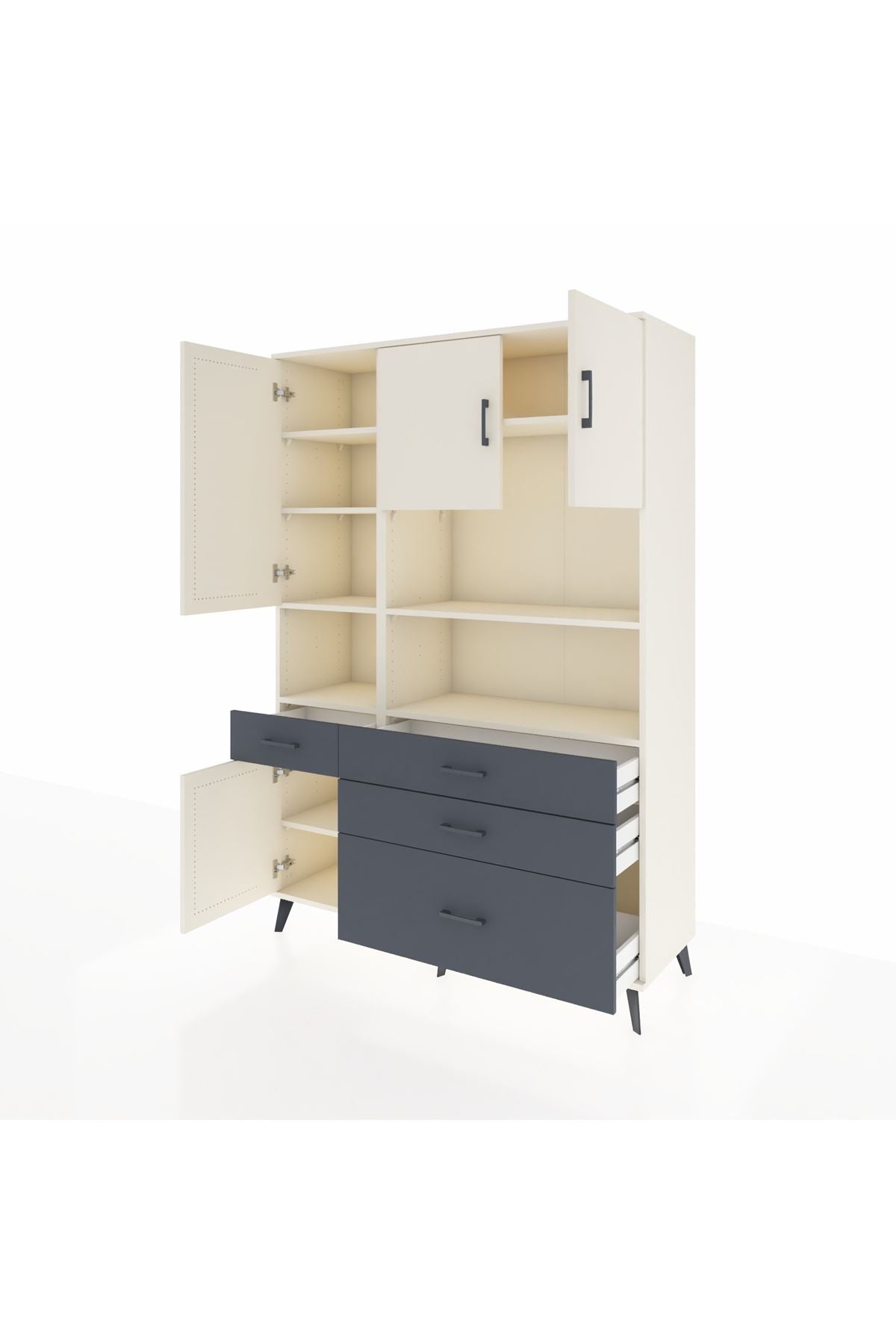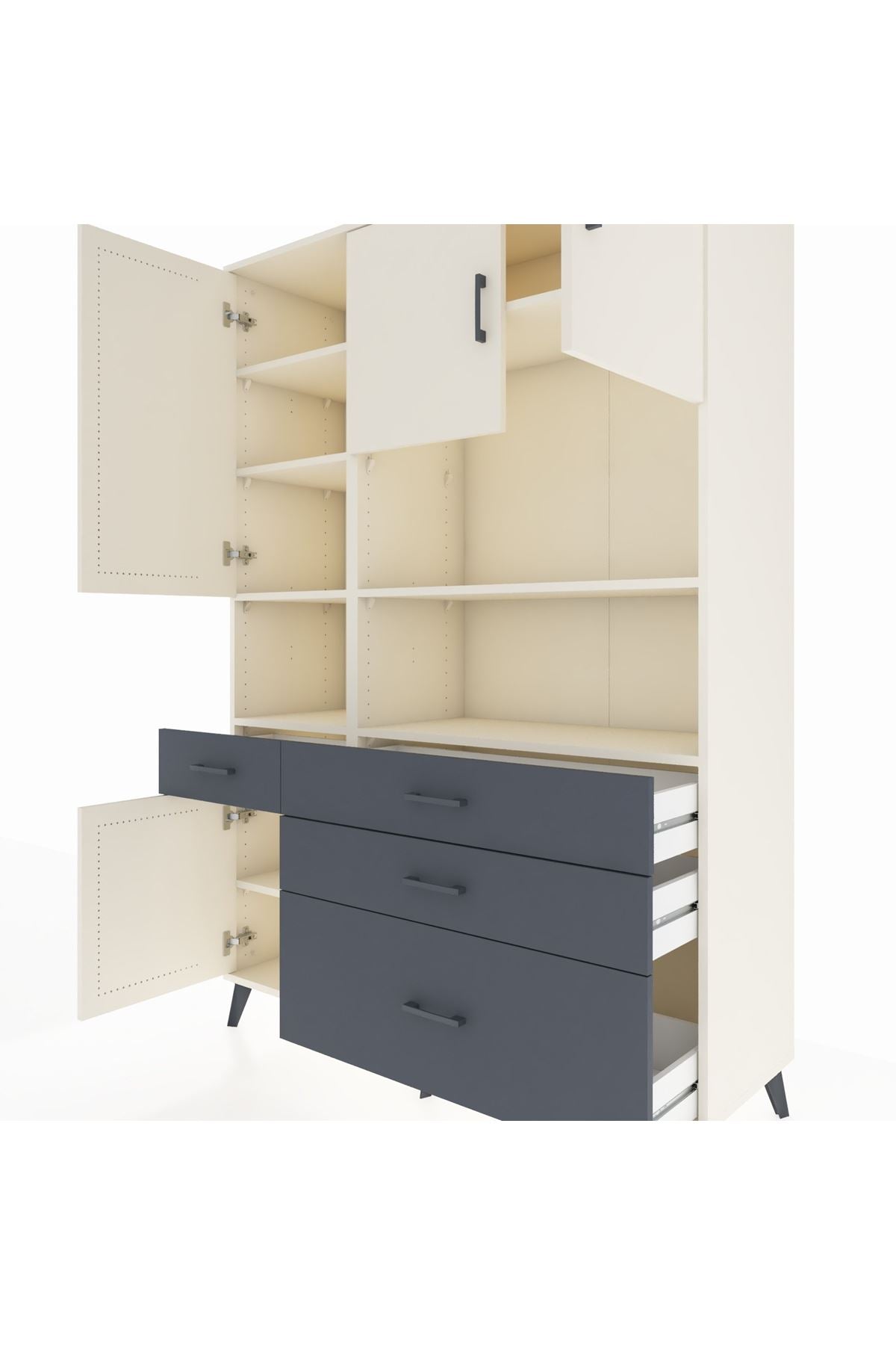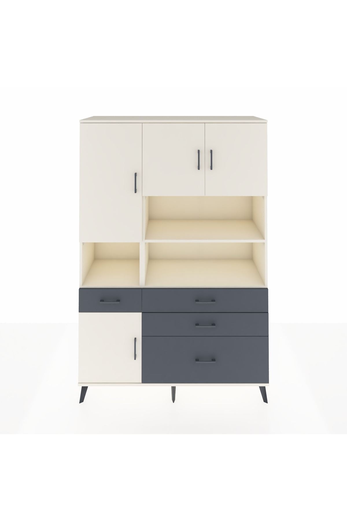 Hyperion Dolap 9 Raflı 4 Çekmeceli 4 Kapaklı 132x44x195 Aytaşı-Aytaşı/Antrasit