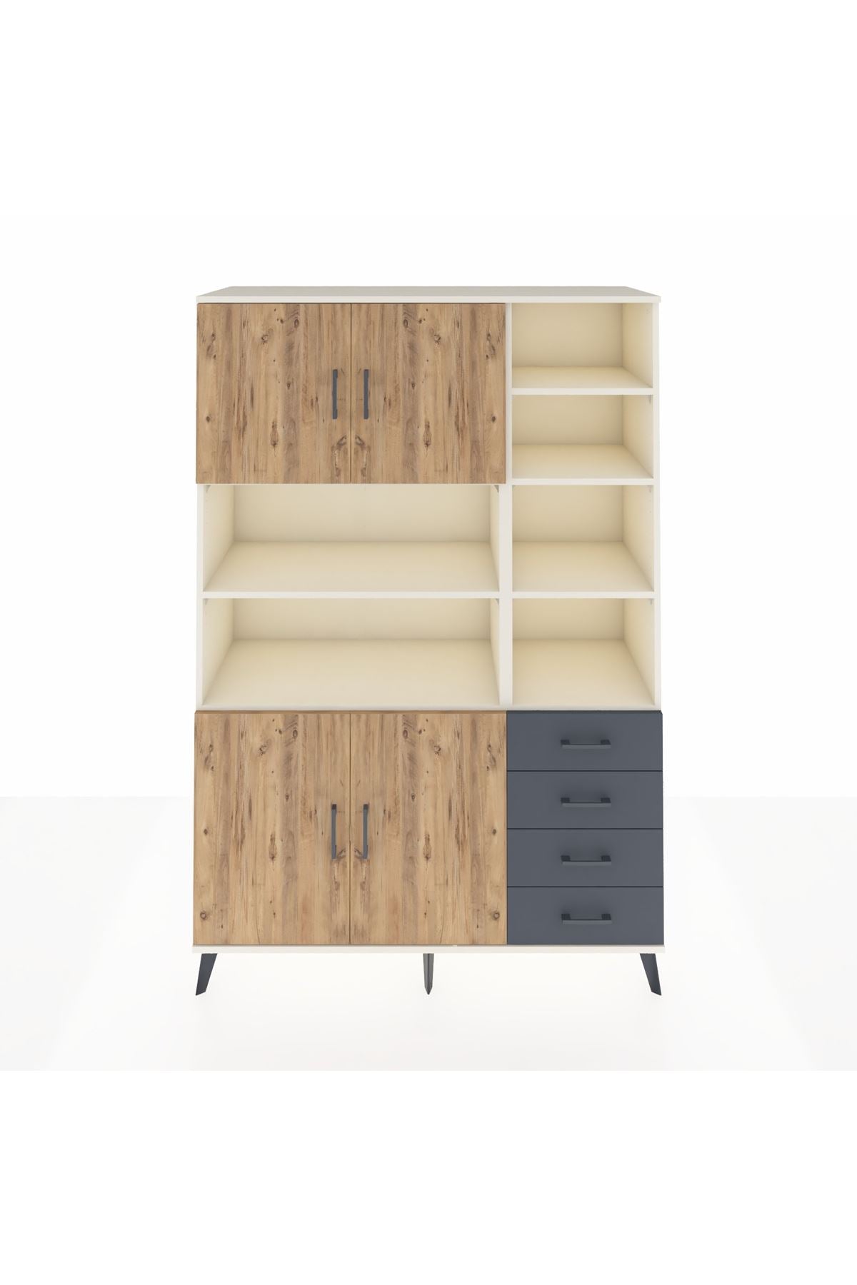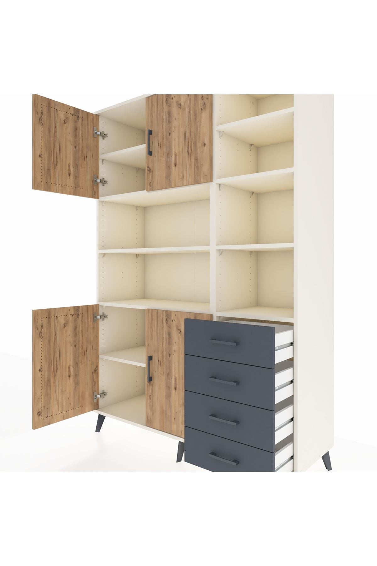 Hyperion Dolap 9 Raflı 4 Çekmeceli 4 Kapaklı 132x44x195 Aytaşı-Çam/Antrasit