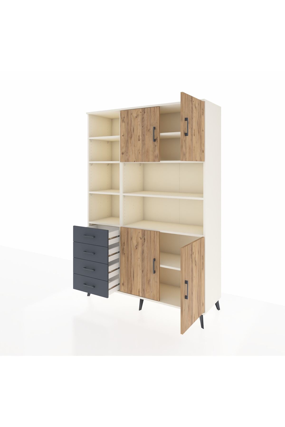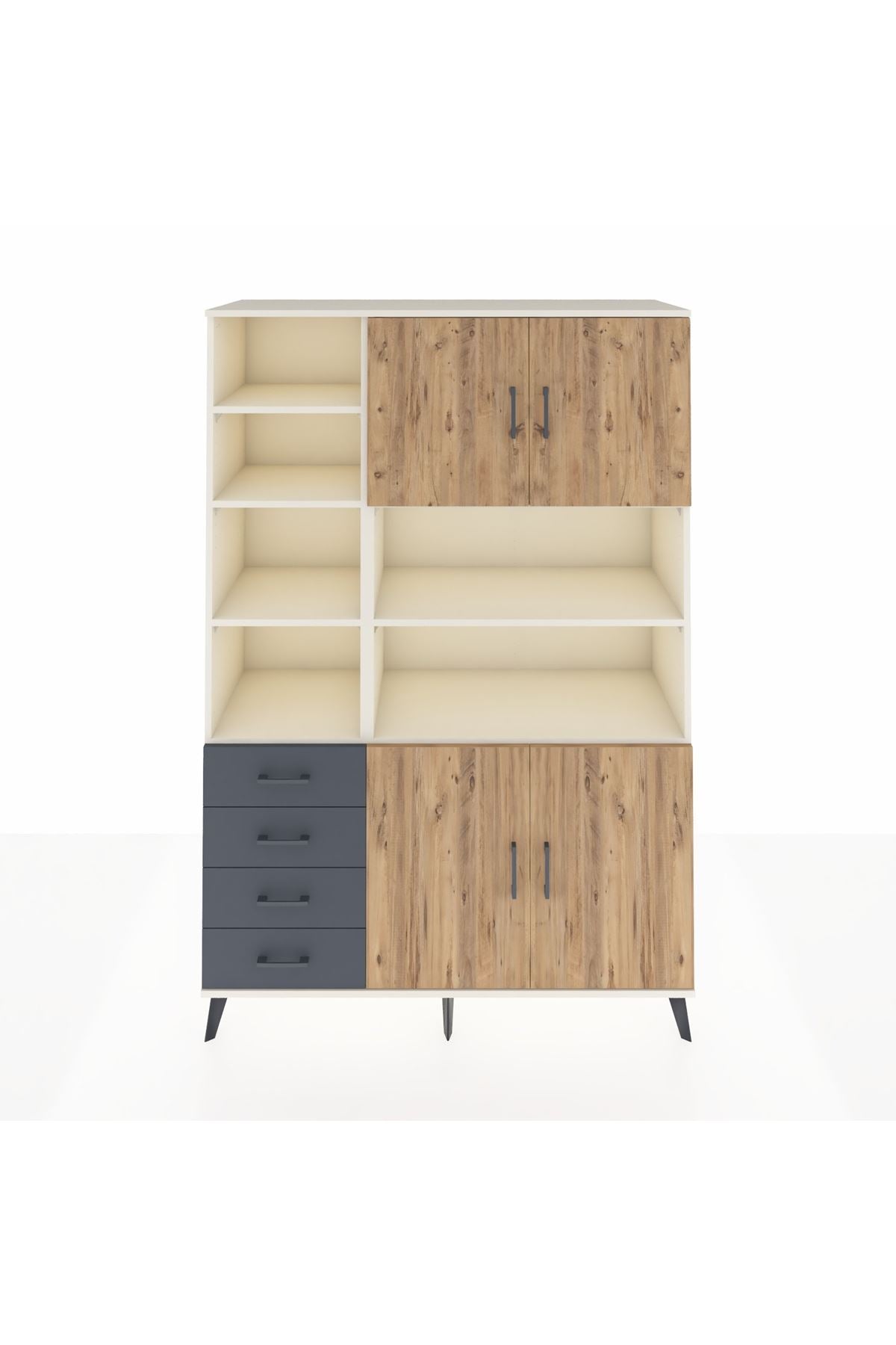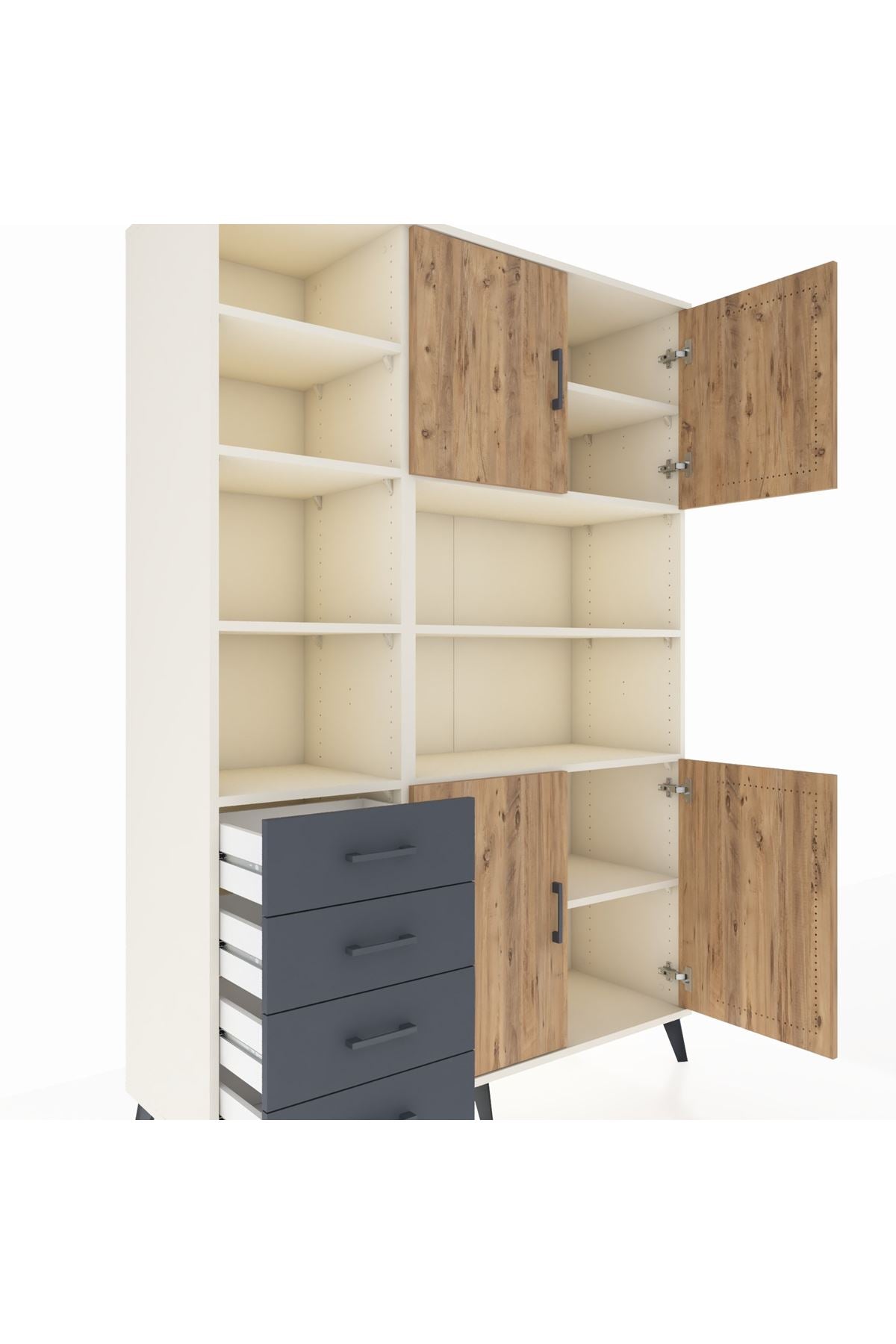 Hyperion Dolap 9 Raflı 4 Çekmeceli 4 Kapaklı 132x44x195 Aytaşı-Çam/Antrasit