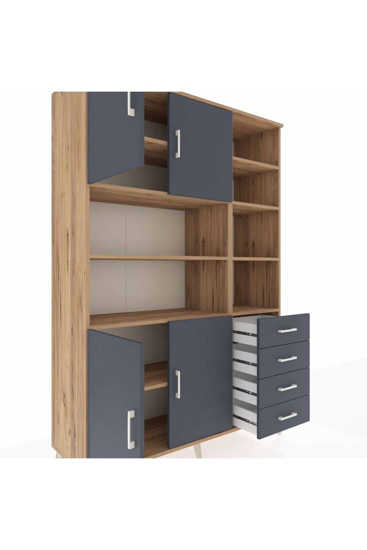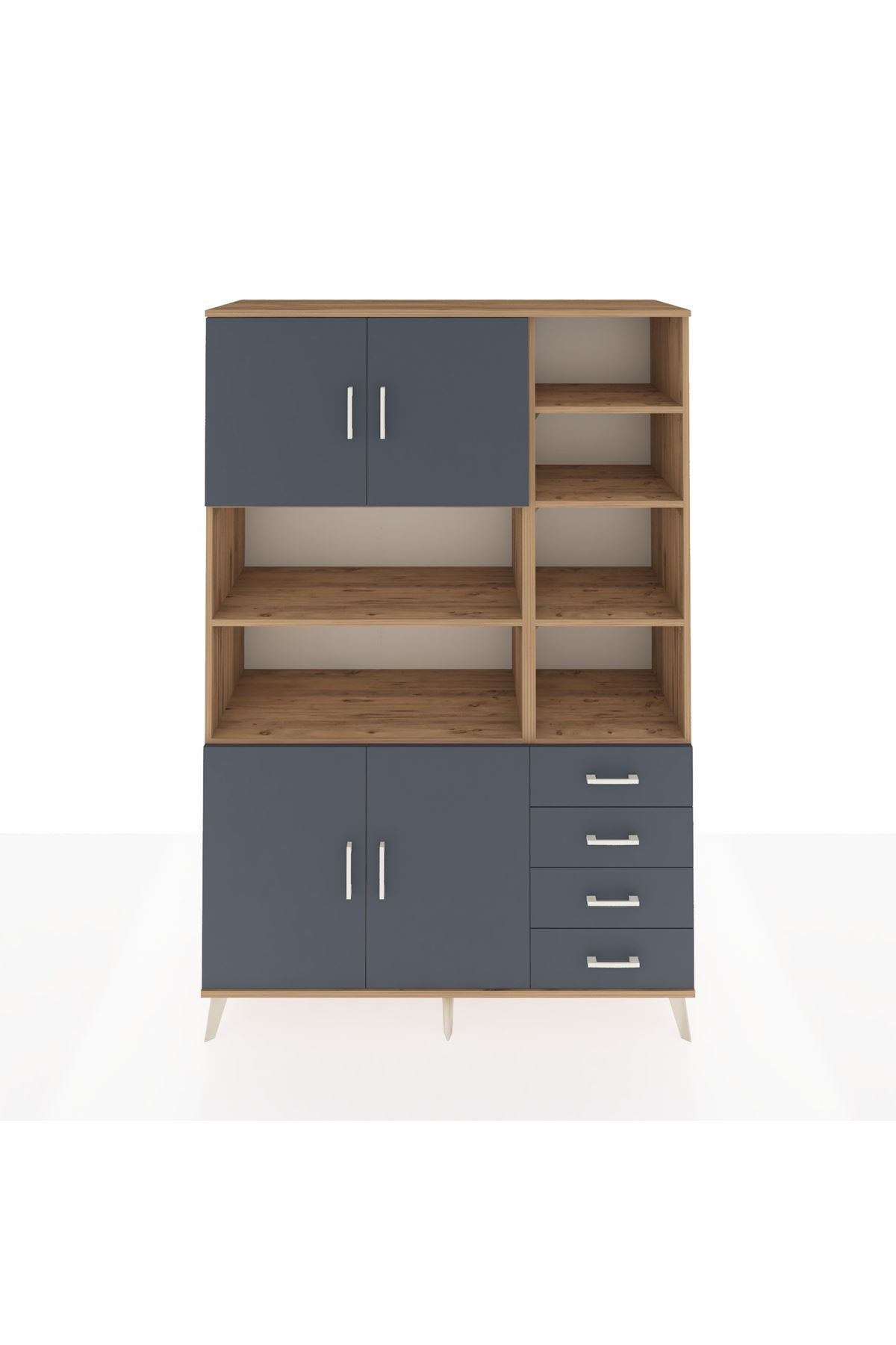 Hyperion Dolap 9 Raflı 4 Çekmeceli 4 Kapaklı 132x44x195 Çam-Antrasit/Antrasit