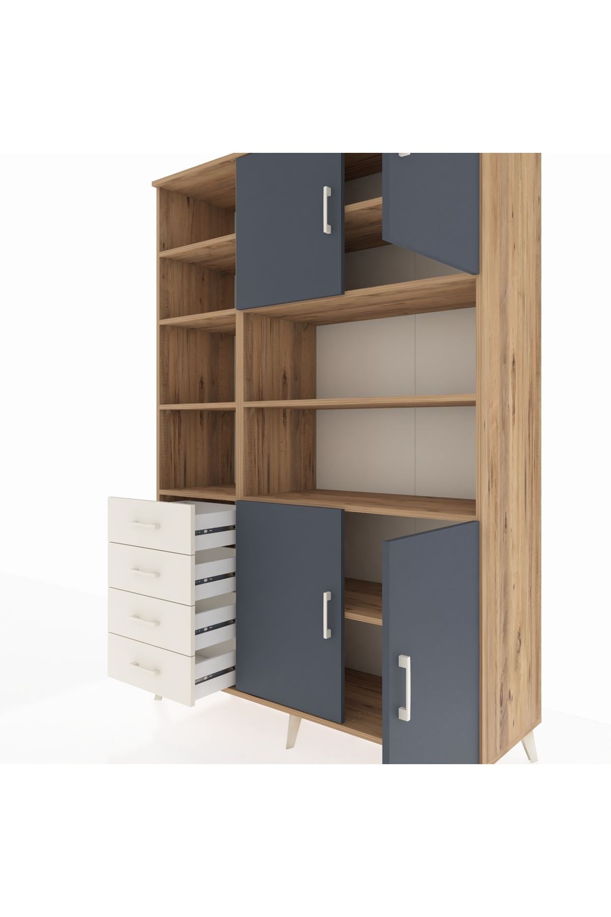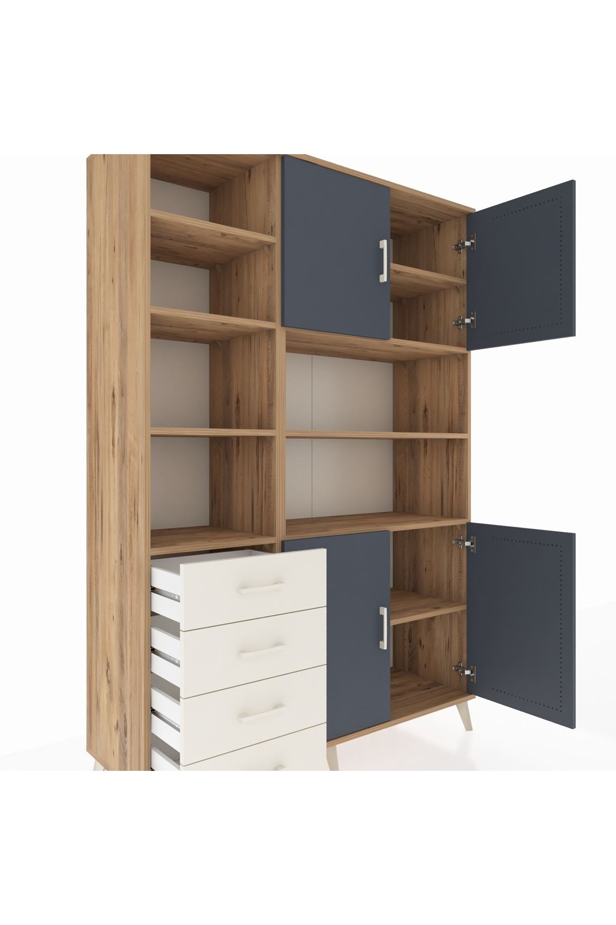 Hyperion Dolap 9 Raflı 4 Çekmeceli 4 Kapaklı 132x44x195 Çam-Antrasit/Aytaşı