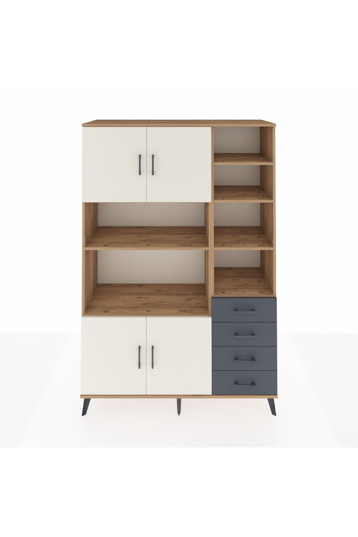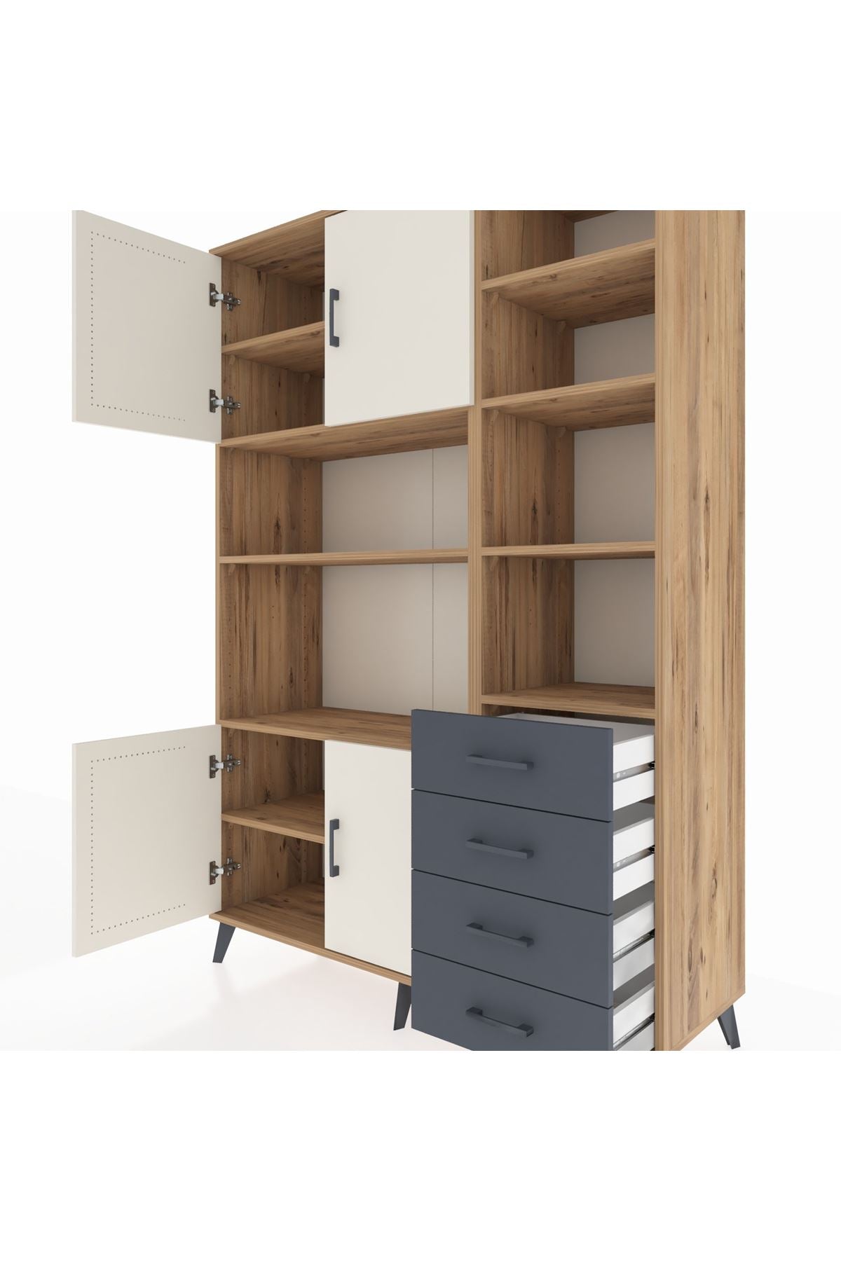 Hyperion Dolap 9 Raflı 4 Çekmeceli 4 Kapaklı 132x44x195 Çam-Aytaşı/Antrasit