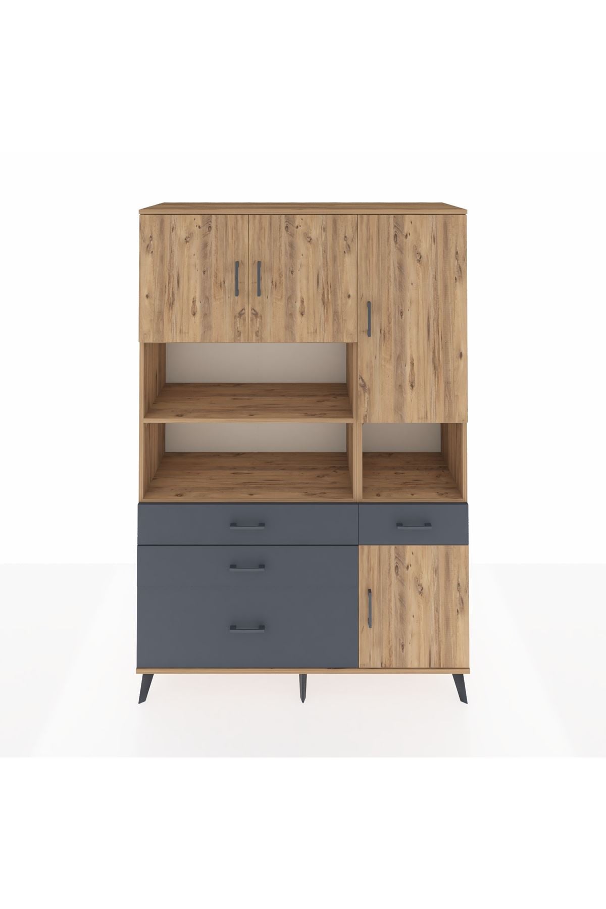 Hyperion Dolap 9 Raflı 4 Çekmeceli 4 Kapaklı 132x44x195 Çam-Çam/Antrasit