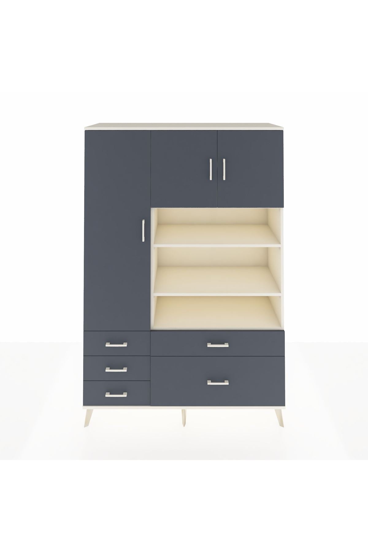 Hyperion Dolap 9 Raflı 5 Çekmeceli 3 Kapaklı 132x44x195 Aytaşı-Antrasit/Antrasit
