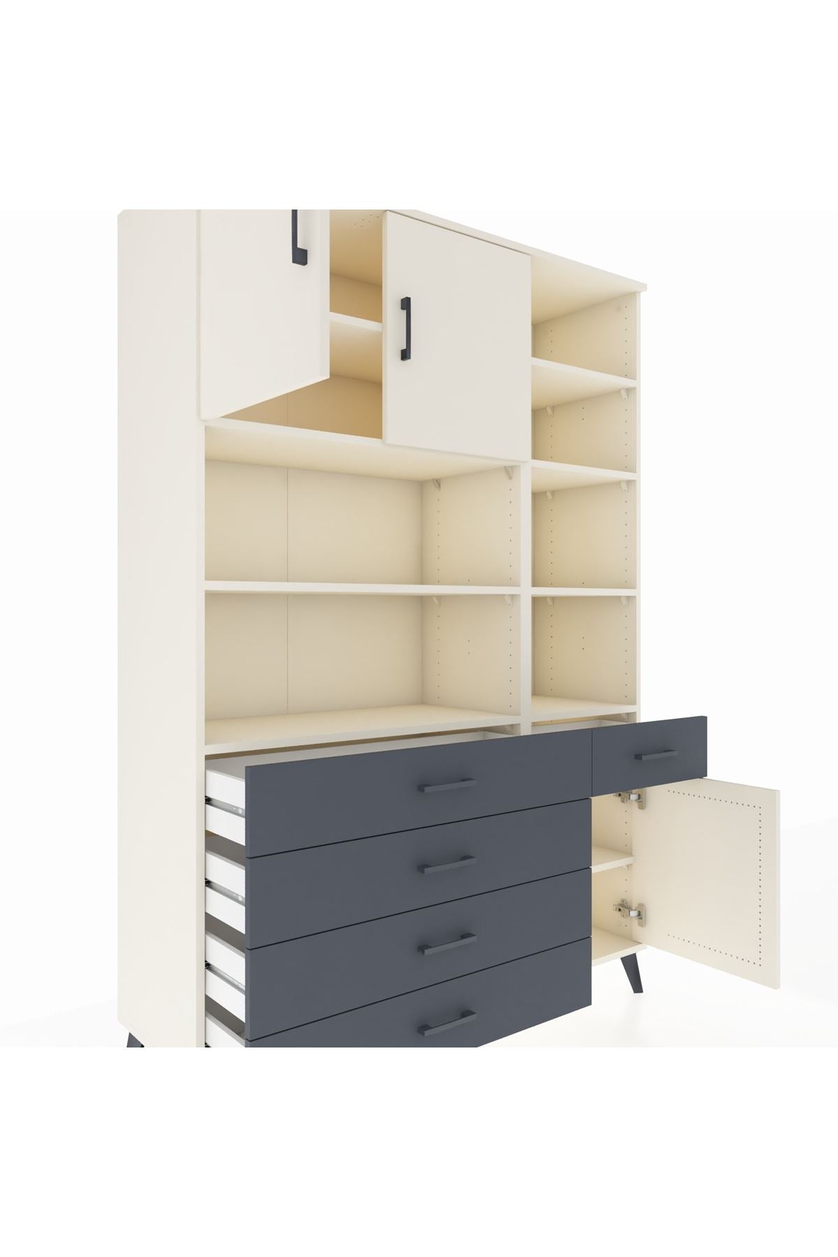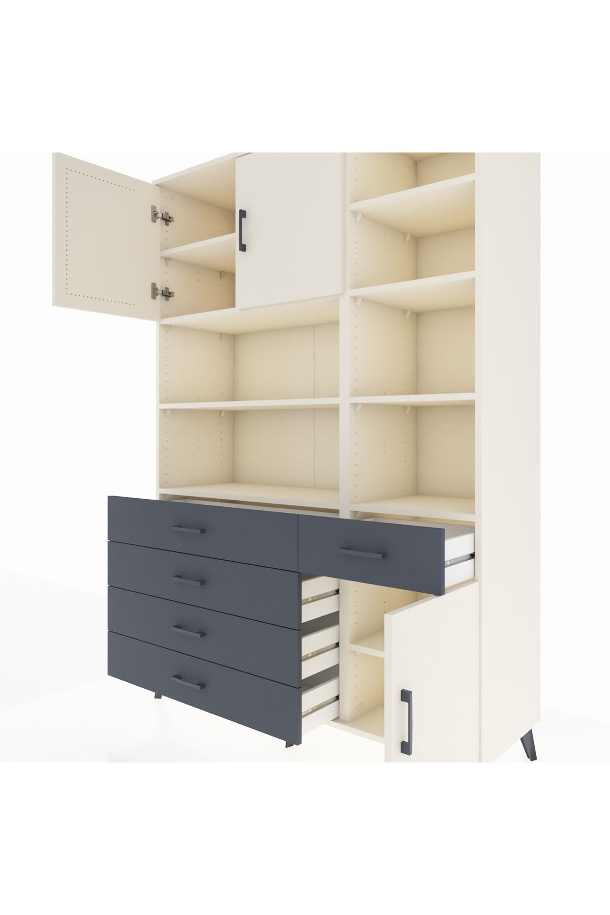 Hyperion Dolap 9 Raflı 5 Çekmeceli 3 Kapaklı 132x44x195 Aytaşı-Aytaşı/Antrasit