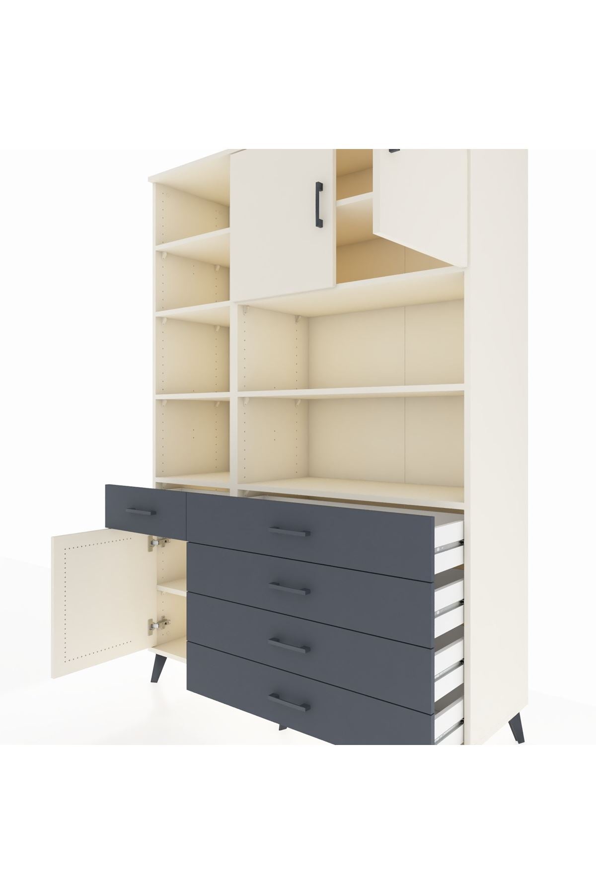 Hyperion Dolap 9 Raflı 5 Çekmeceli 3 Kapaklı 132x44x195 Aytaşı-Aytaşı/Antrasit