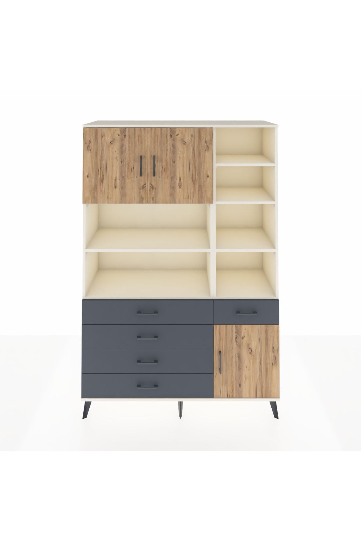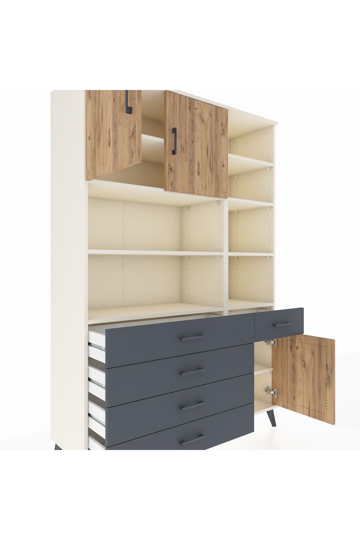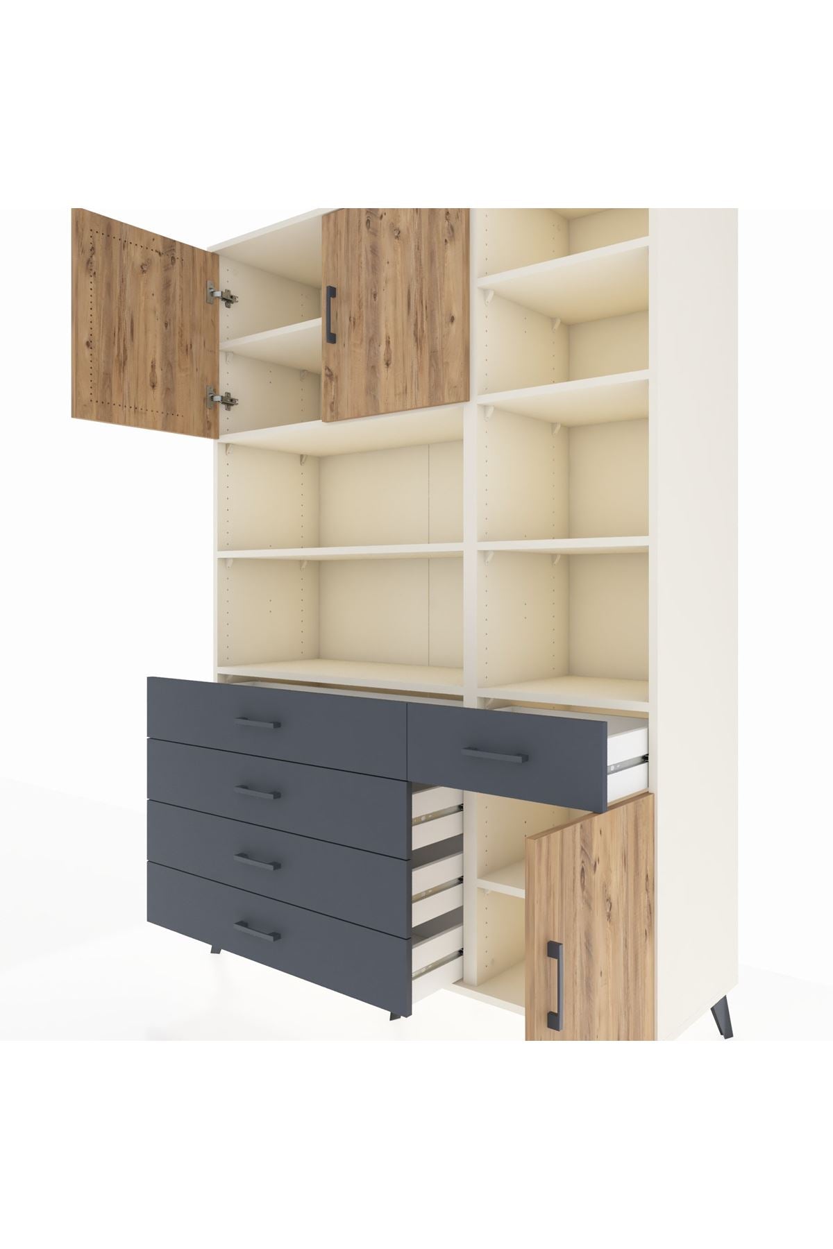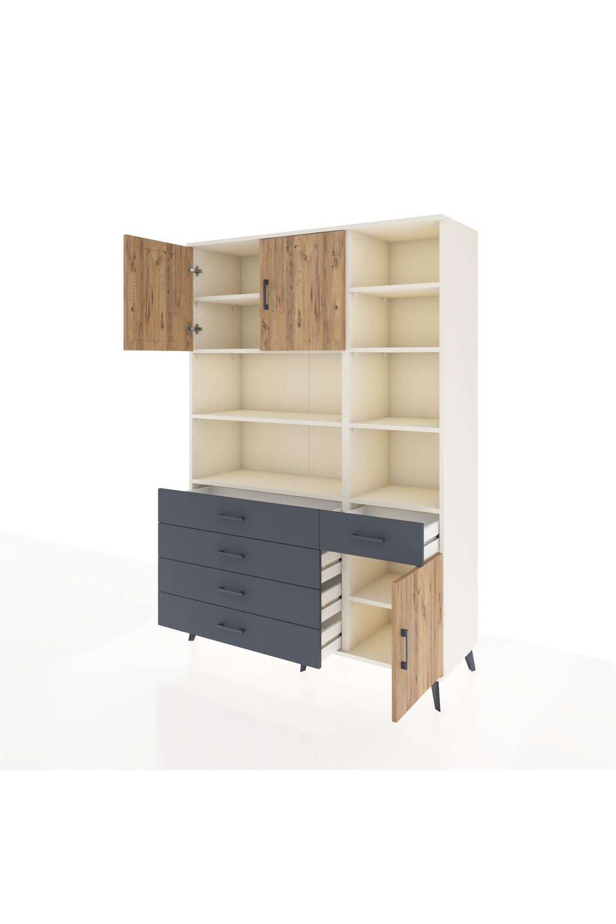 Hyperion Dolap 9 Raflı 5 Çekmeceli 3 Kapaklı 132x44x195 Aytaşı-Çam/Antrasit