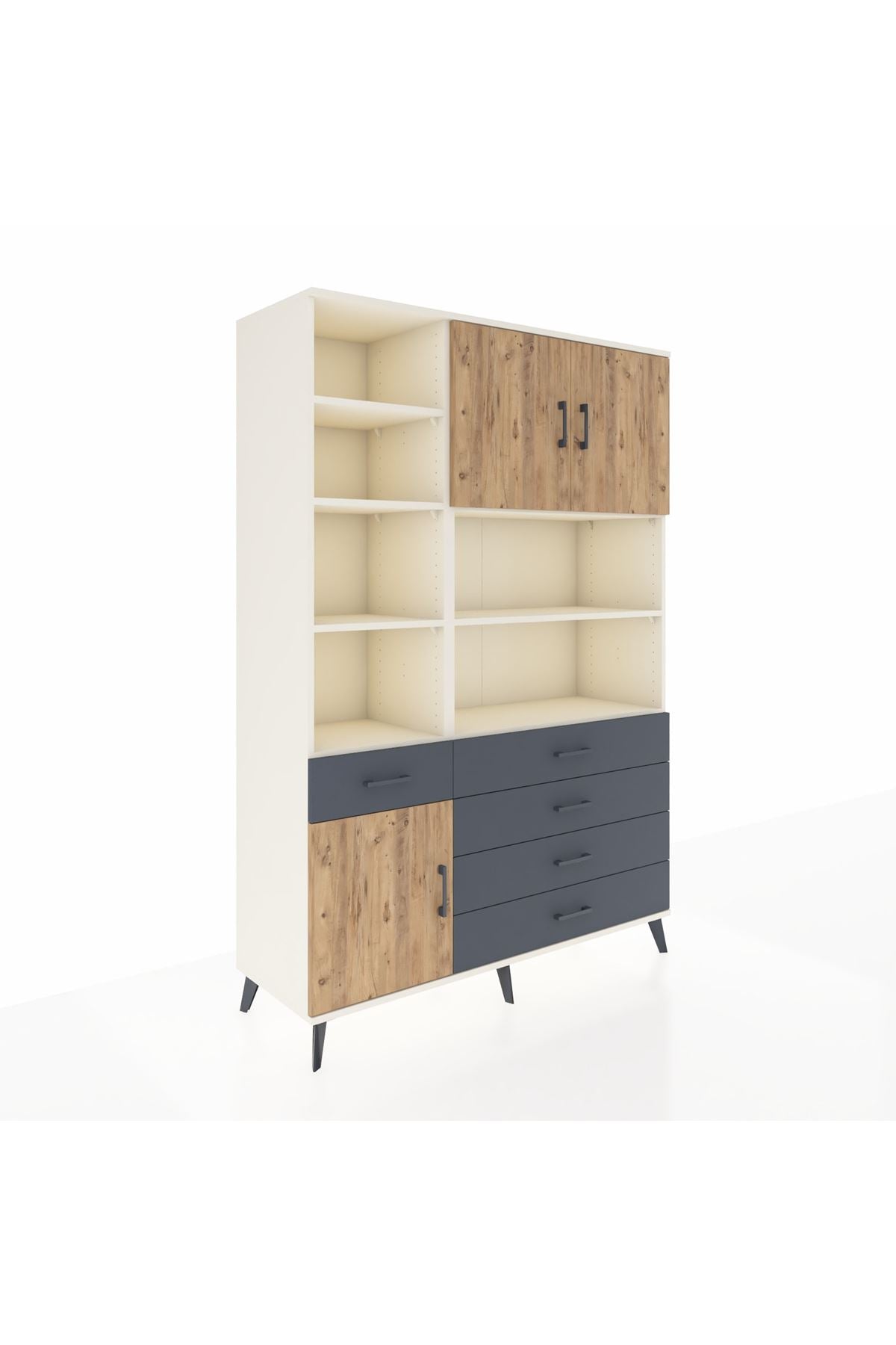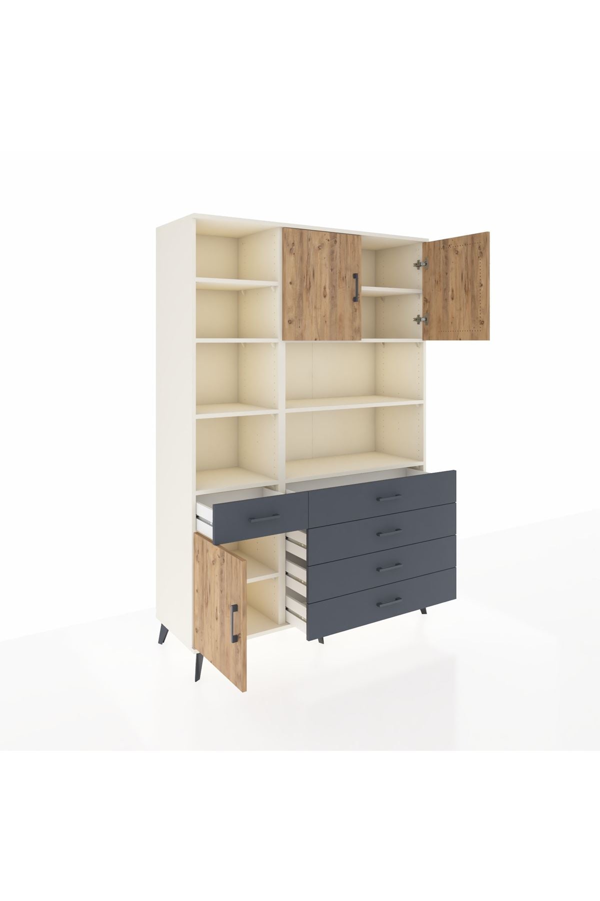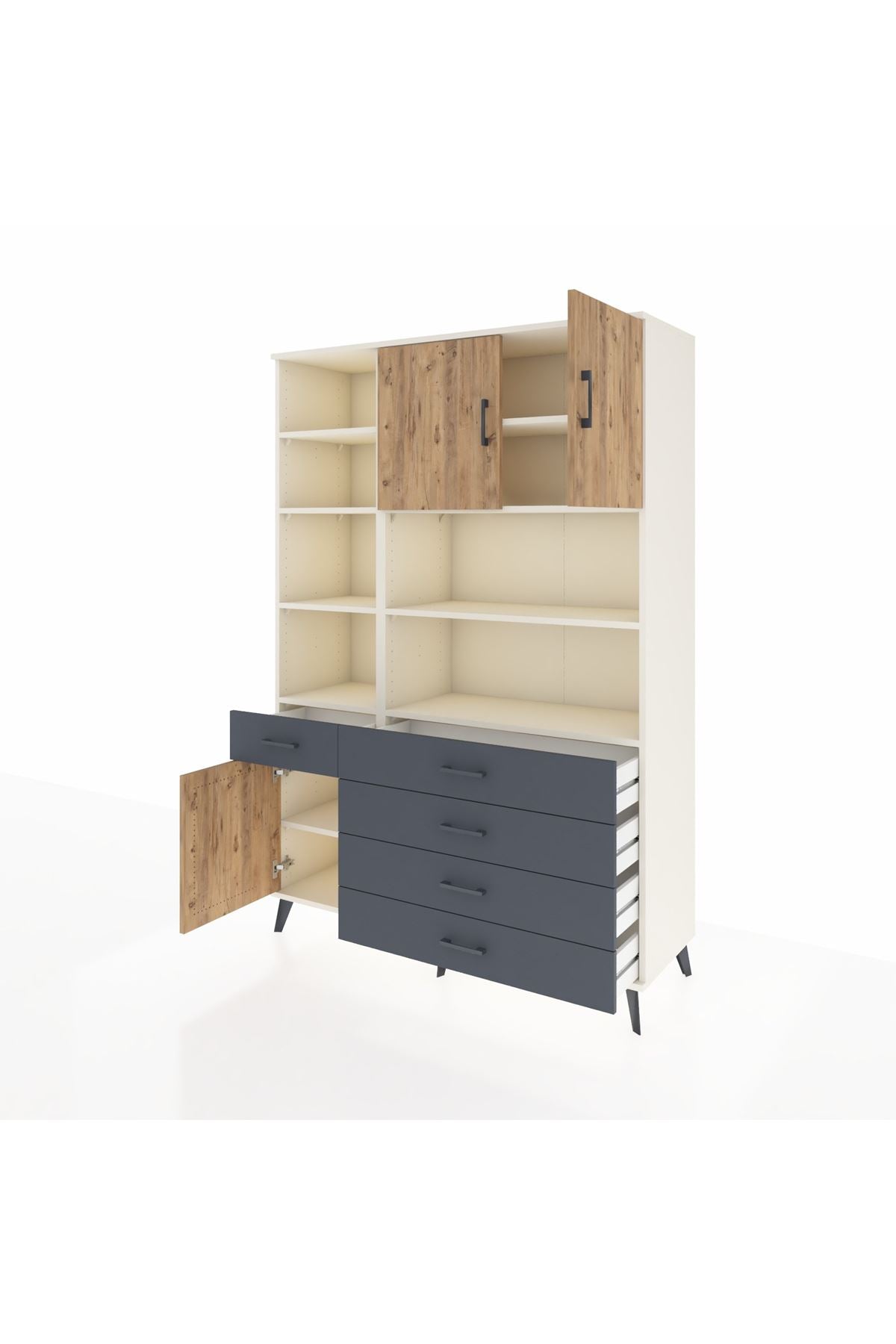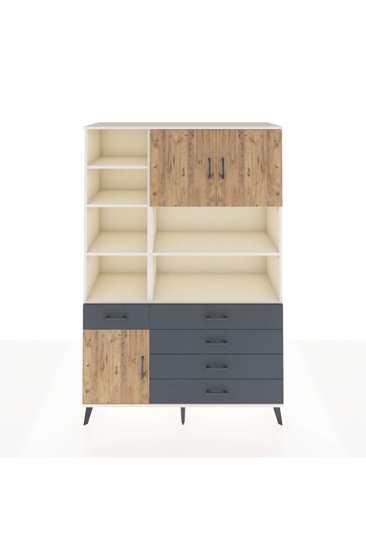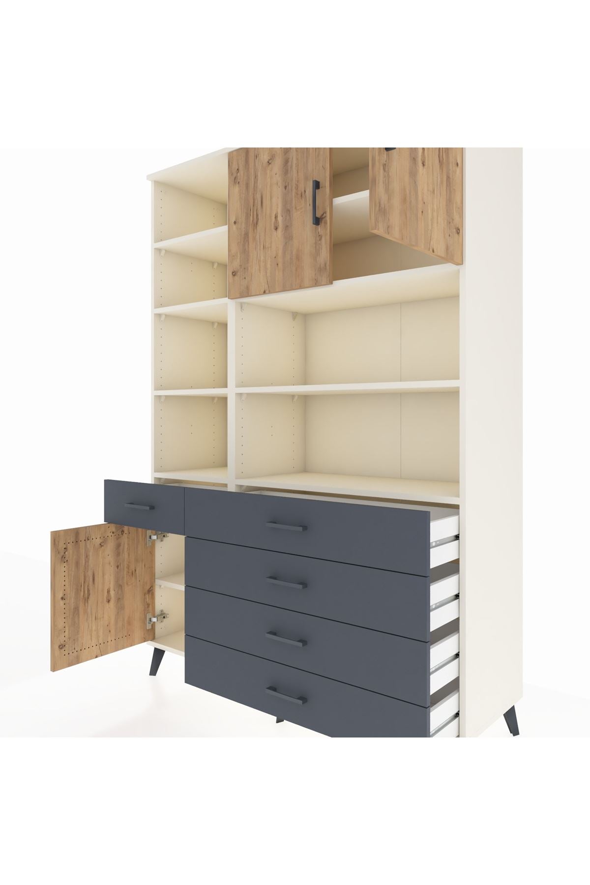 Hyperion Dolap 9 Raflı 5 Çekmeceli 3 Kapaklı 132x44x195 Aytaşı-Çam/Antrasit