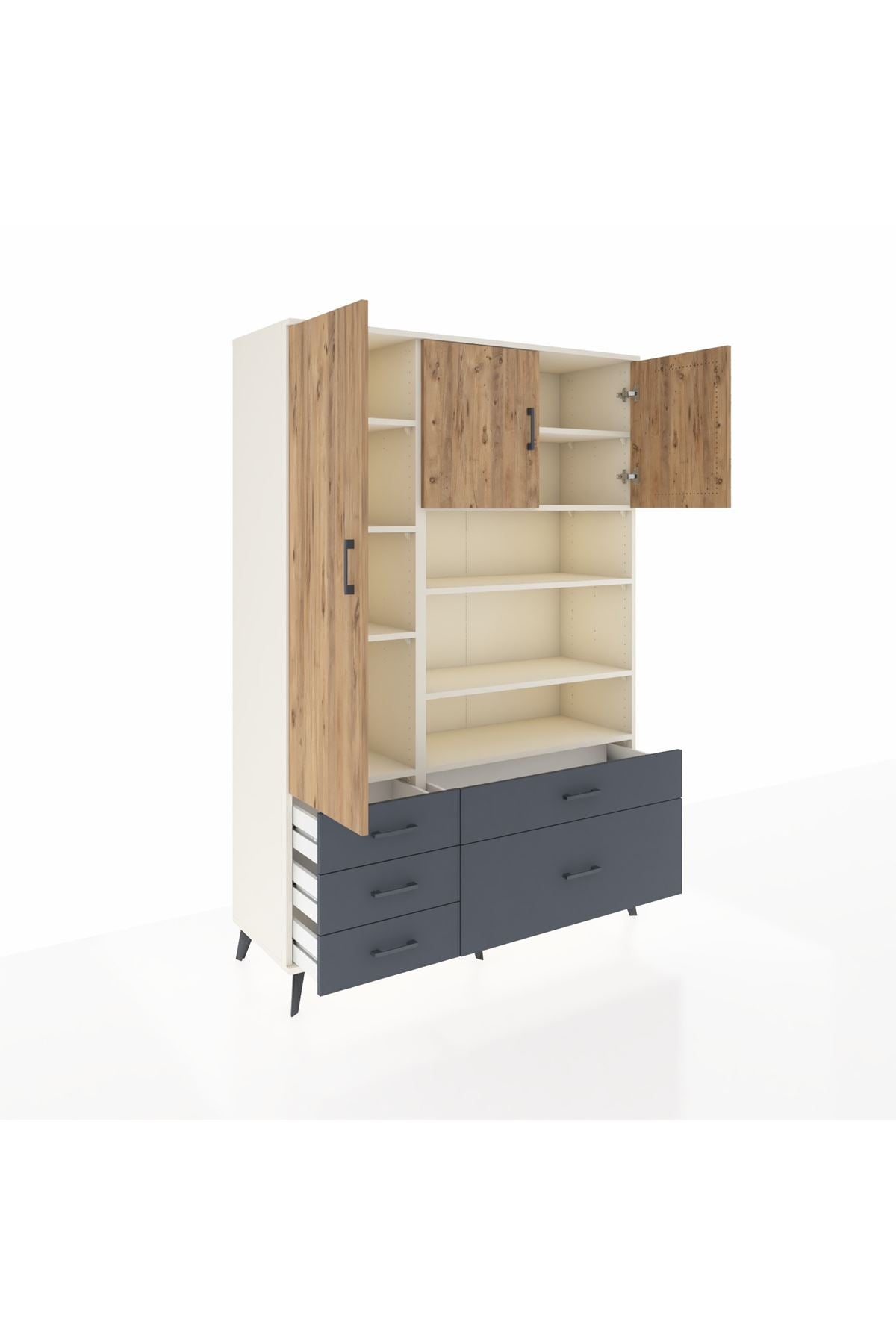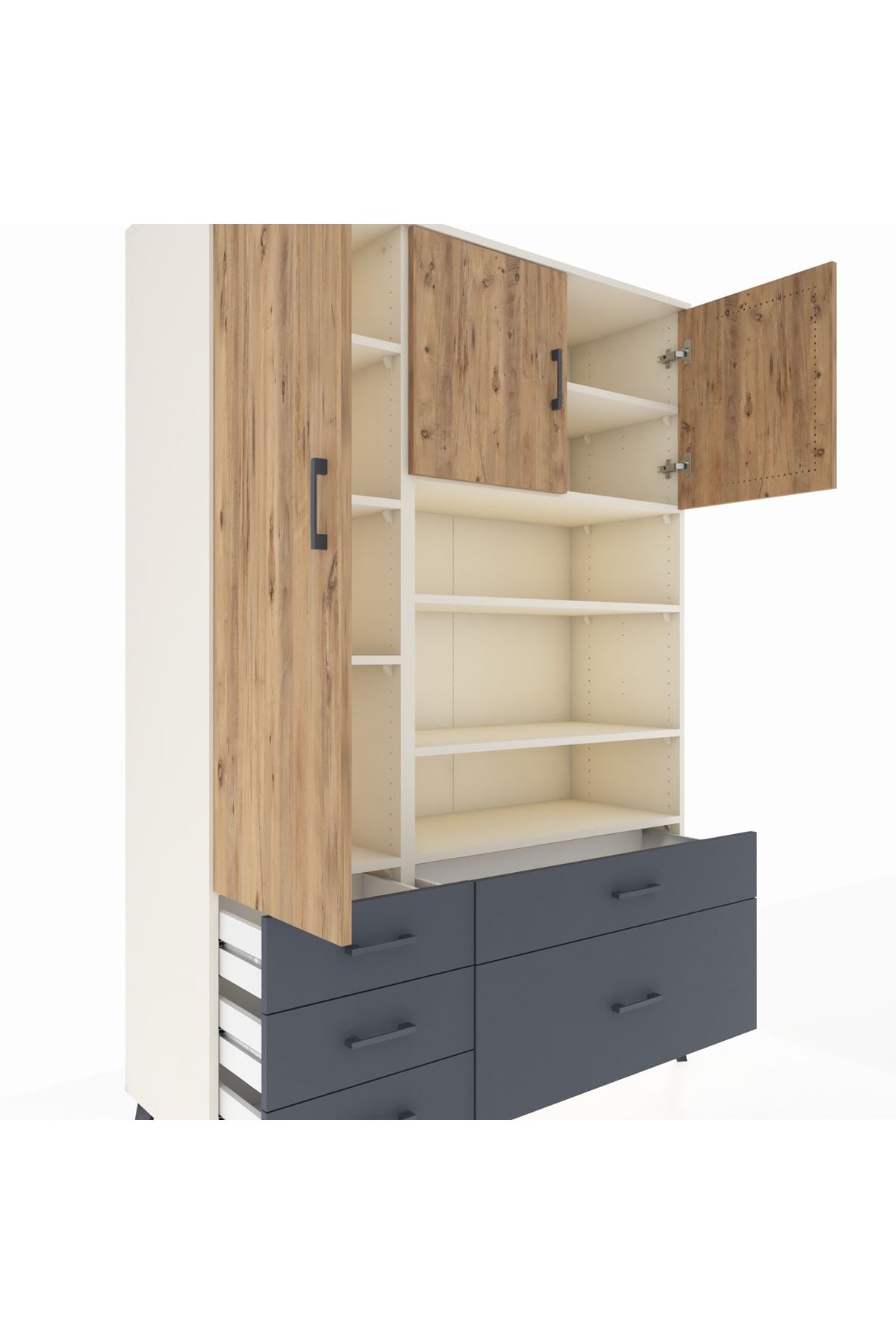 Hyperion Dolap 9 Raflı 5 Çekmeceli 3 Kapaklı 132x44x195 Aytaşı-Çam/Antrasit