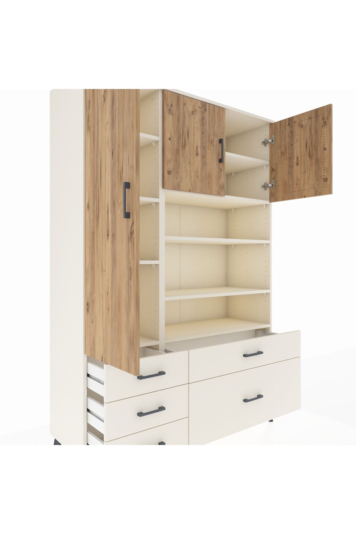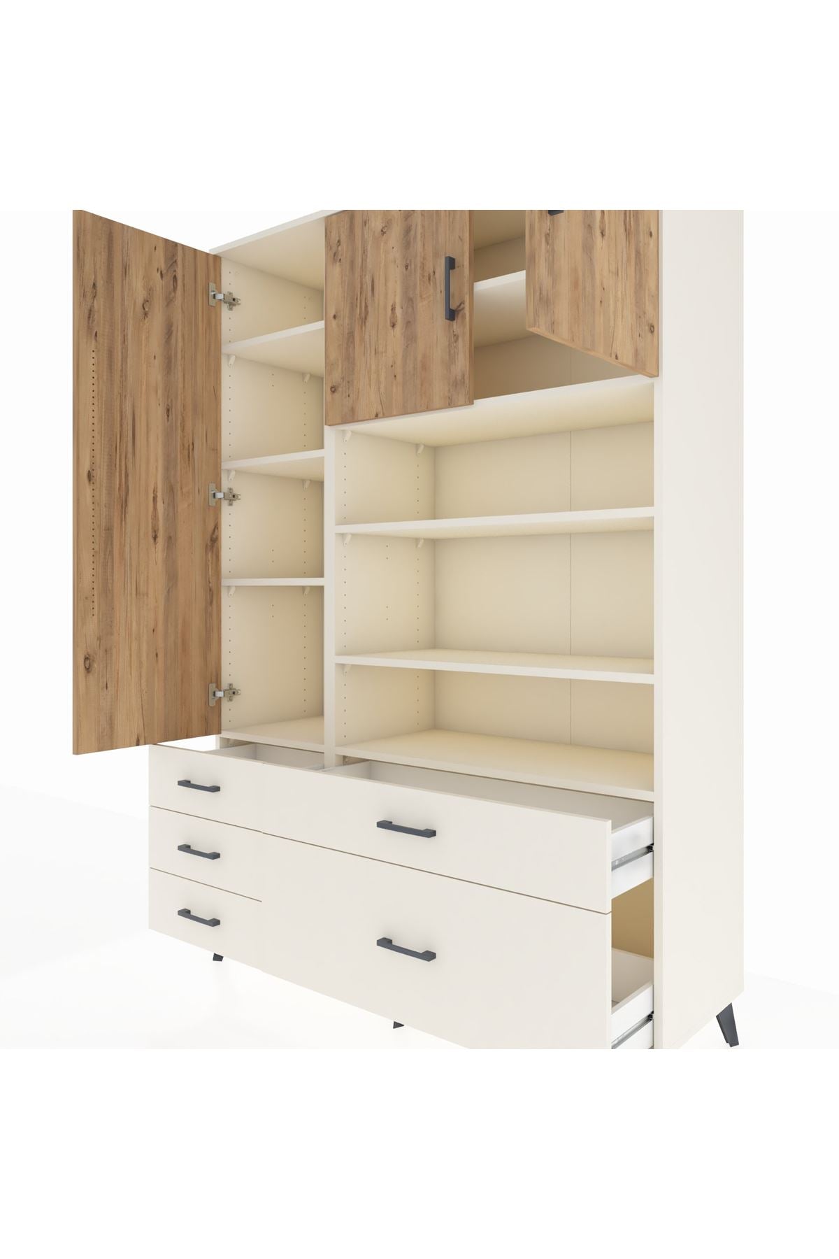 Hyperion Dolap 9 Raflı 5 Çekmeceli 3 Kapaklı 132x44x195 Aytaşı-Çam/Aytaşı