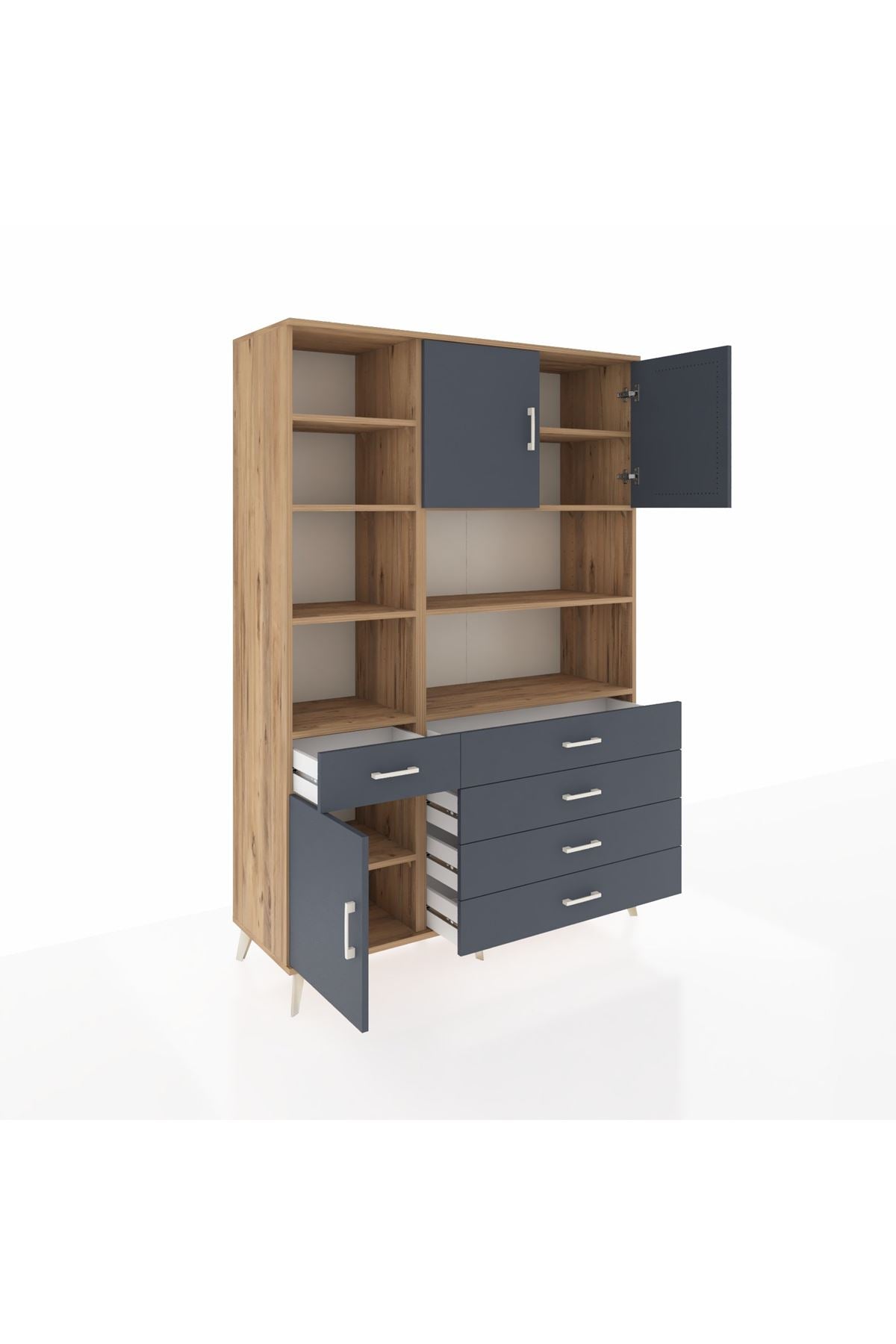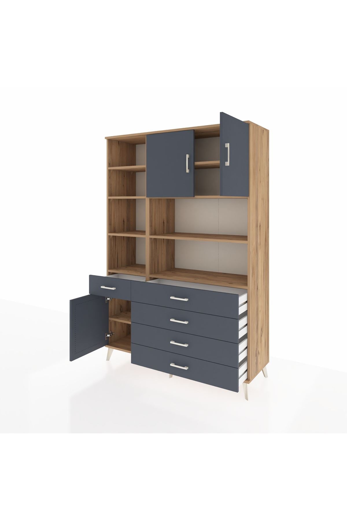 Hyperion Dolap 9 Raflı 5 Çekmeceli 3 Kapaklı 132x44x195 Çam-Antrasit/Antrasit