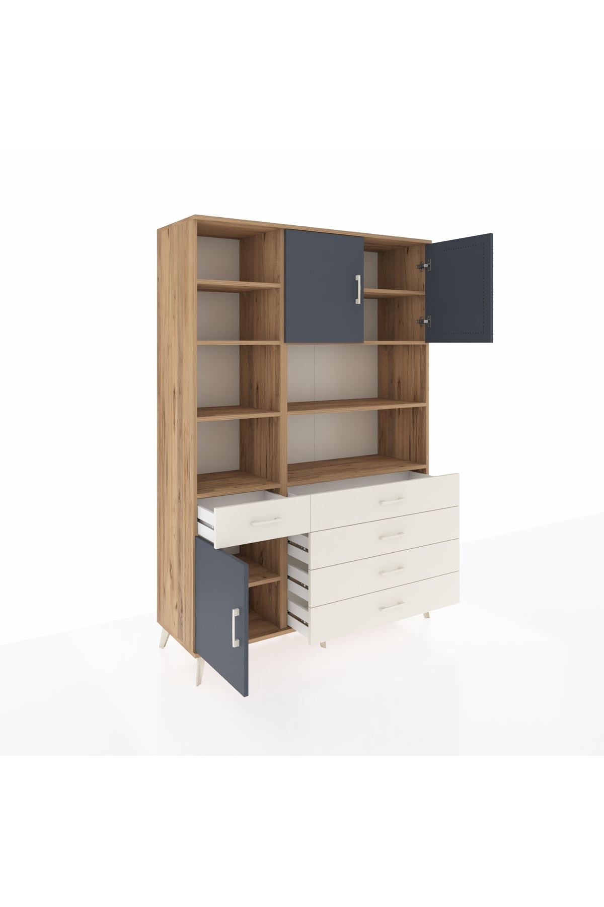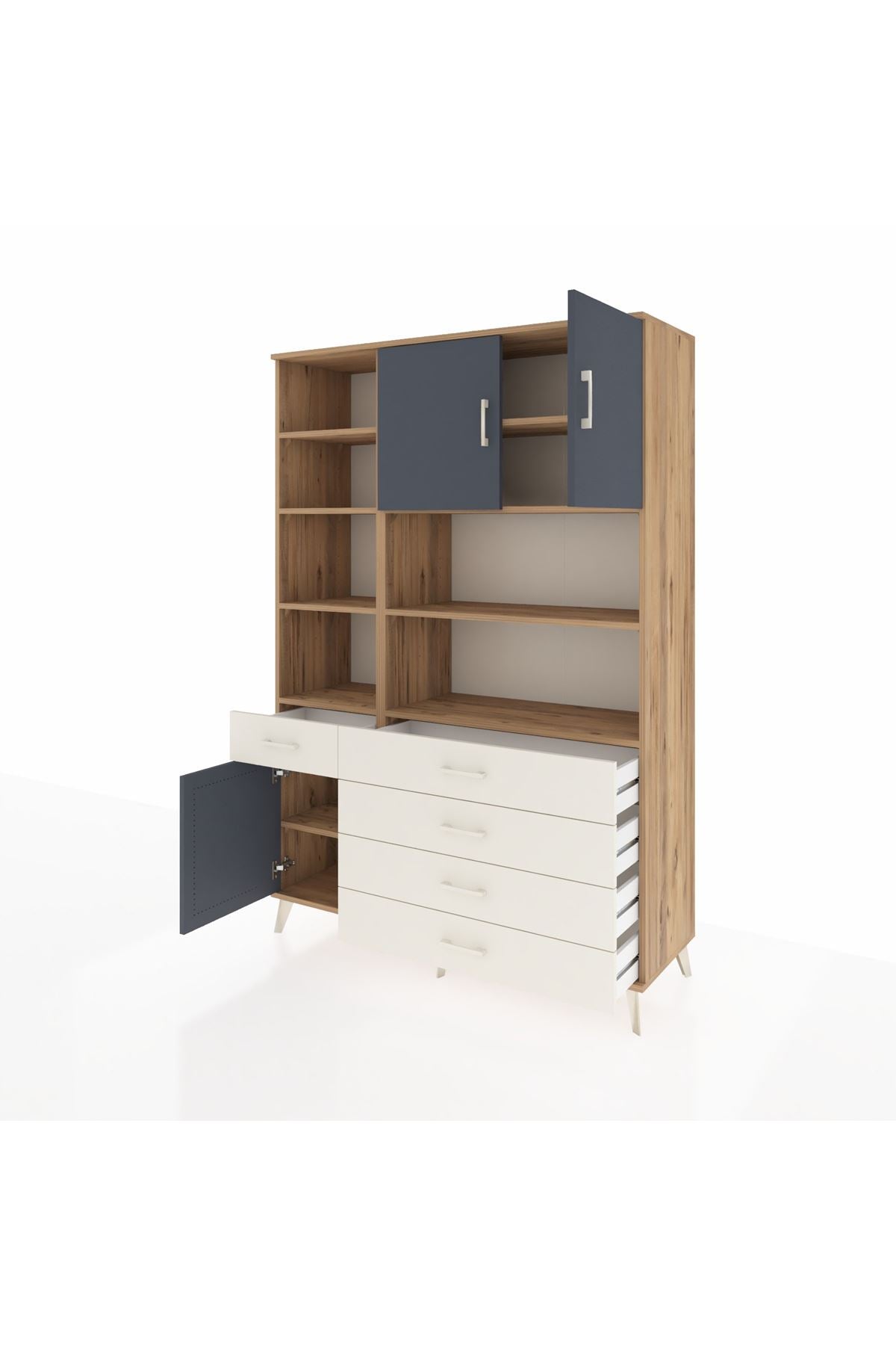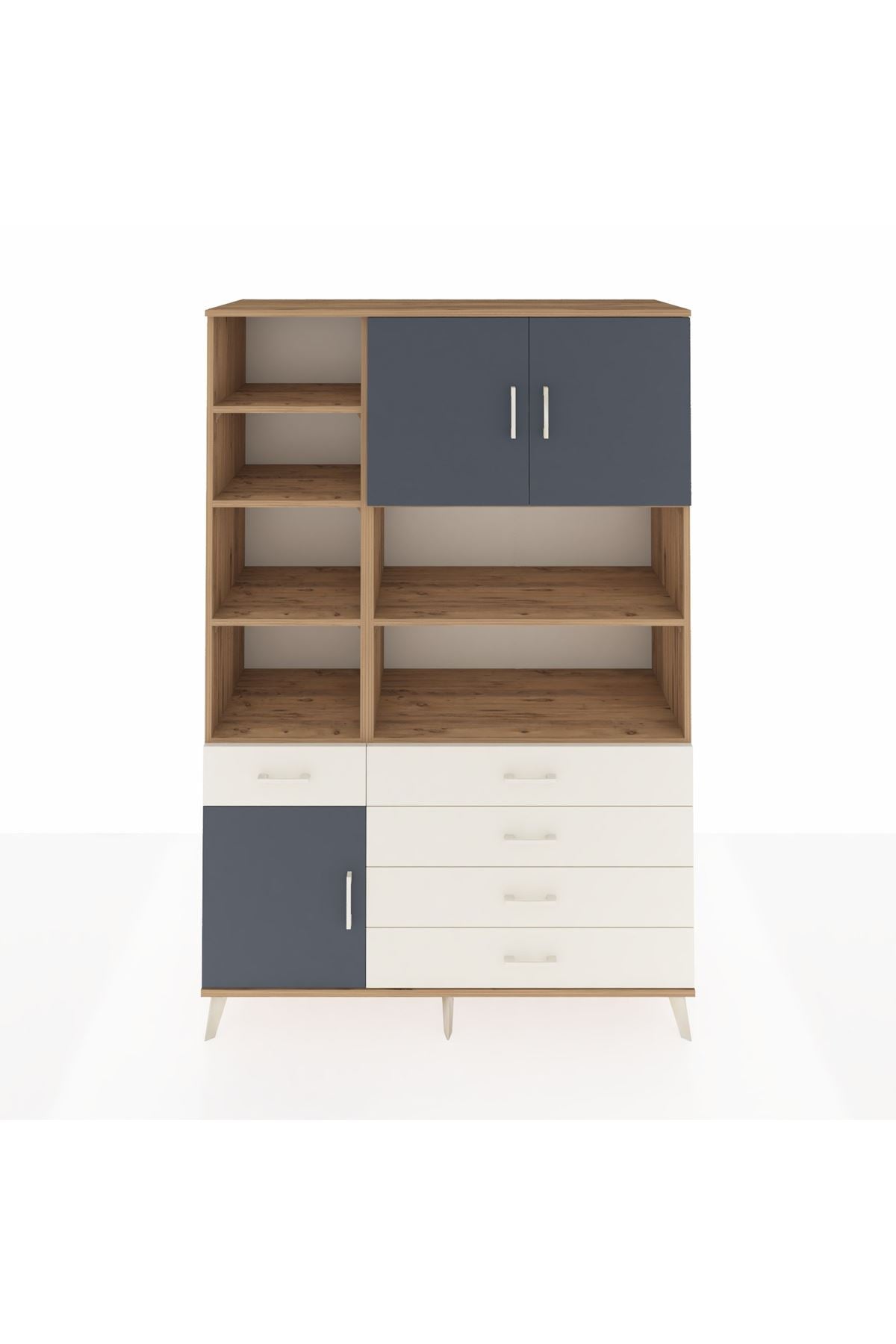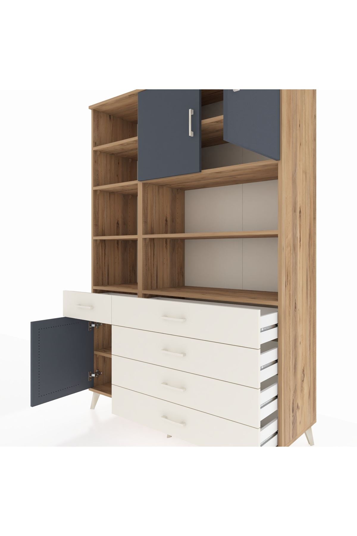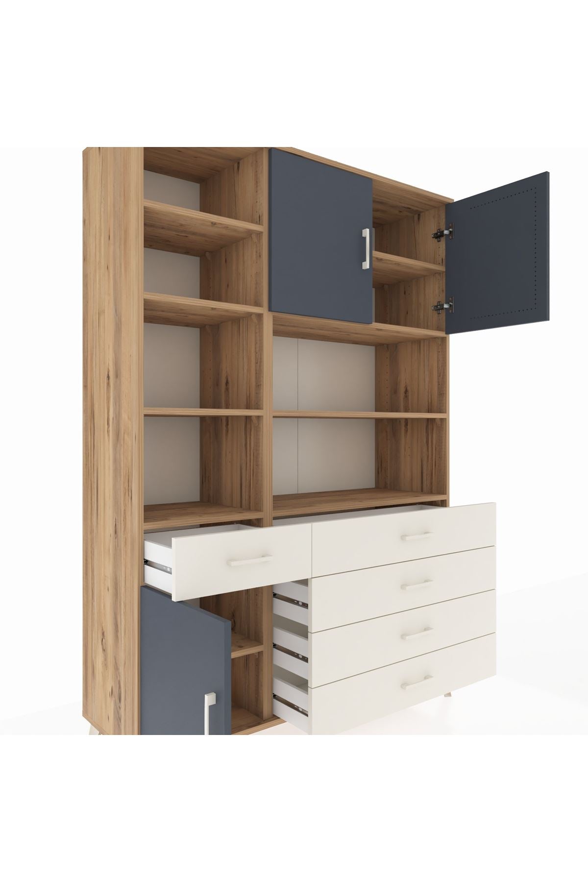 Hyperion Dolap 9 Raflı 5 Çekmeceli 3 Kapaklı 132x44x195 Çam-Antrasit/Aytaşı