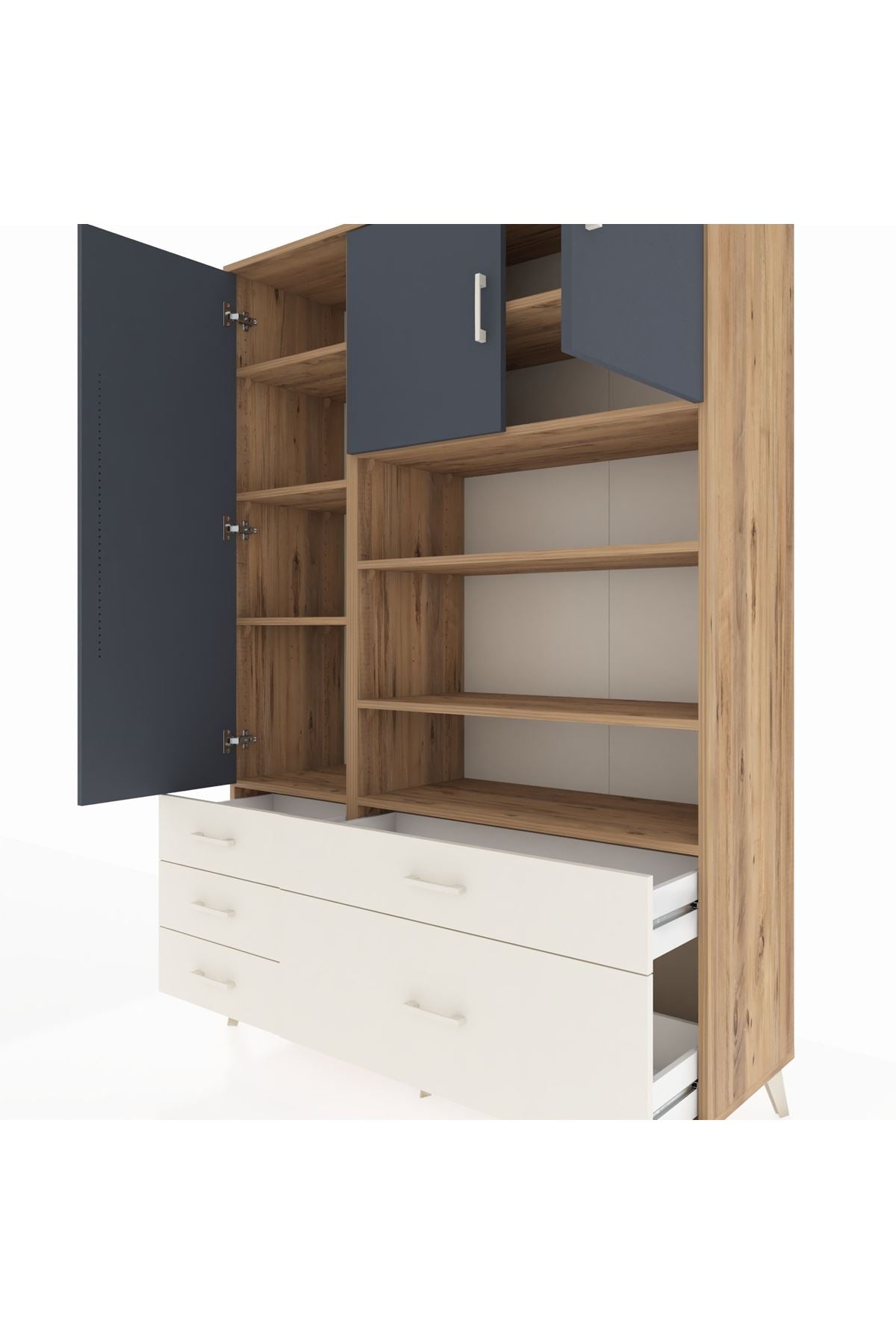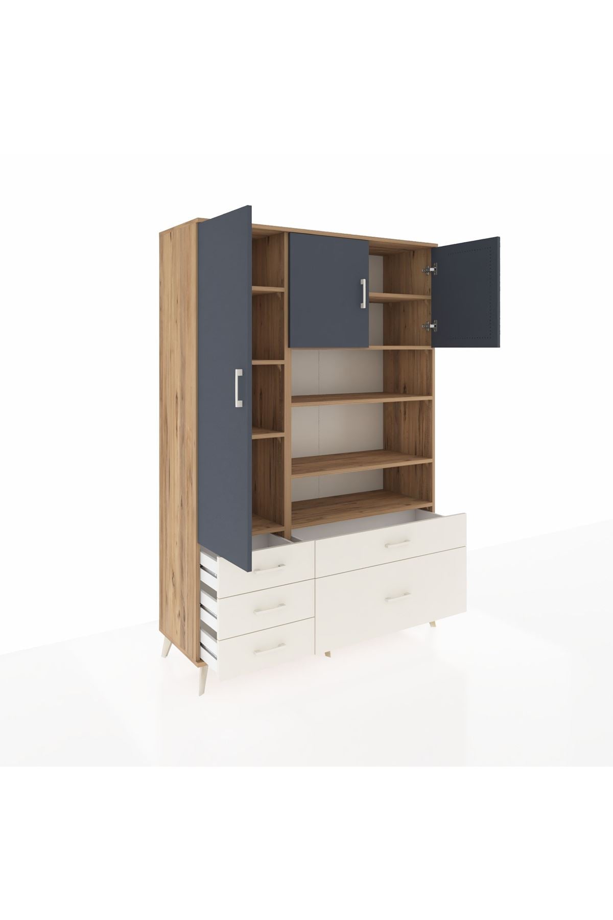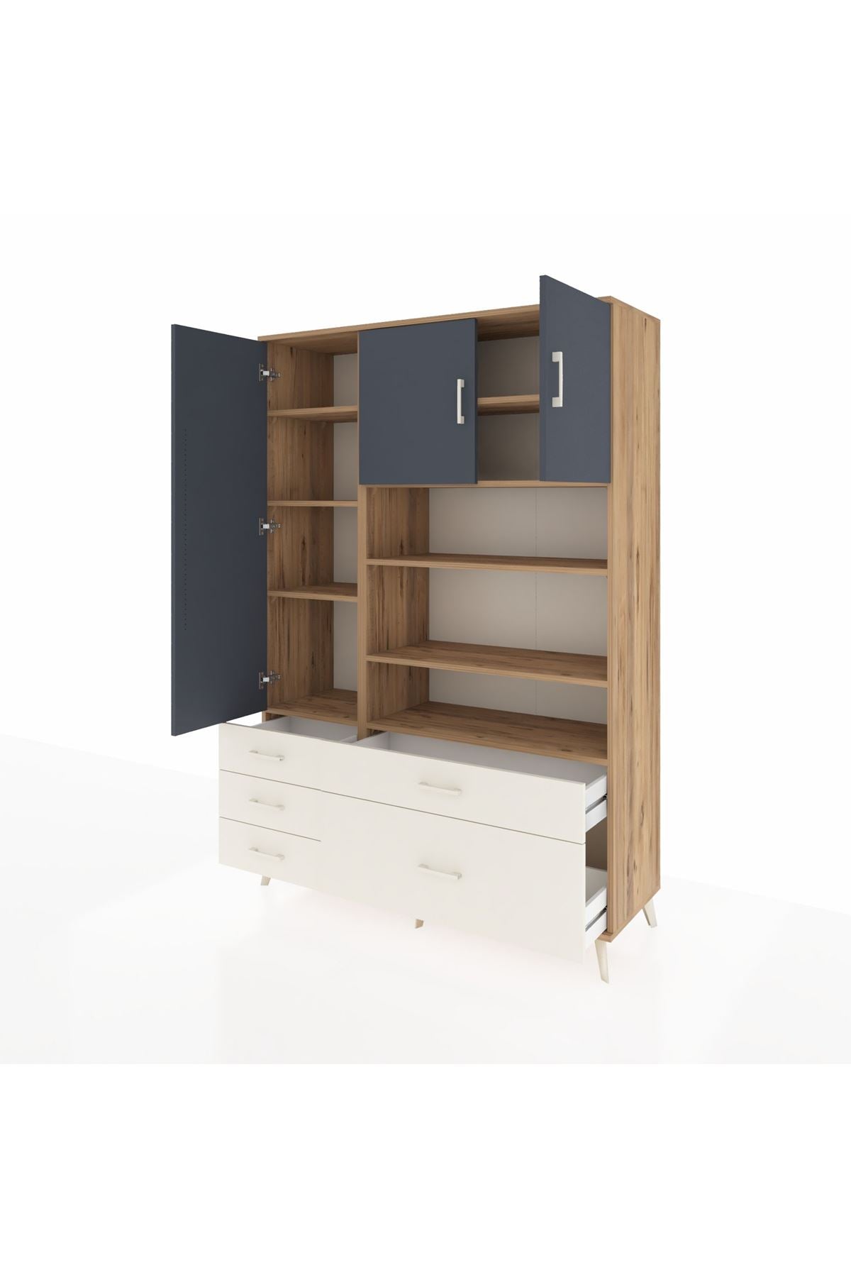 Hyperion Dolap 9 Raflı 5 Çekmeceli 3 Kapaklı 132x44x195 Çam-Antrasit/Aytaşı