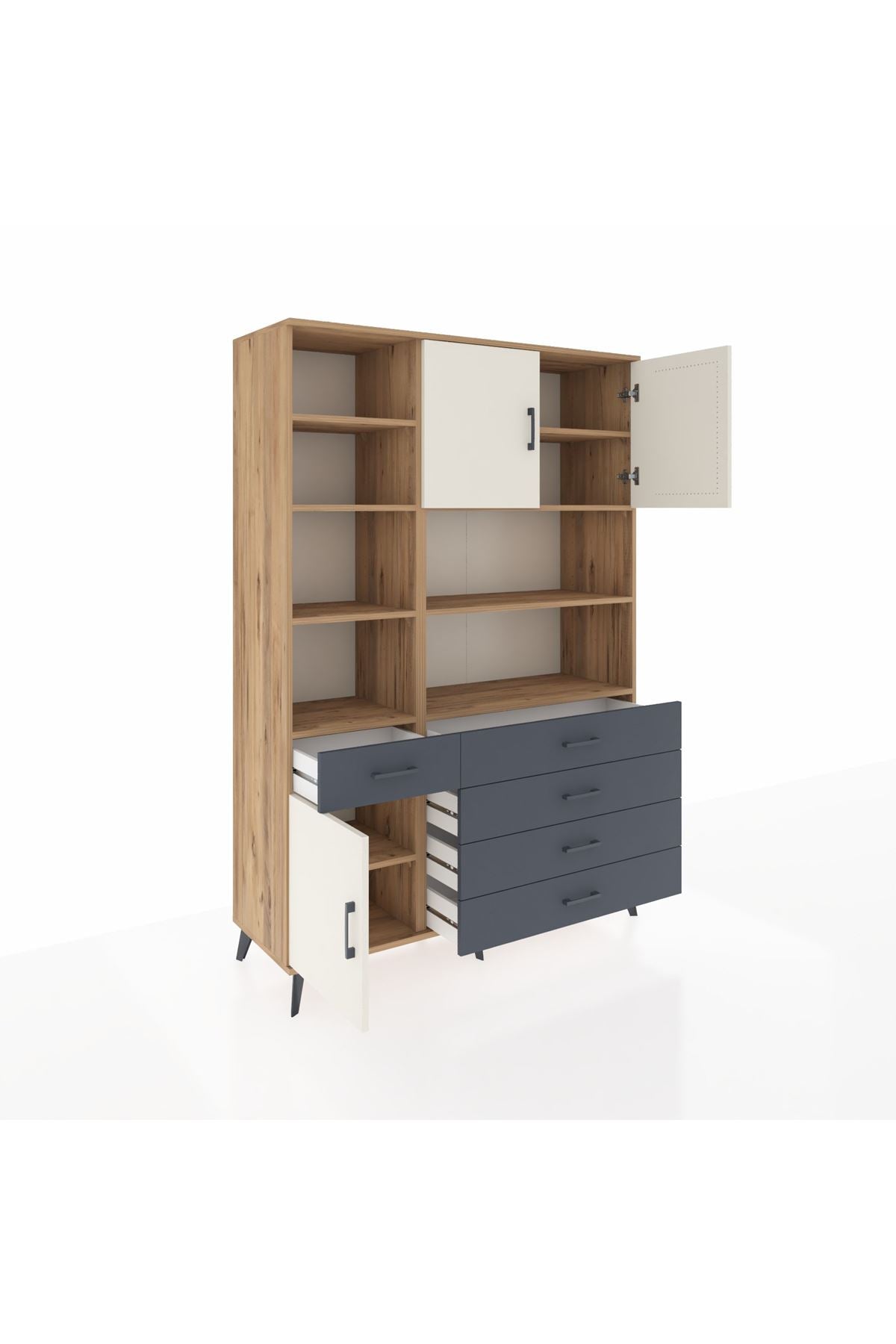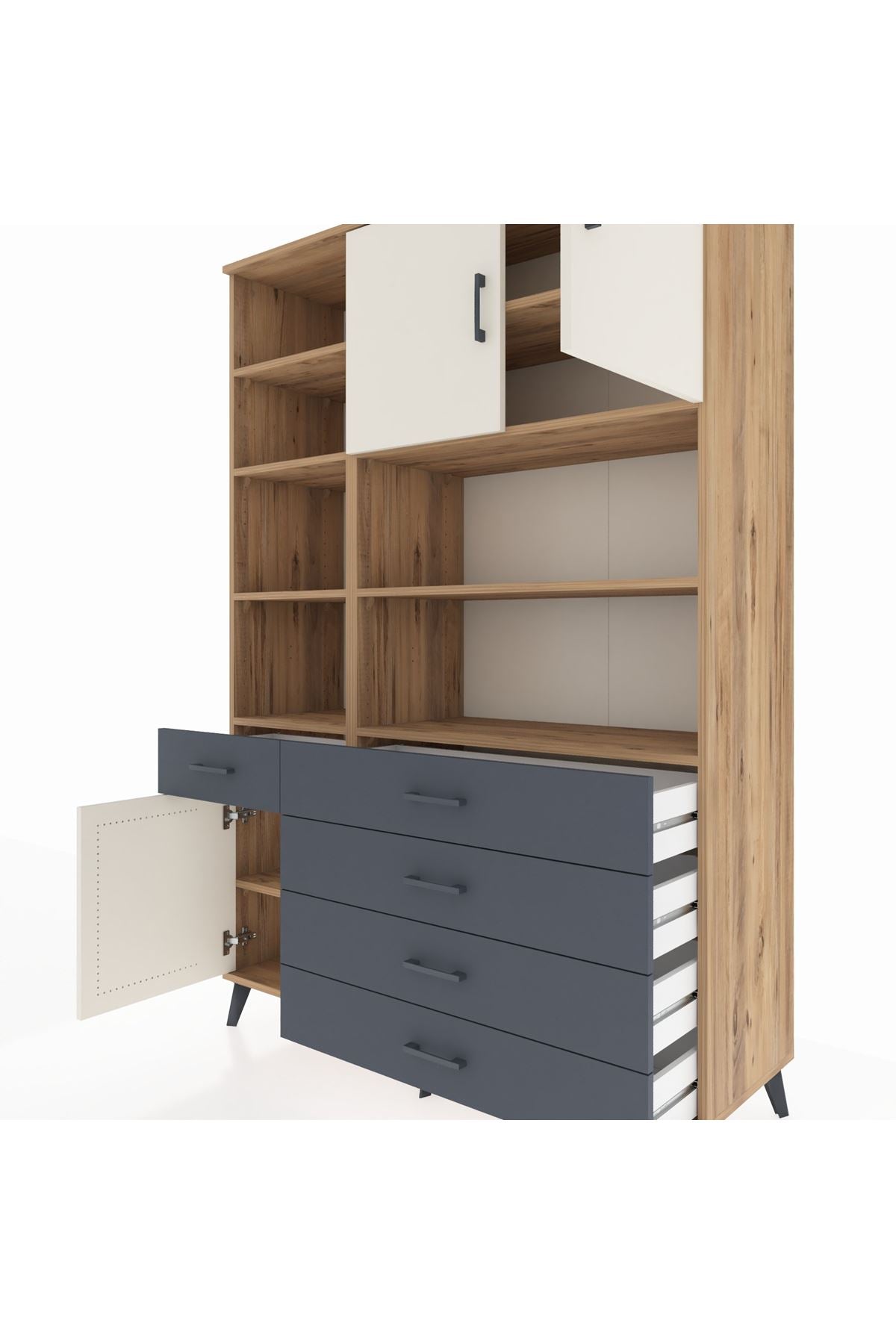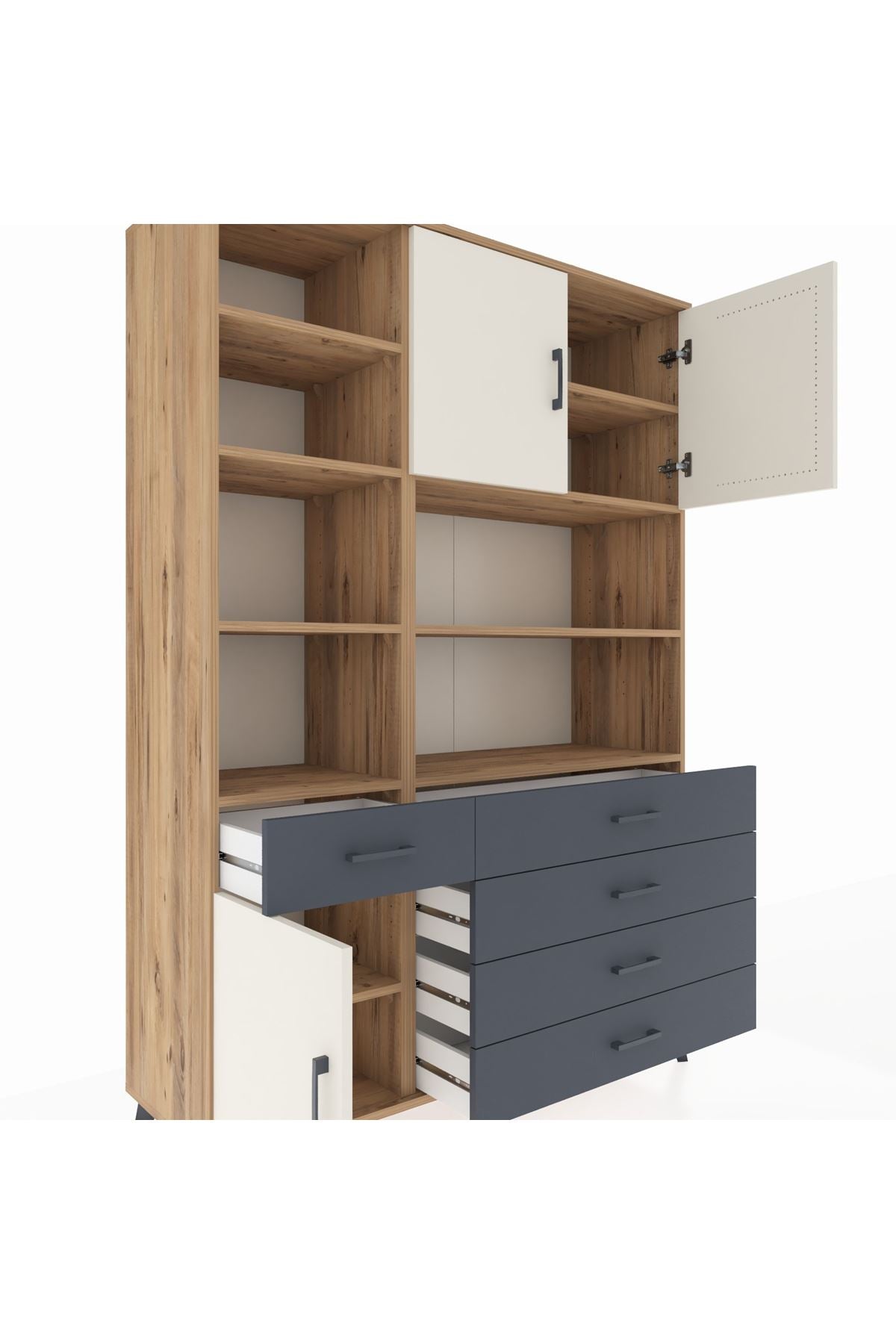 Hyperion Dolap 9 Raflı 5 Çekmeceli 3 Kapaklı 132x44x195 Çam-Aytaşı/Antrasit