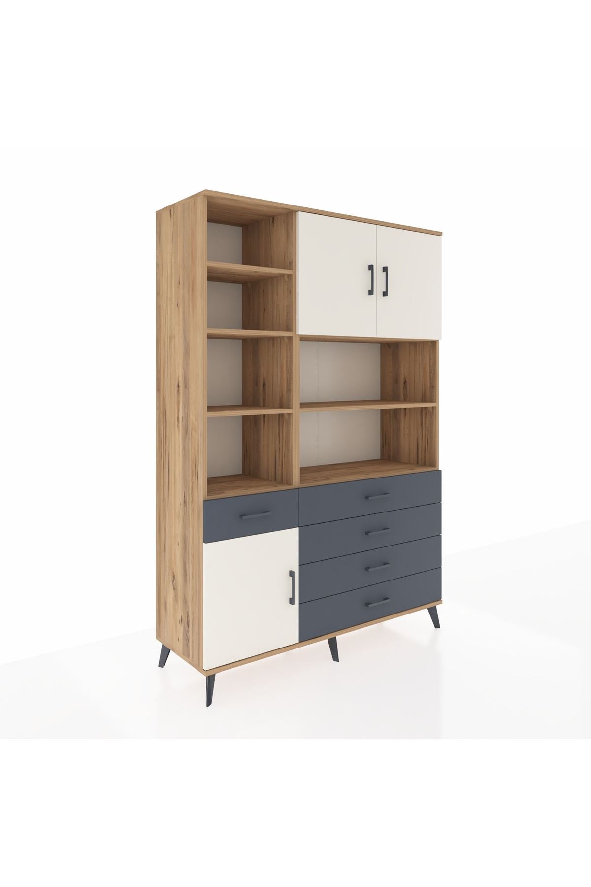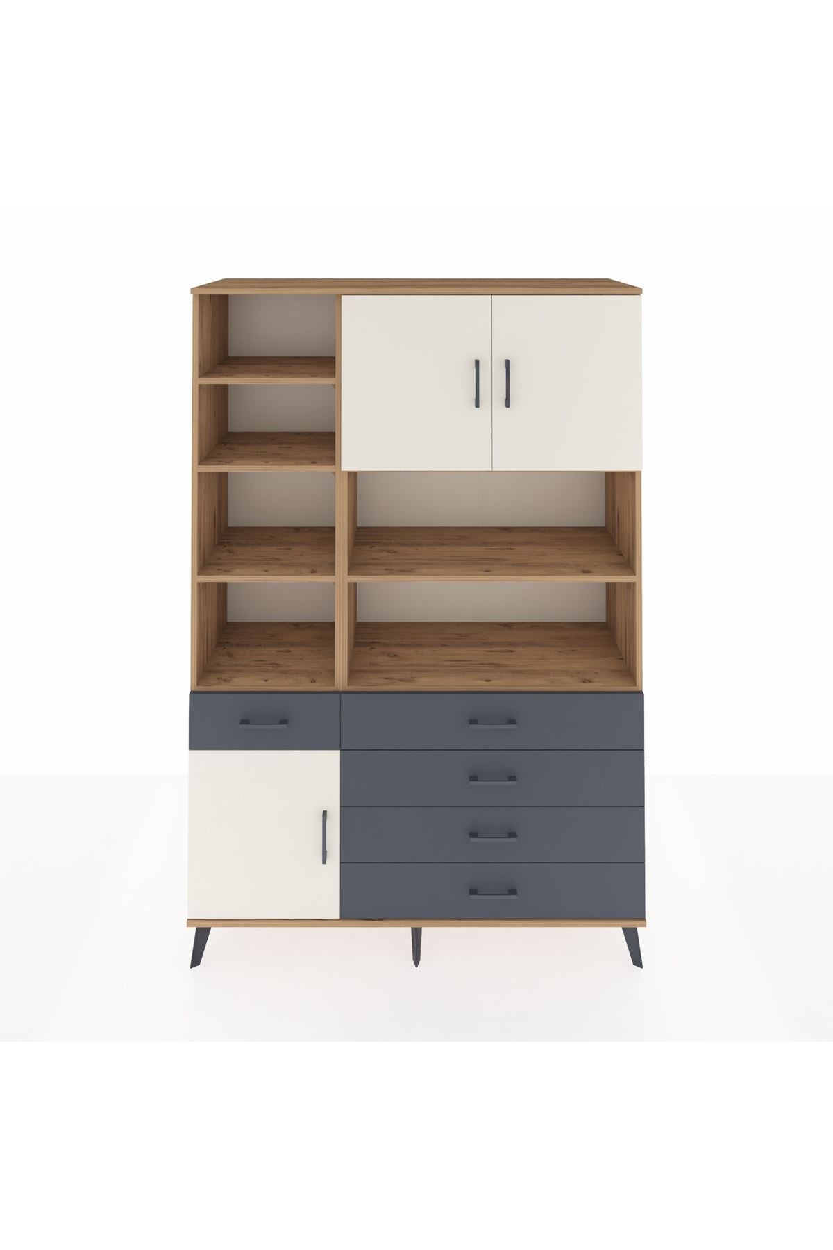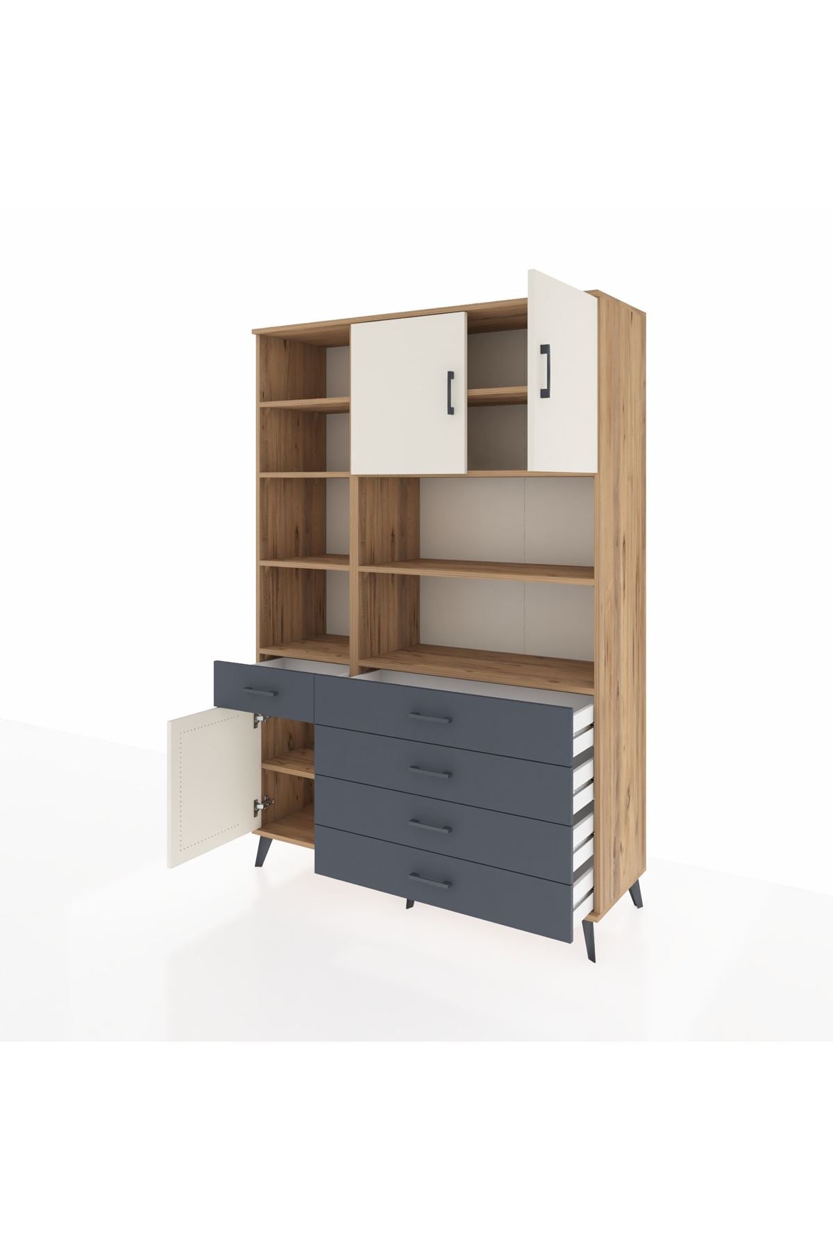 Hyperion Dolap 9 Raflı 5 Çekmeceli 3 Kapaklı 132x44x195 Çam-Aytaşı/Antrasit