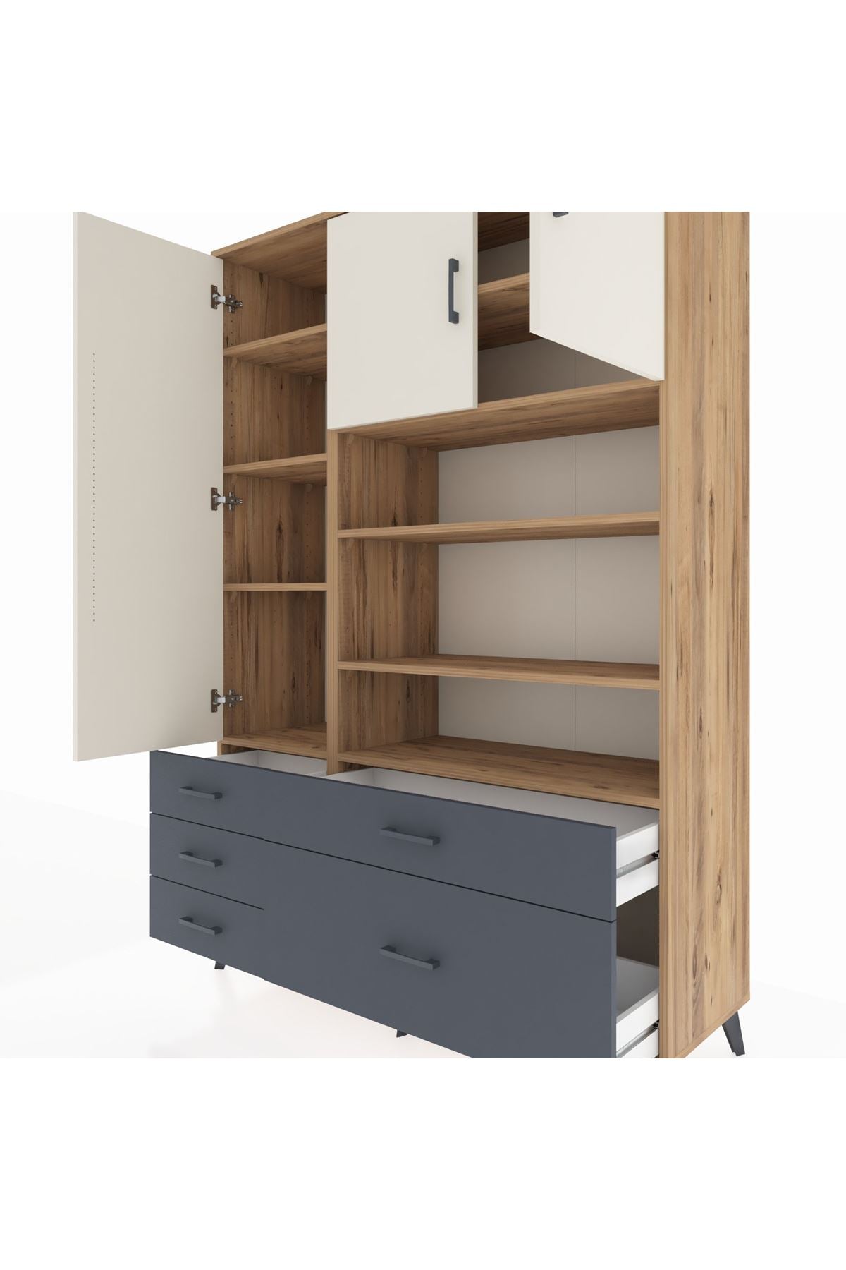 Hyperion Dolap 9 Raflı 5 Çekmeceli 3 Kapaklı 132x44x195 Çam-Aytaşı/Antrasit