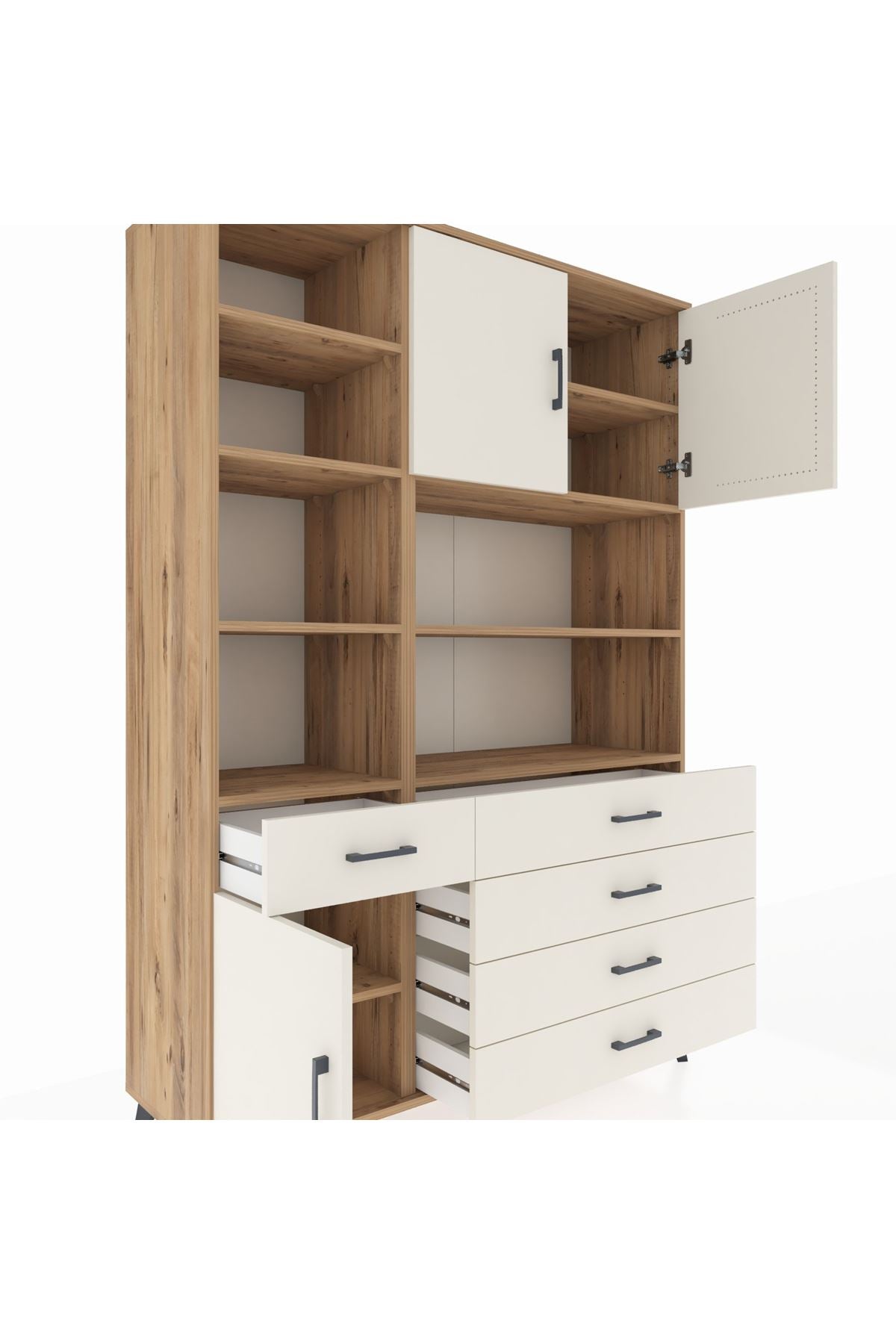 Hyperion Dolap 9 Raflı 5 Çekmeceli 3 Kapaklı 132x44x195 Çam-Aytaşı/Aytaşı