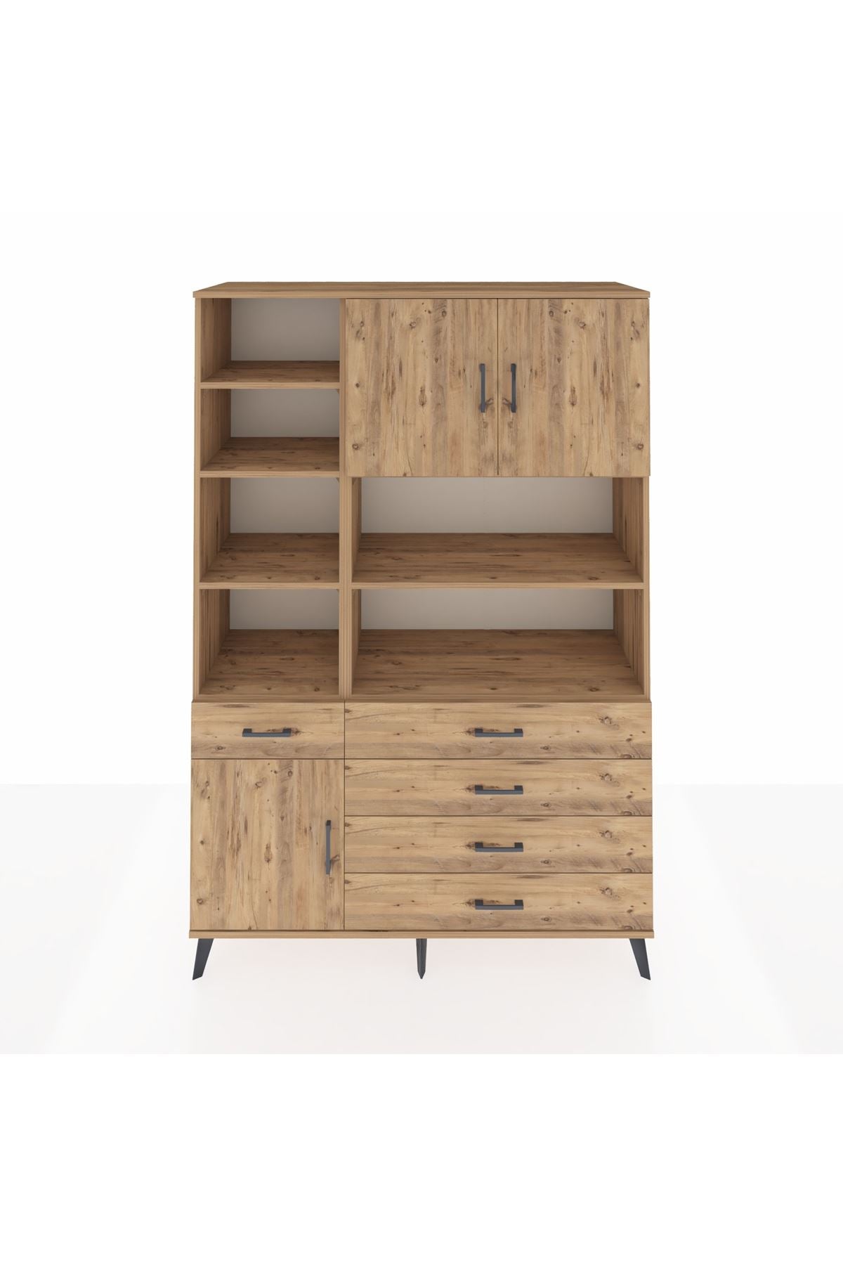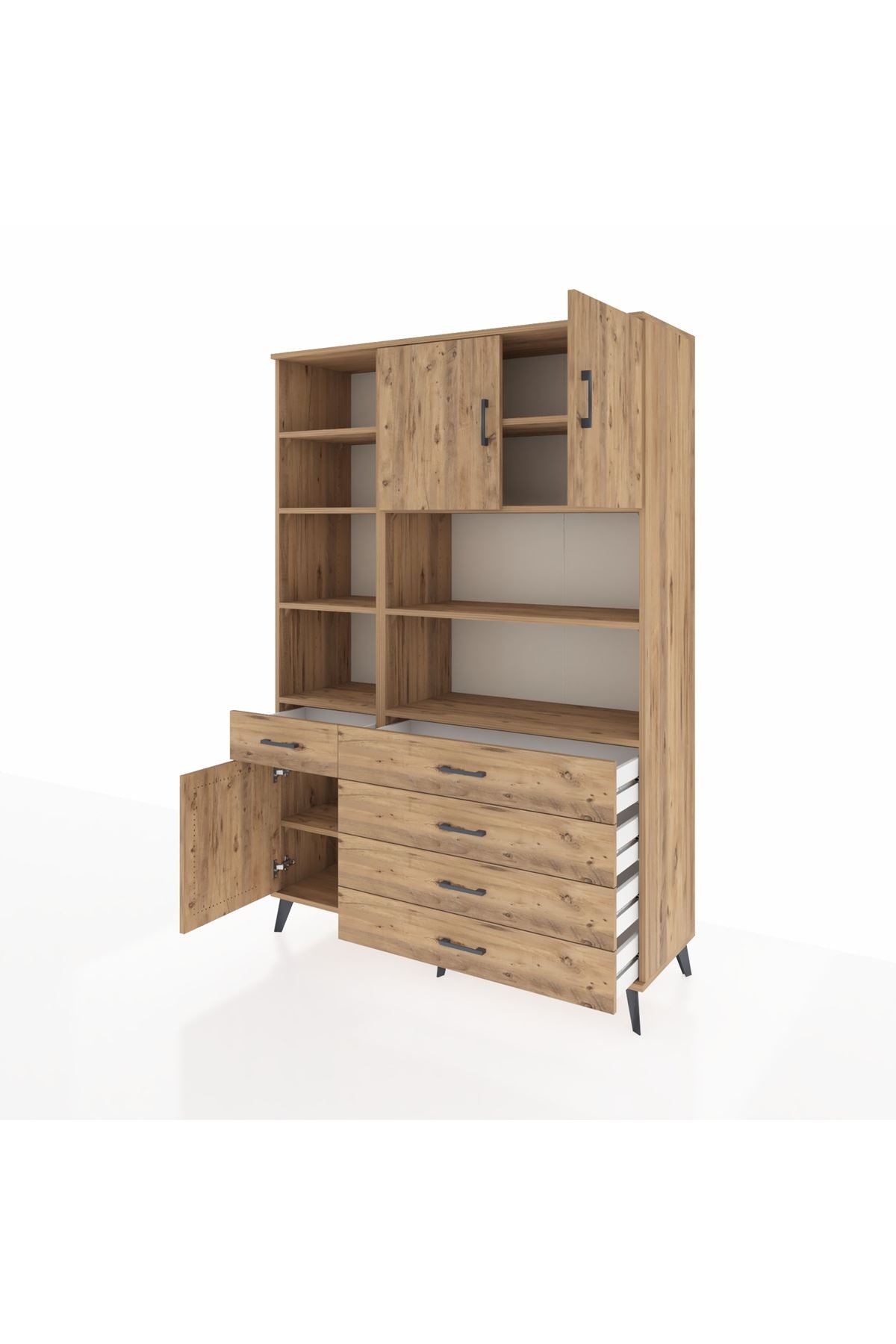 Hyperion Dolap 9 Raflı 5 Çekmeceli 3 Kapaklı 132x44x195 Çam-Çam/Çam