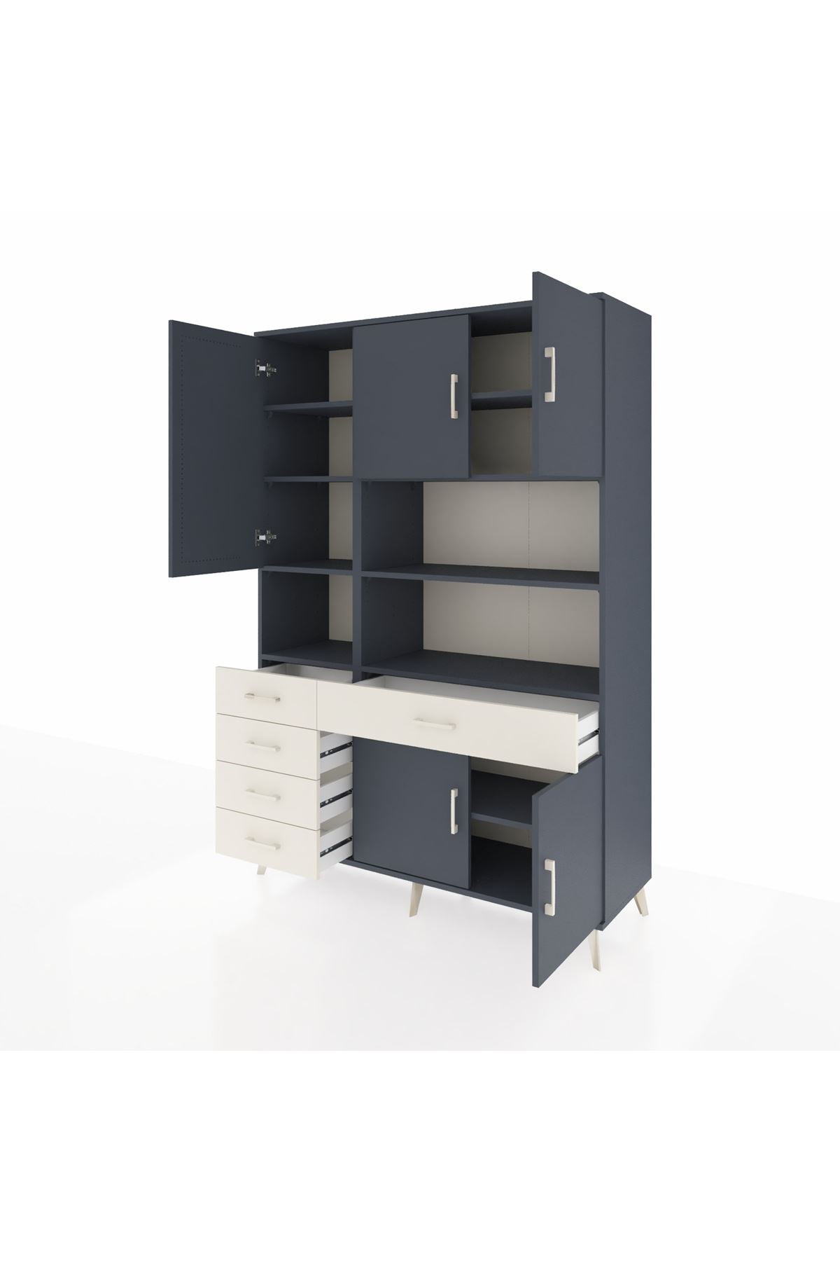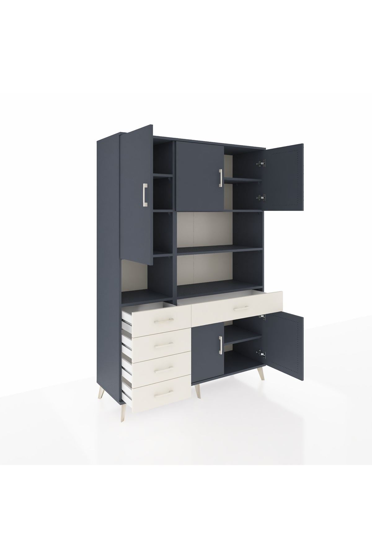 Hyperion Dolap 9 Raflı 5 Çekmeceli 5 Kapaklı 132x44x195 Antrasit-Antrasit/Aytaşı
