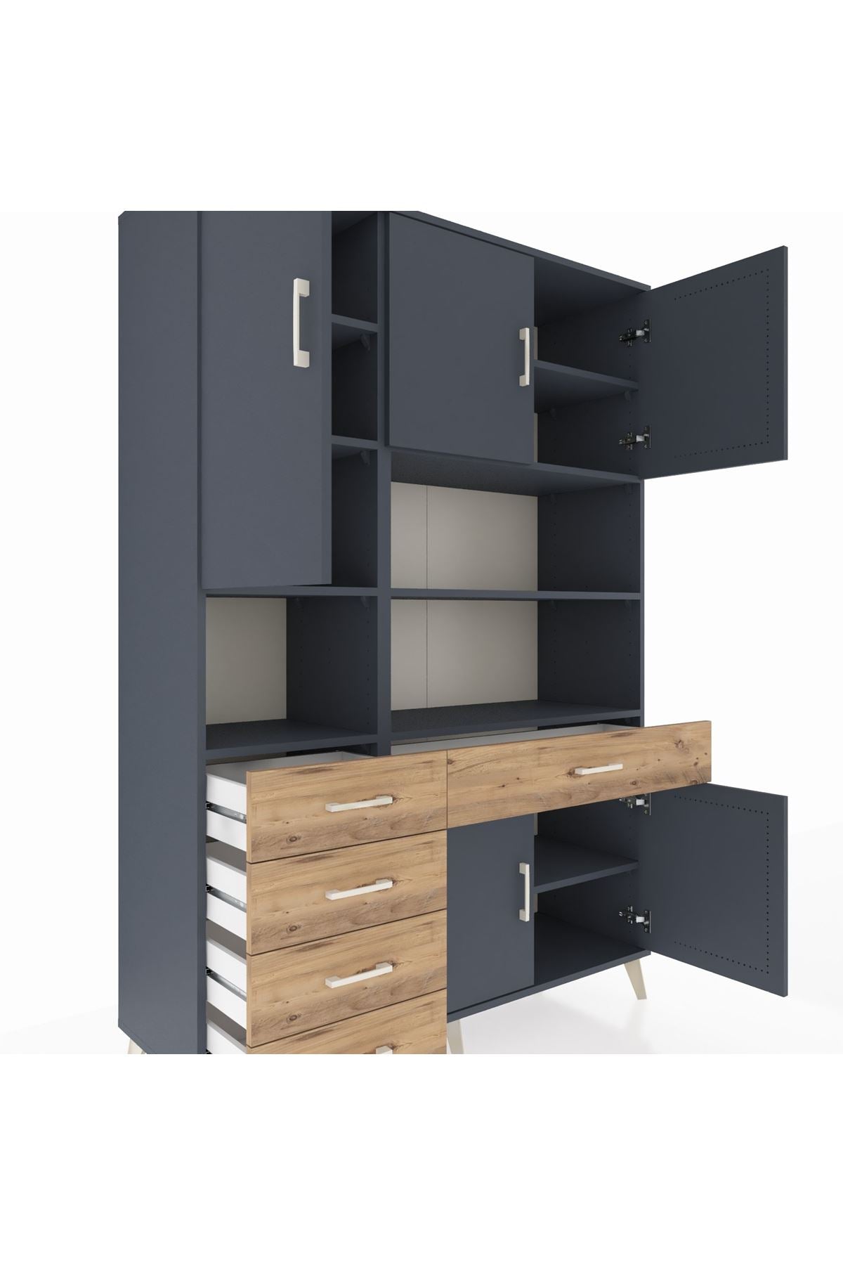 Hyperion Dolap 9 Raflı 5 Çekmeceli 5 Kapaklı 132x44x195 Antrasit-Antrasit/Çam