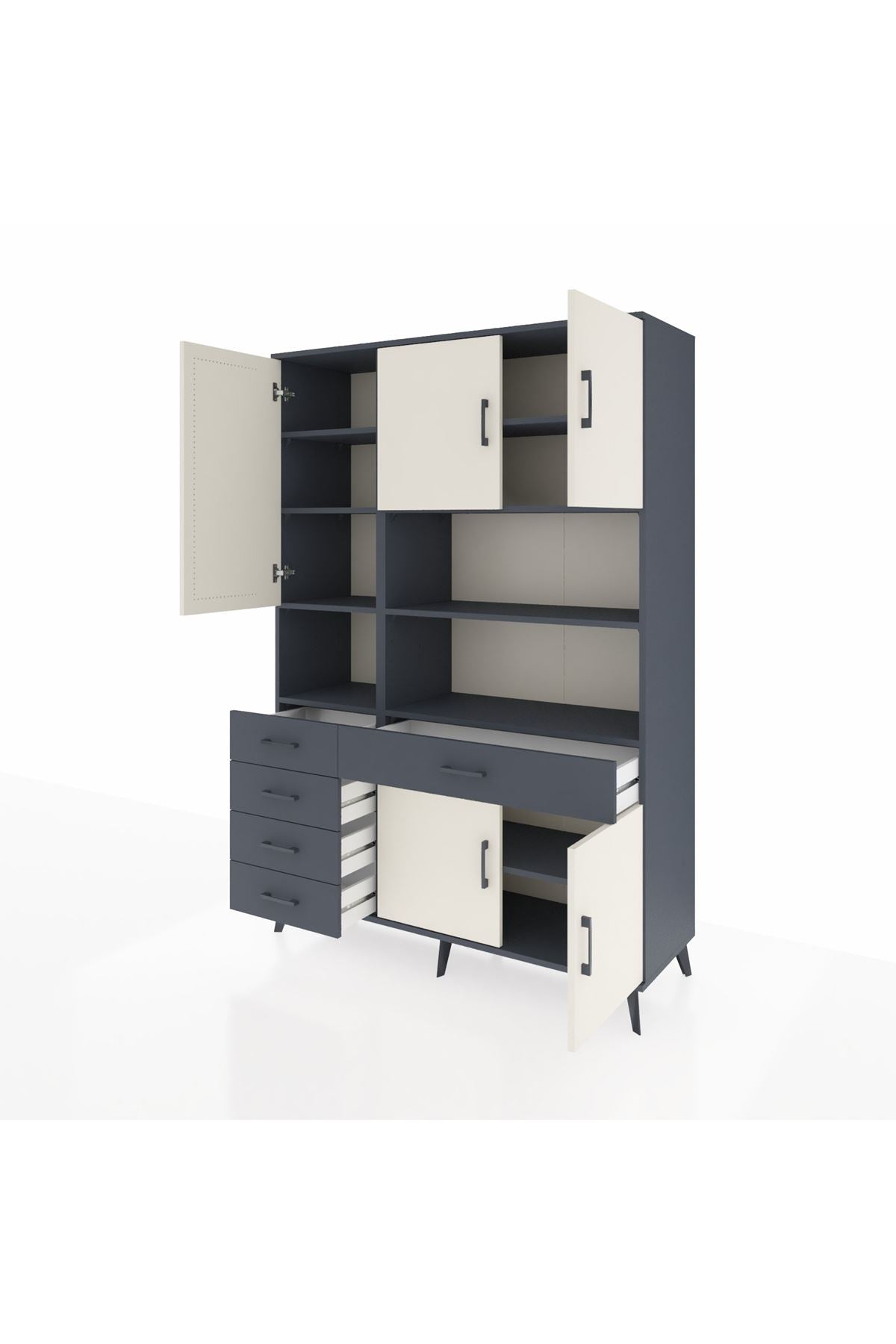 Hyperion Dolap 9 Raflı 5 Çekmeceli 5 Kapaklı 132x44x195 Antrasit-Aytaşı/Antrasit