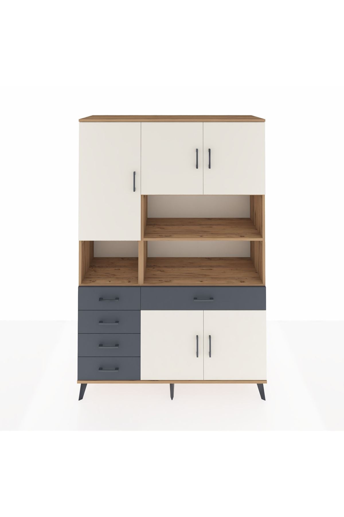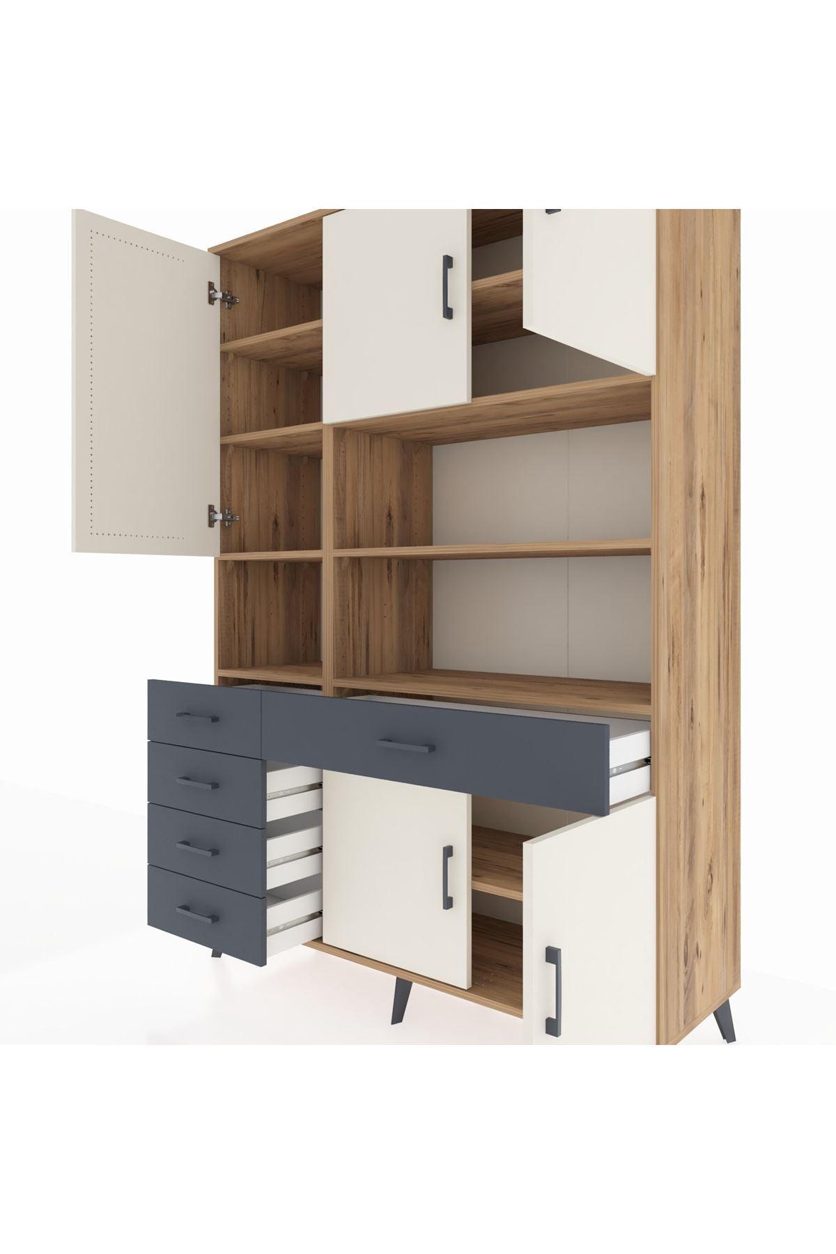 Hyperion Dolap 9 Raflı 5 Çekmeceli 5 Kapaklı 132x44x195 Çam-Aytaşı/Antrasit