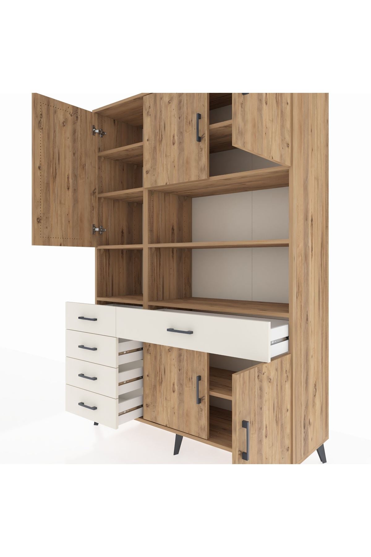 Hyperion Dolap 9 Raflı 5 Çekmeceli 5 Kapaklı 132x44x195 Çam-Çam/Aytaşı