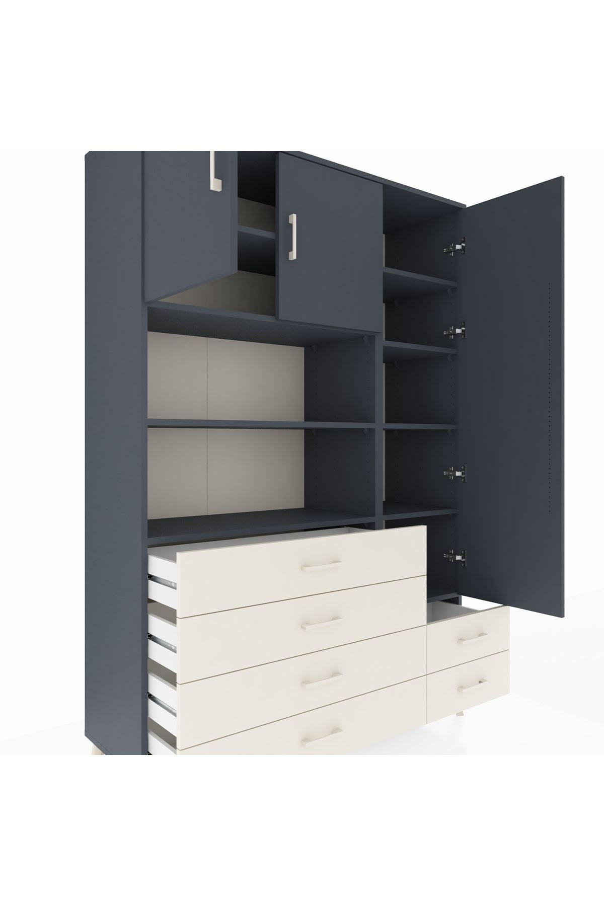 Hyperion Dolap 9 Raflı 6 Çekmeceli 3 Kapaklı 132x44x195 Antrasit-Antrasit/Aytaşı