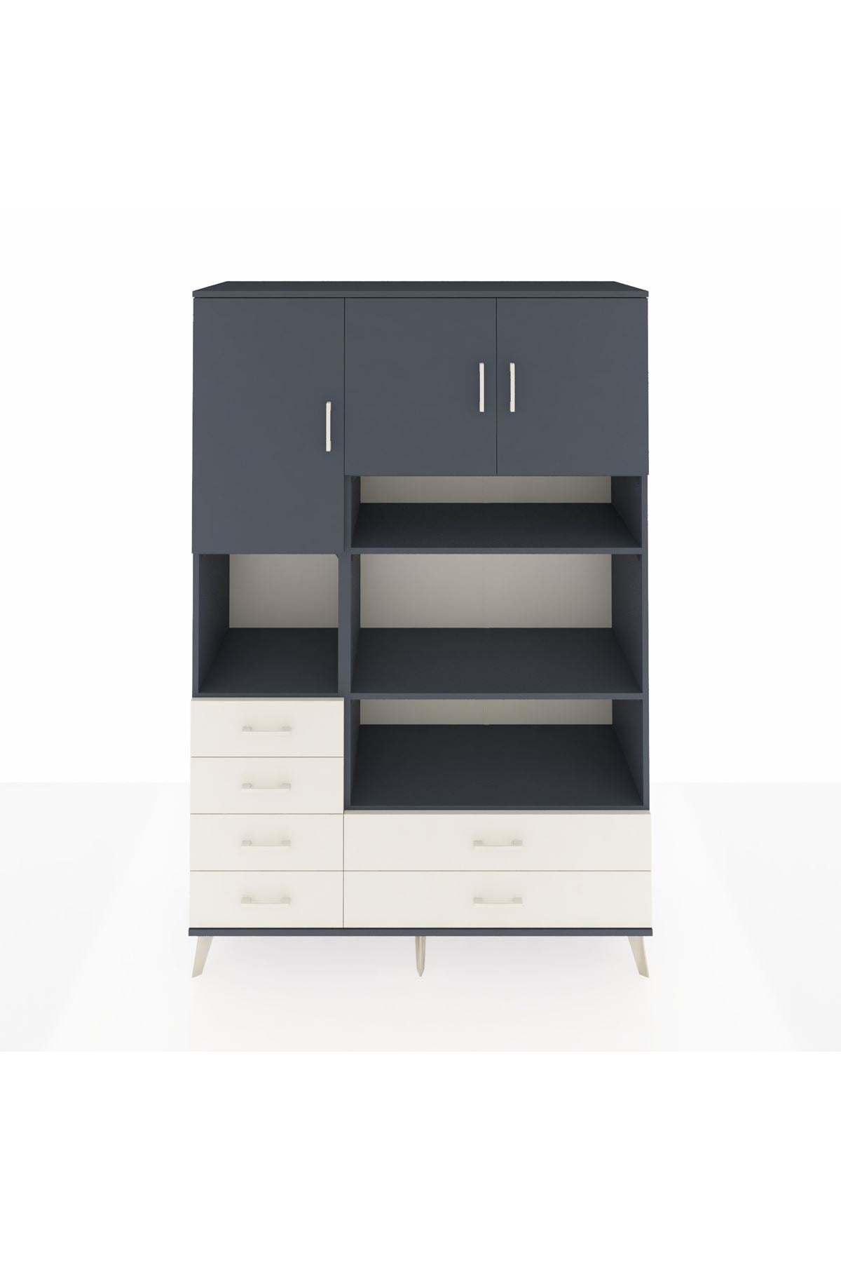 Hyperion Dolap 9 Raflı 6 Çekmeceli 3 Kapaklı 132x44x195 Antrasit-Antrasit/Aytaşı