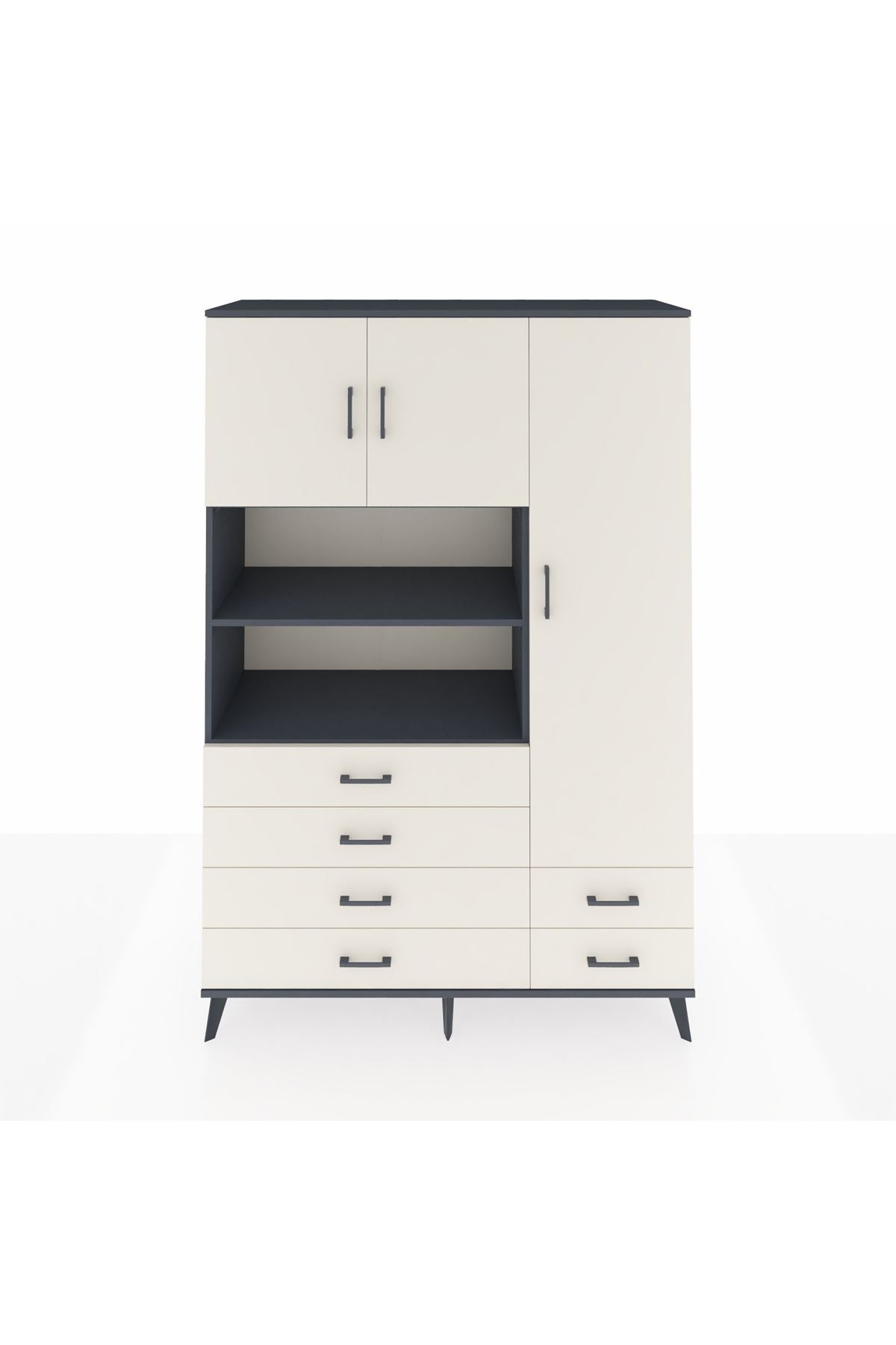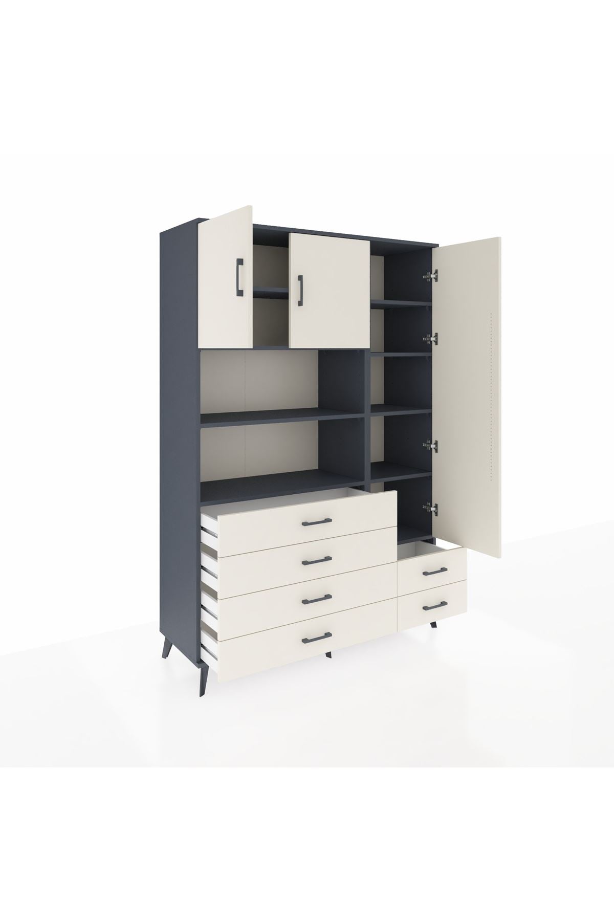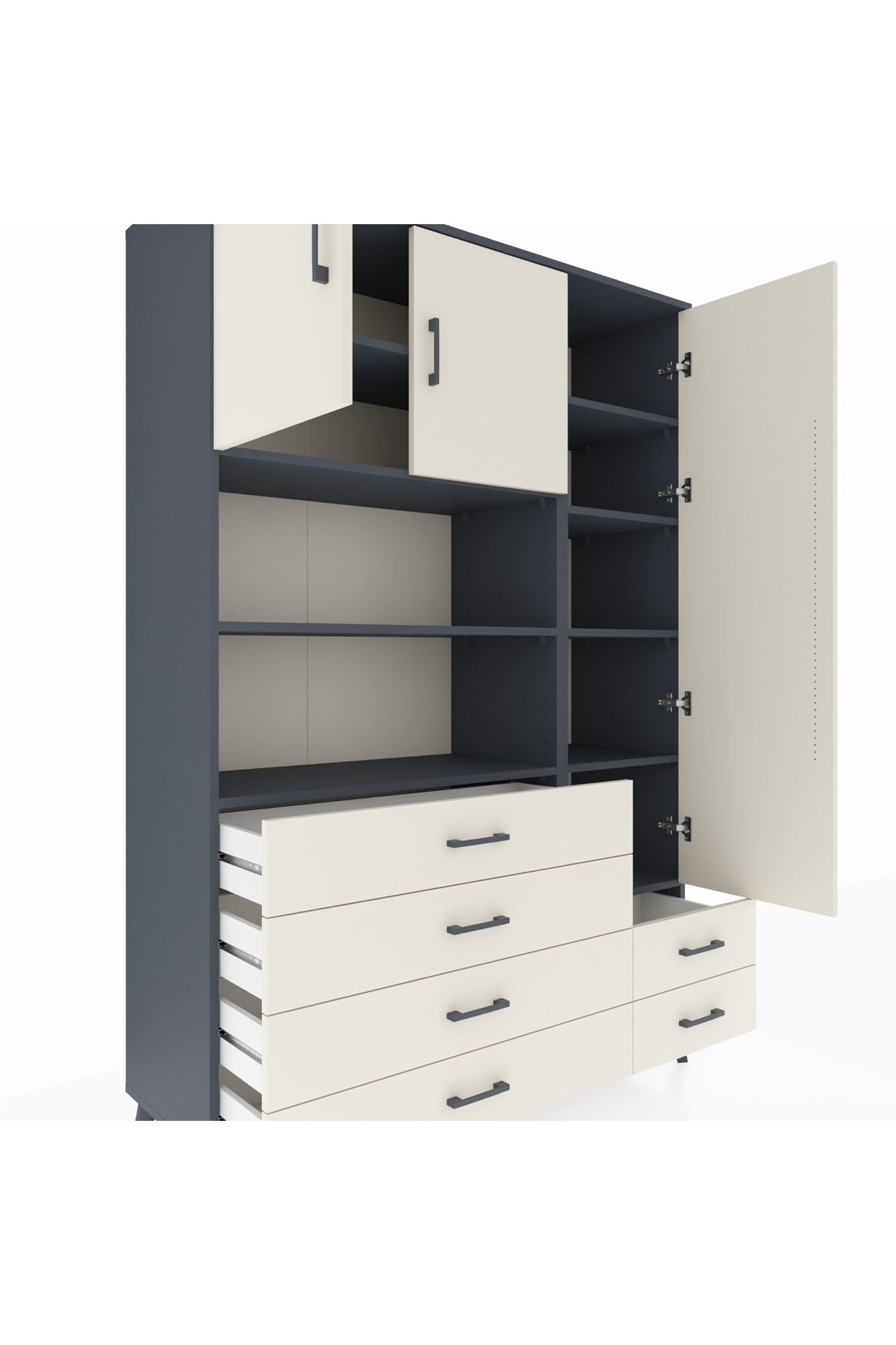 Hyperion Dolap 9 Raflı 6 Çekmeceli 3 Kapaklı 132x44x195 Antrasit-Aytaşı/Aytaşı