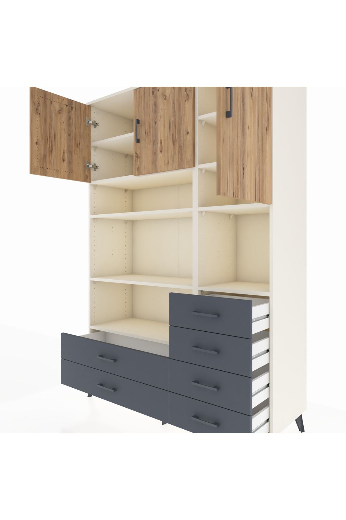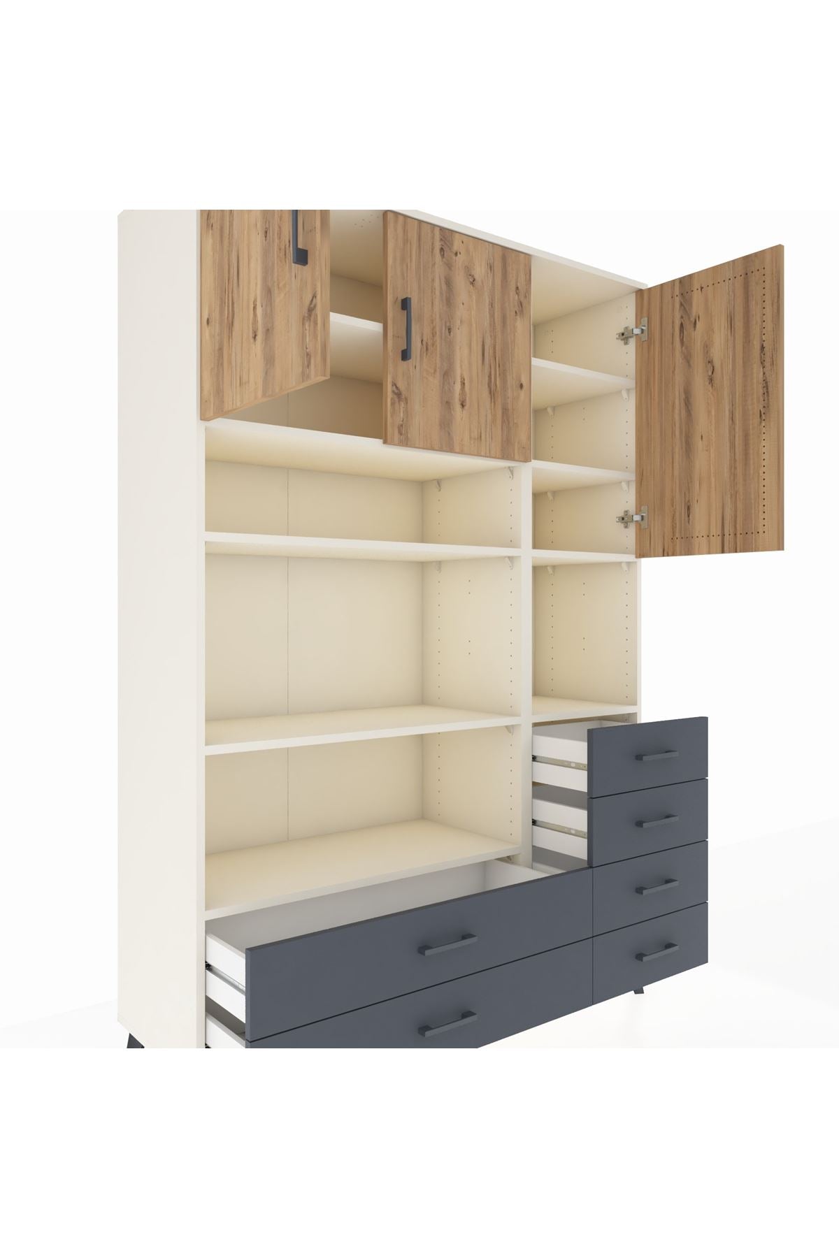 Hyperion Dolap 9 Raflı 6 Çekmeceli 3 Kapaklı 132x44x195 Aytaşı-Çam/Antrasit