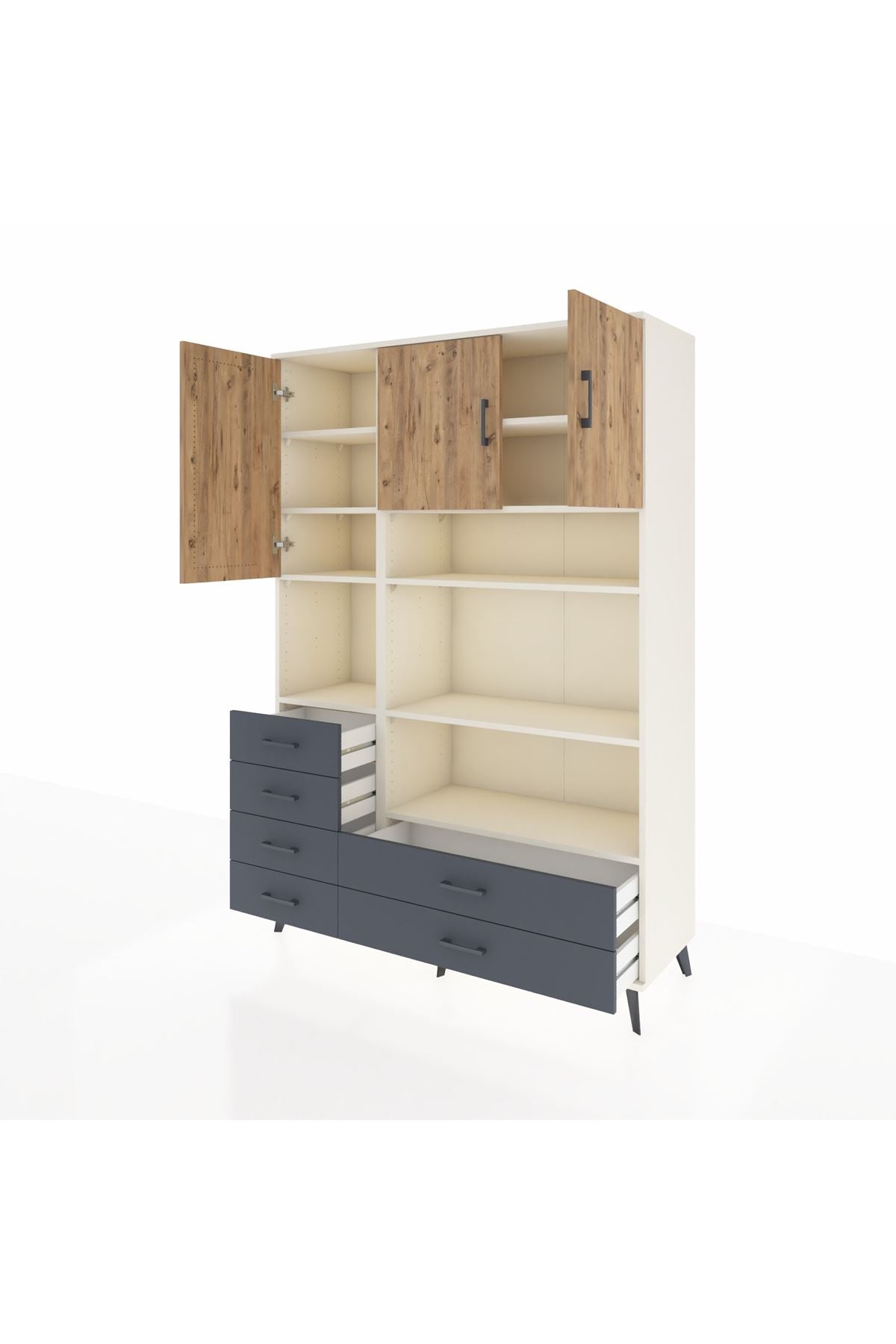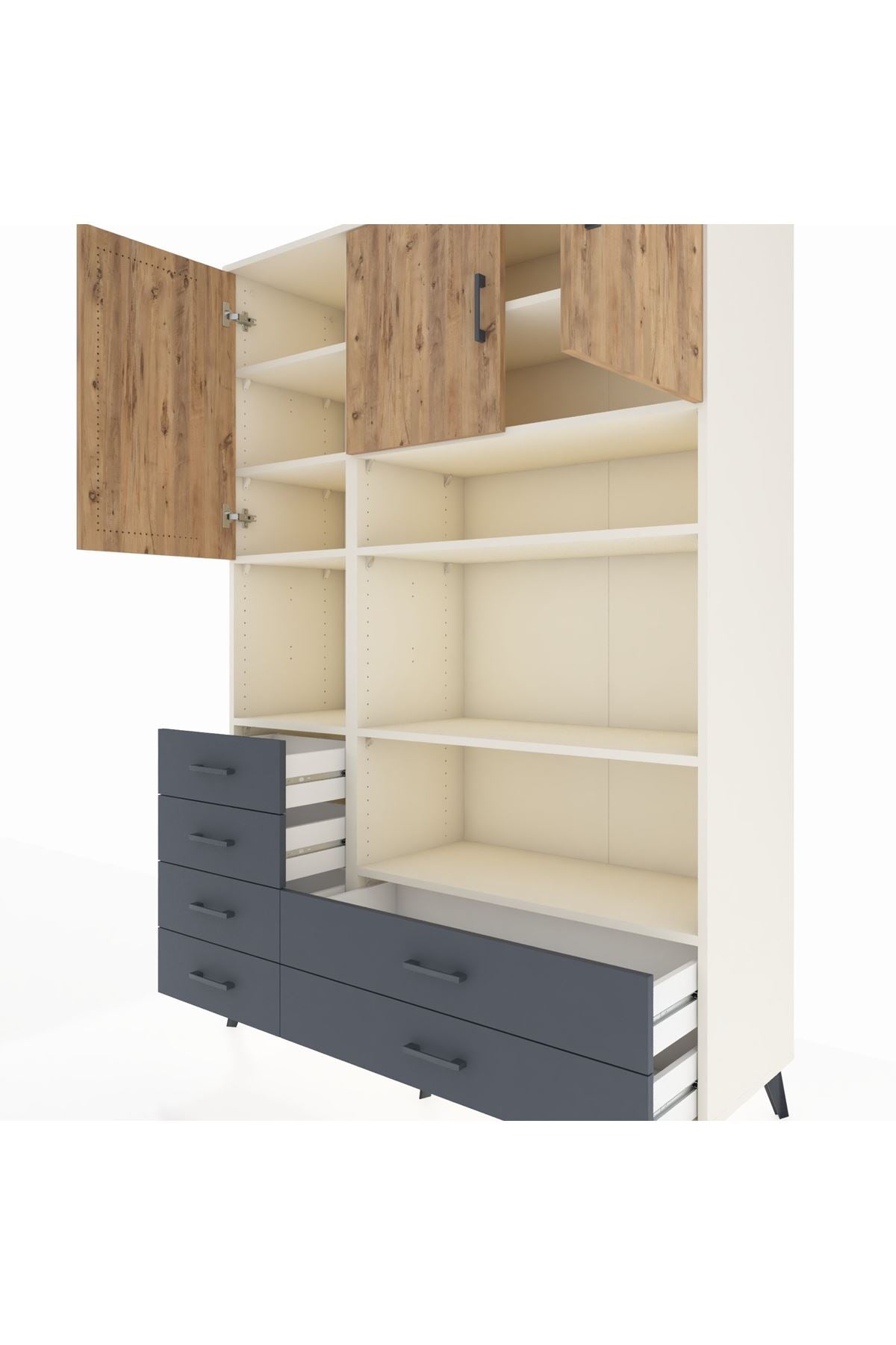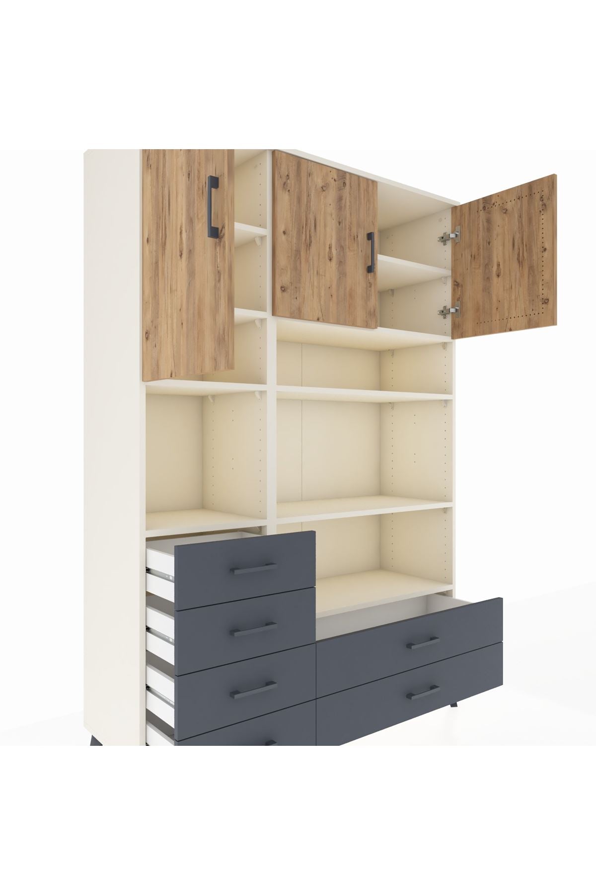 Hyperion Dolap 9 Raflı 6 Çekmeceli 3 Kapaklı 132x44x195 Aytaşı-Çam/Antrasit