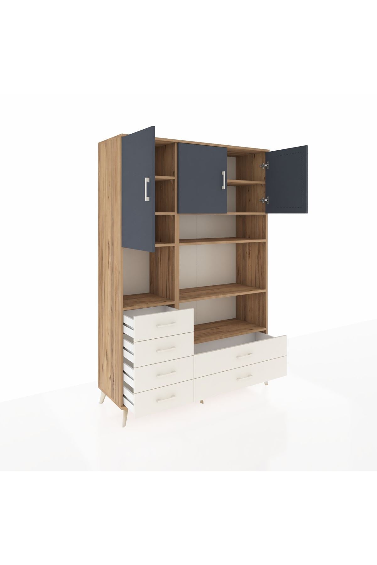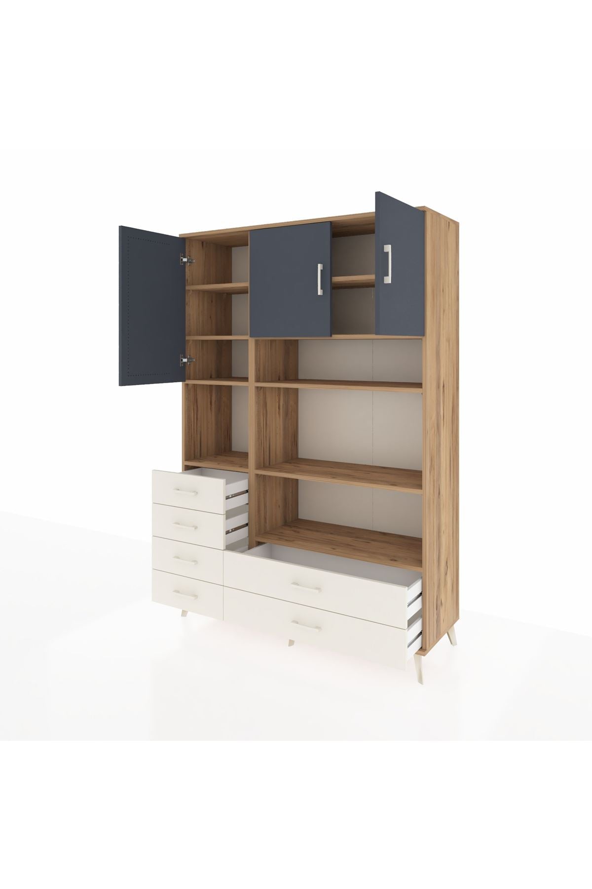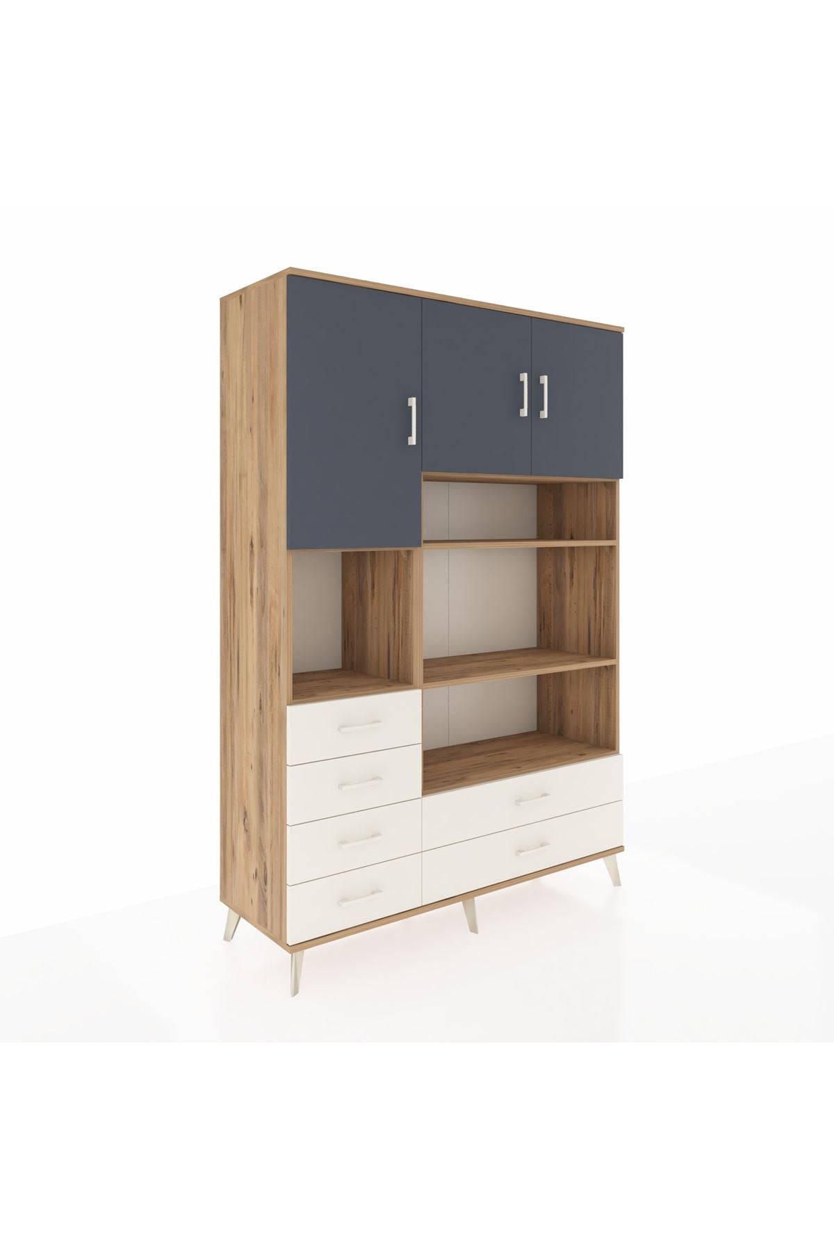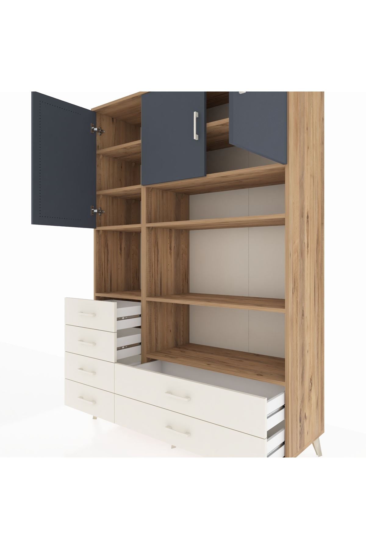 Hyperion Dolap 9 Raflı 6 Çekmeceli 3 Kapaklı 132x44x195 Çam-Antrasit/Aytaşı