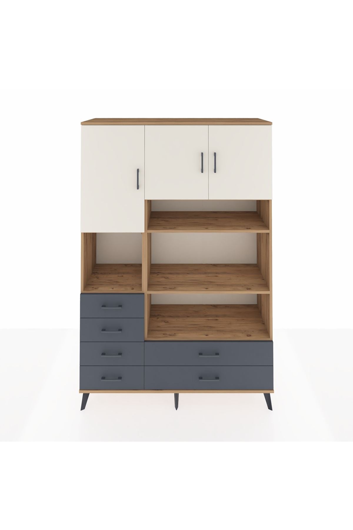 Hyperion Dolap 9 Raflı 6 Çekmeceli 3 Kapaklı 132x44x195 Çam-Aytaşı/Antrasit