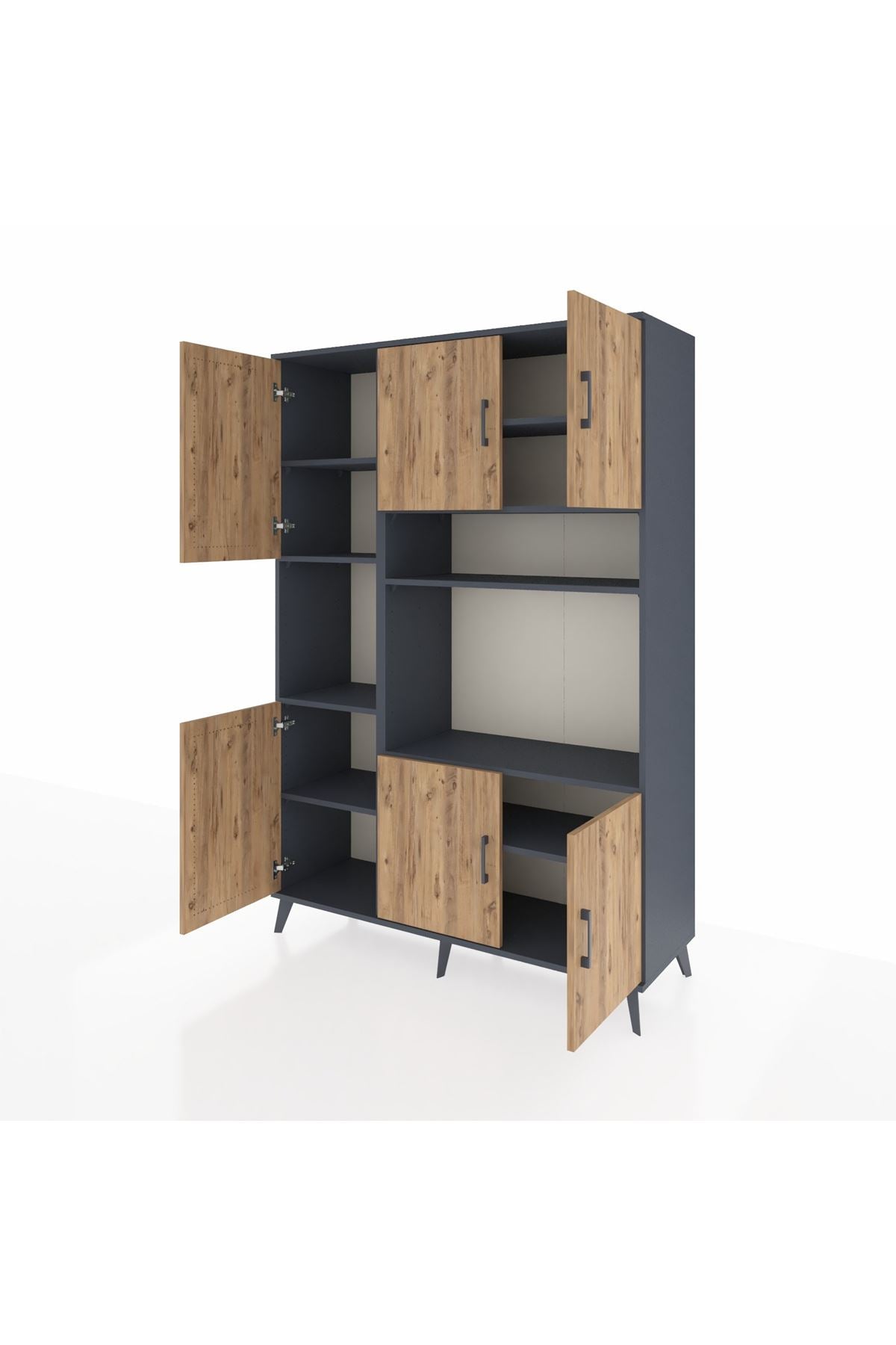 Hyperion Dolap 9 Raflı 6 Kapaklı 132x44x195 Antrasit-Çam/Antrasit
