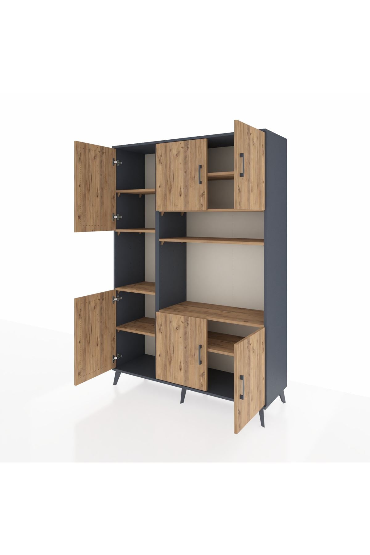Hyperion Dolap 9 Raflı 6 Kapaklı 132x44x195 Antrasit-Çam/Çam