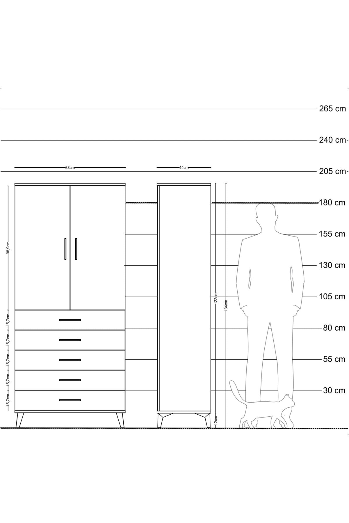 Hyperion Dolap Tek Raflı 5 Çekmeceli Tek Askılı 88x44x195 Aytaşı-Aytaşı