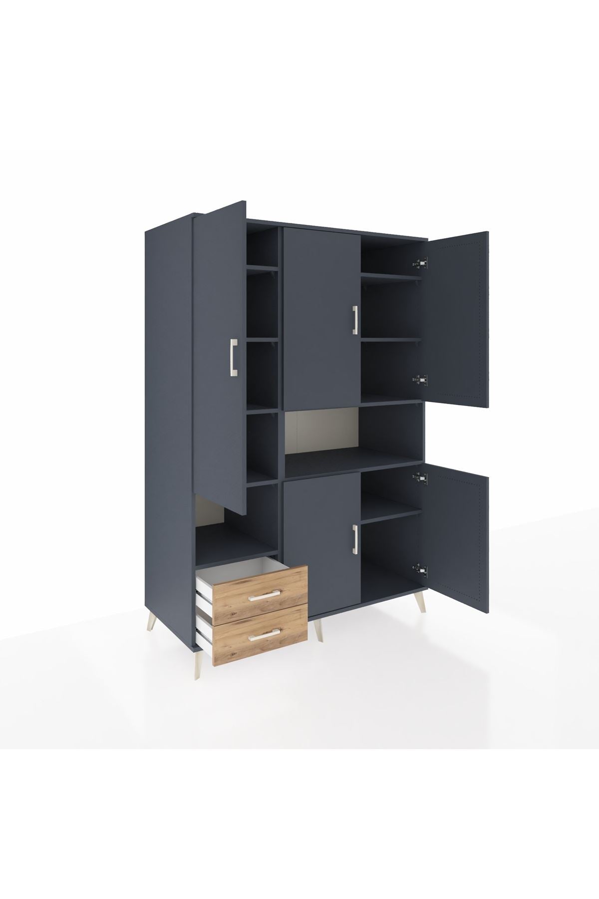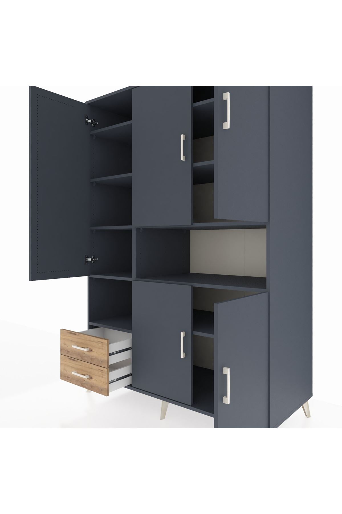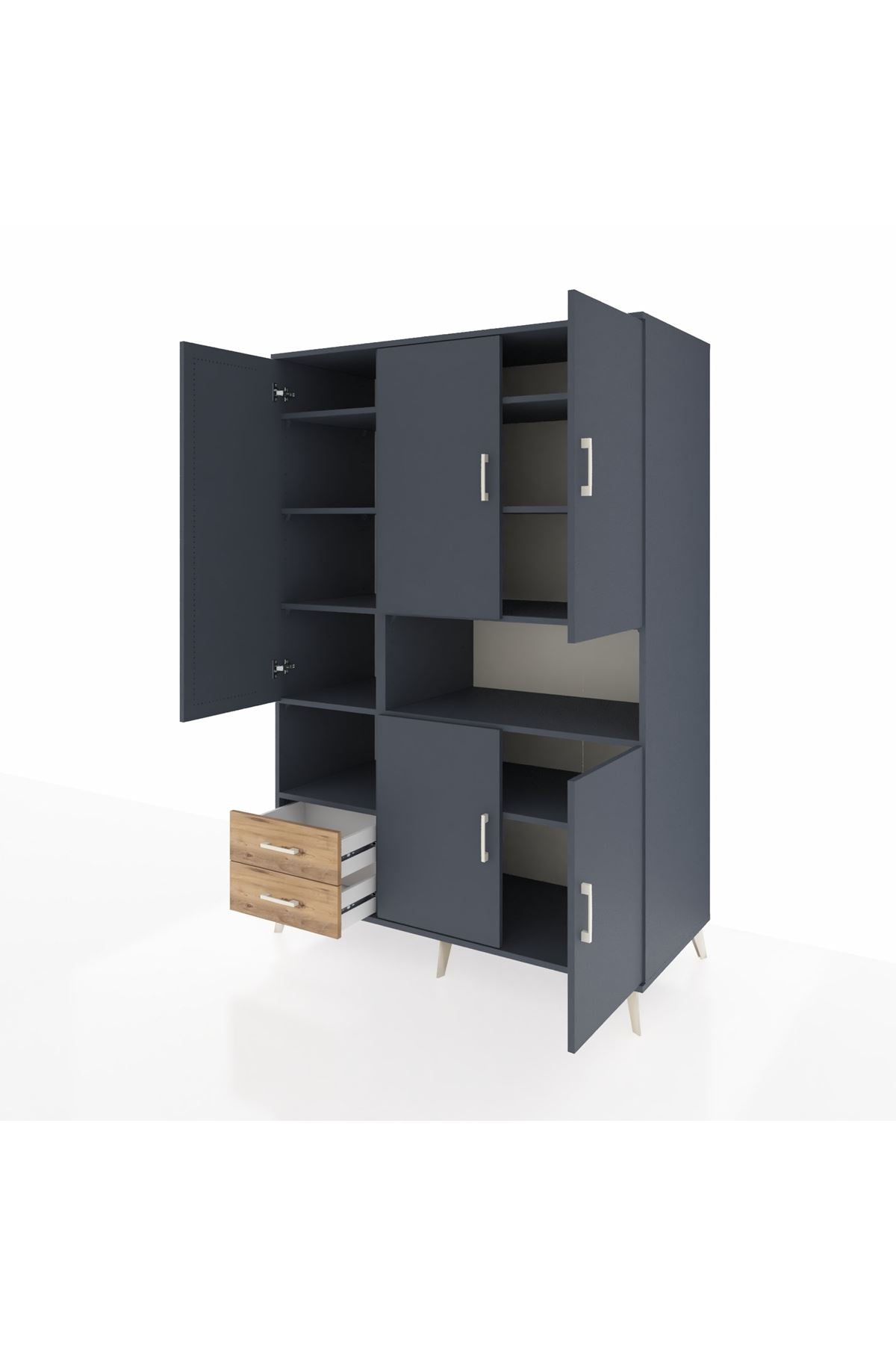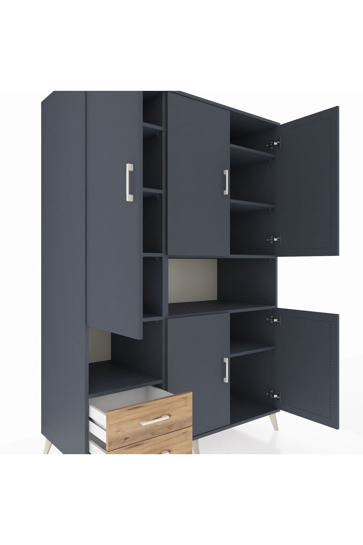 Dayanıklı gövdesi, 1. sınıf Kastamonu entegre suntalamdan üretilmiştir. 🌱 Renk uyumunu tamamlayan antrasit gövde ve atlas çam kapaklar, zamansız bir estetik sunar. Metal ayak ve metal kulplar, modern çizgileriyle dikkat çekerken uzun ömürlü kullanım vadediyor.🦾