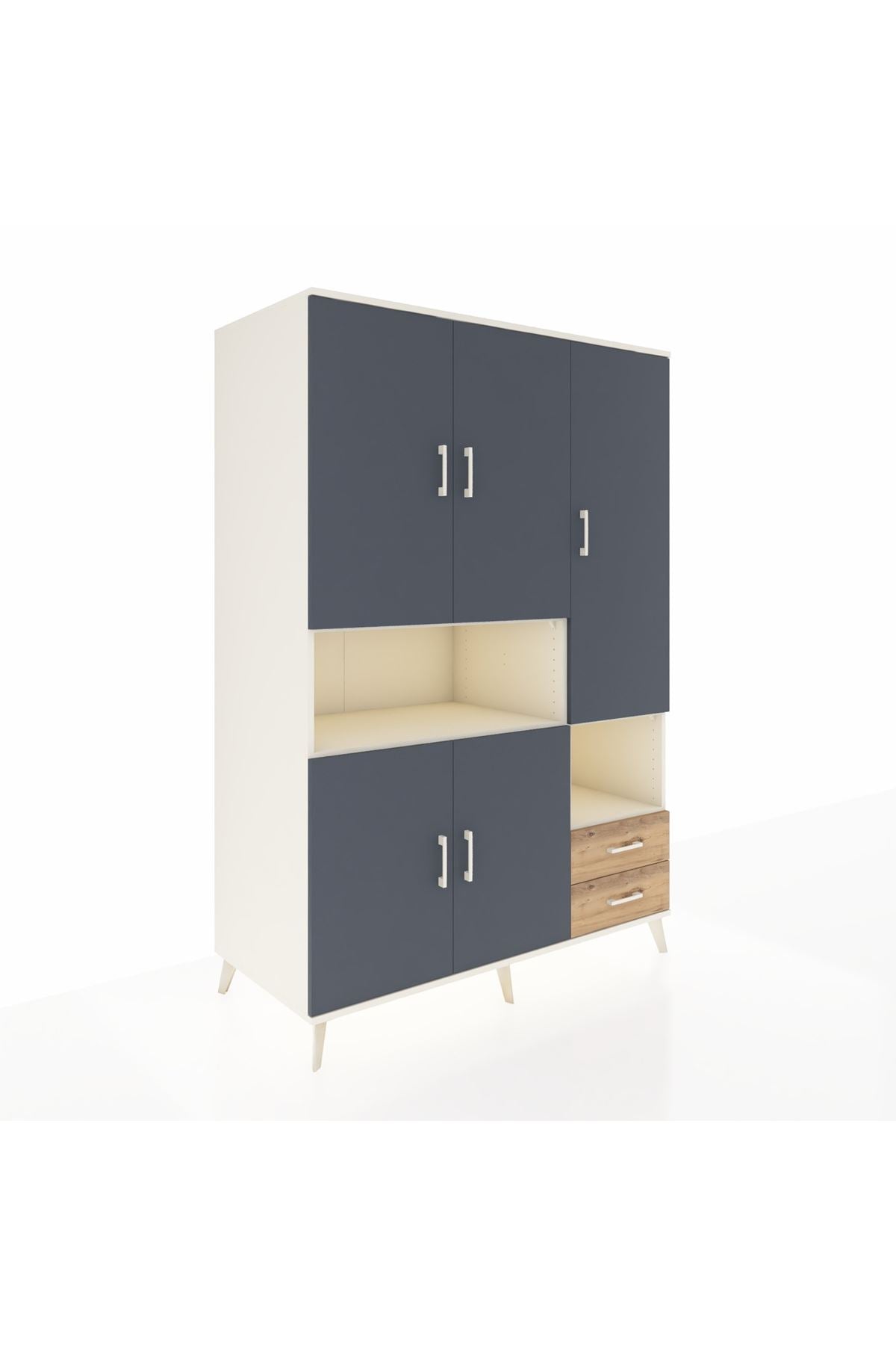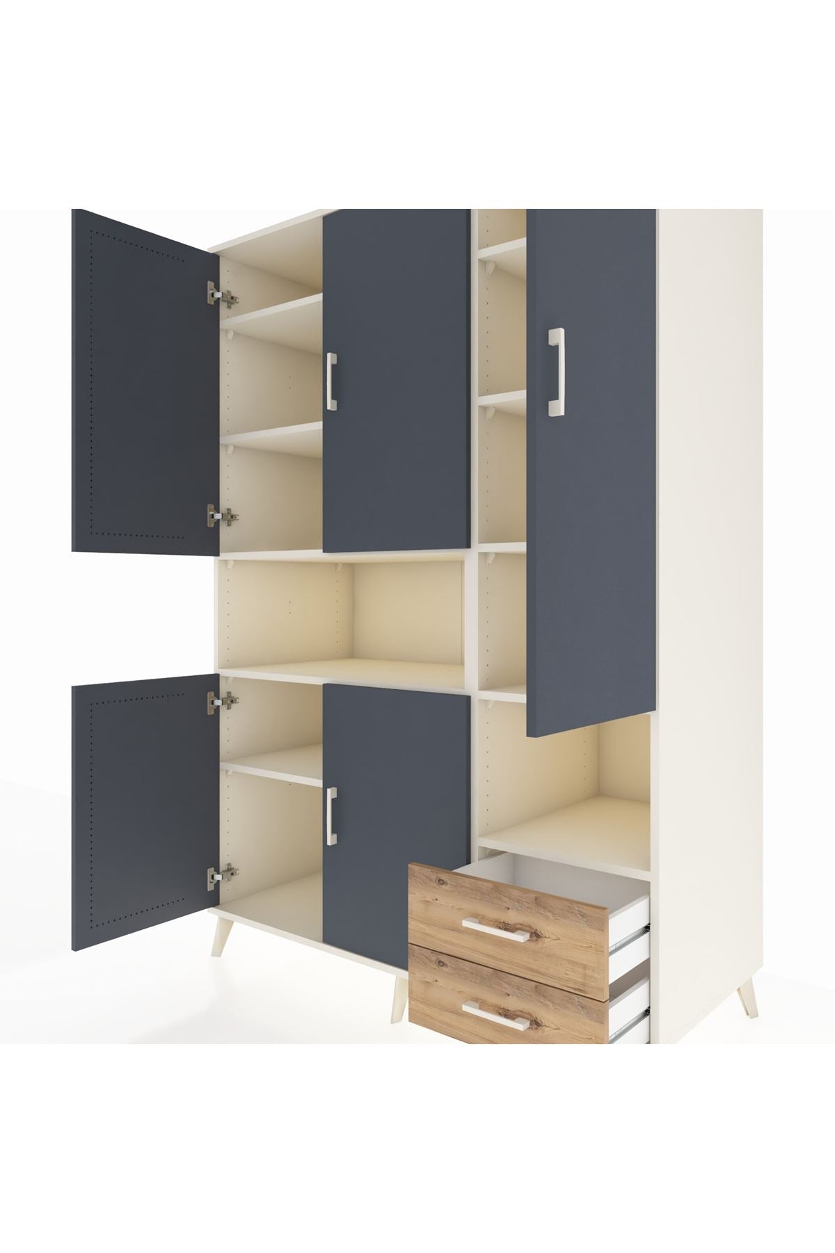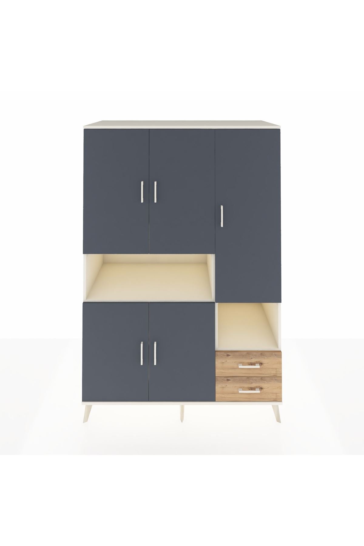 Kronos Dolap 10 Raflı 2 Çekmeceli 5 Kapaklı 132x59x195 Aytaşı-Antrasit/Çam