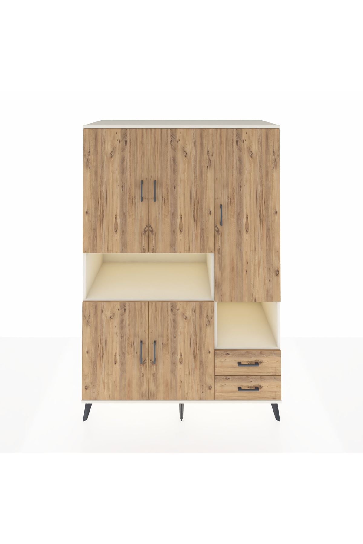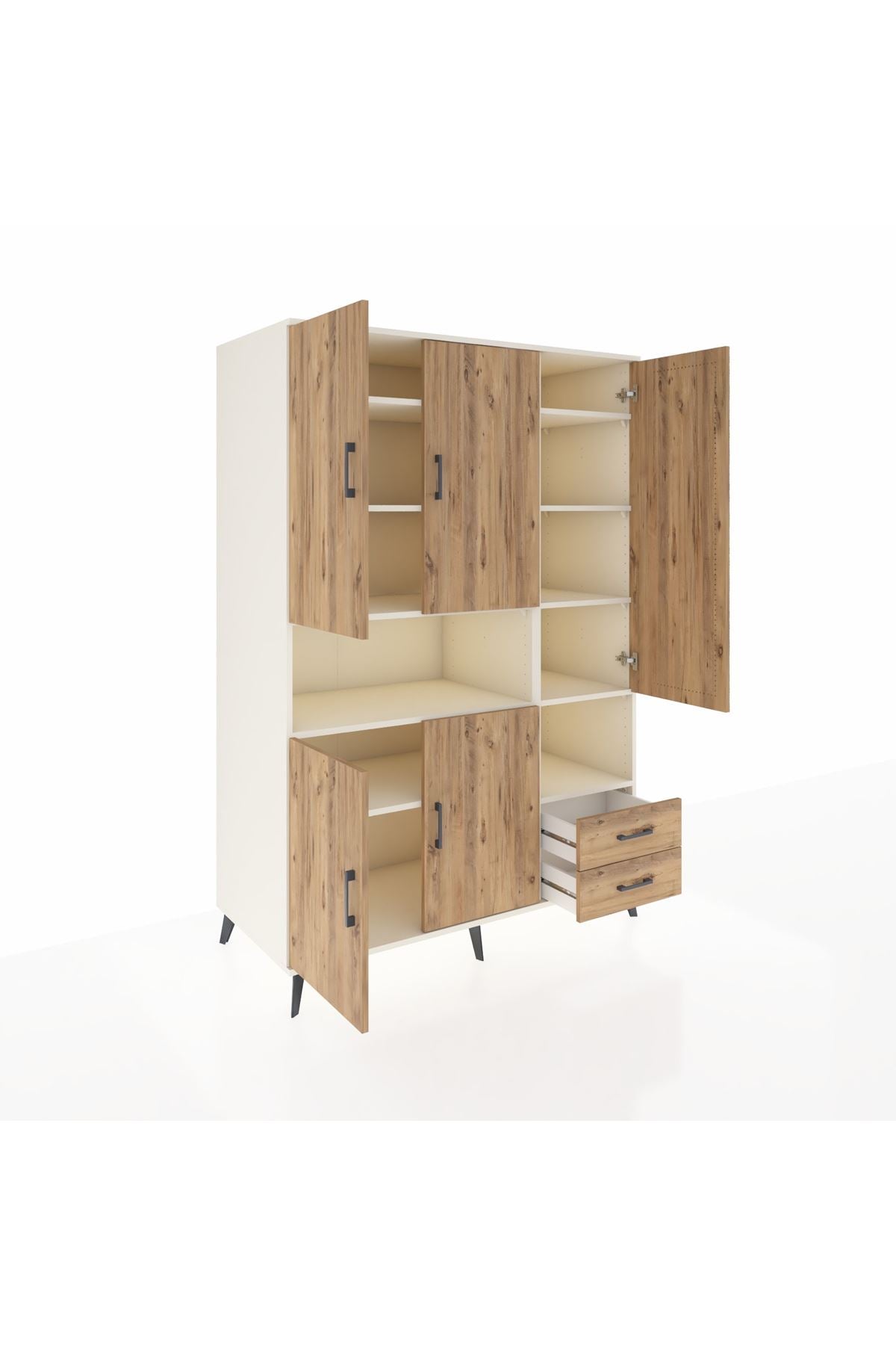Kronos Dolap 10 Raflı 2 Çekmeceli 5 Kapaklı 132x59x195 Aytaşı-Çam/Çam